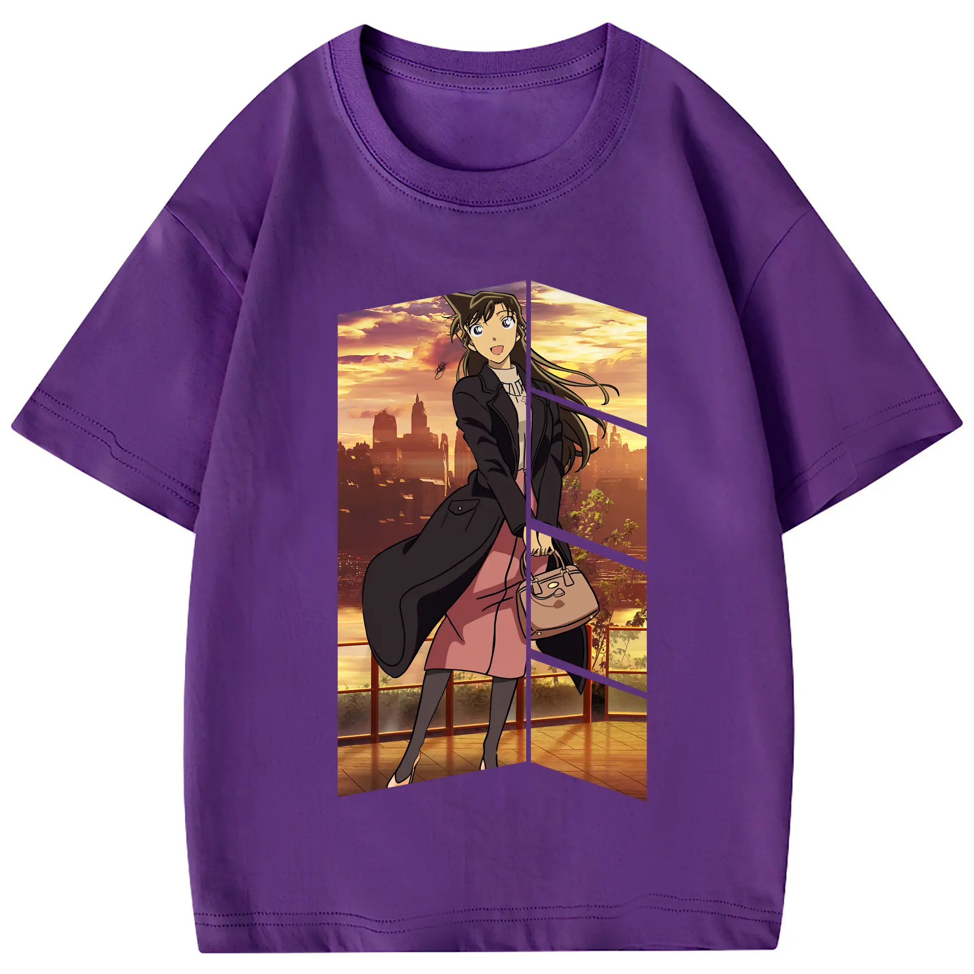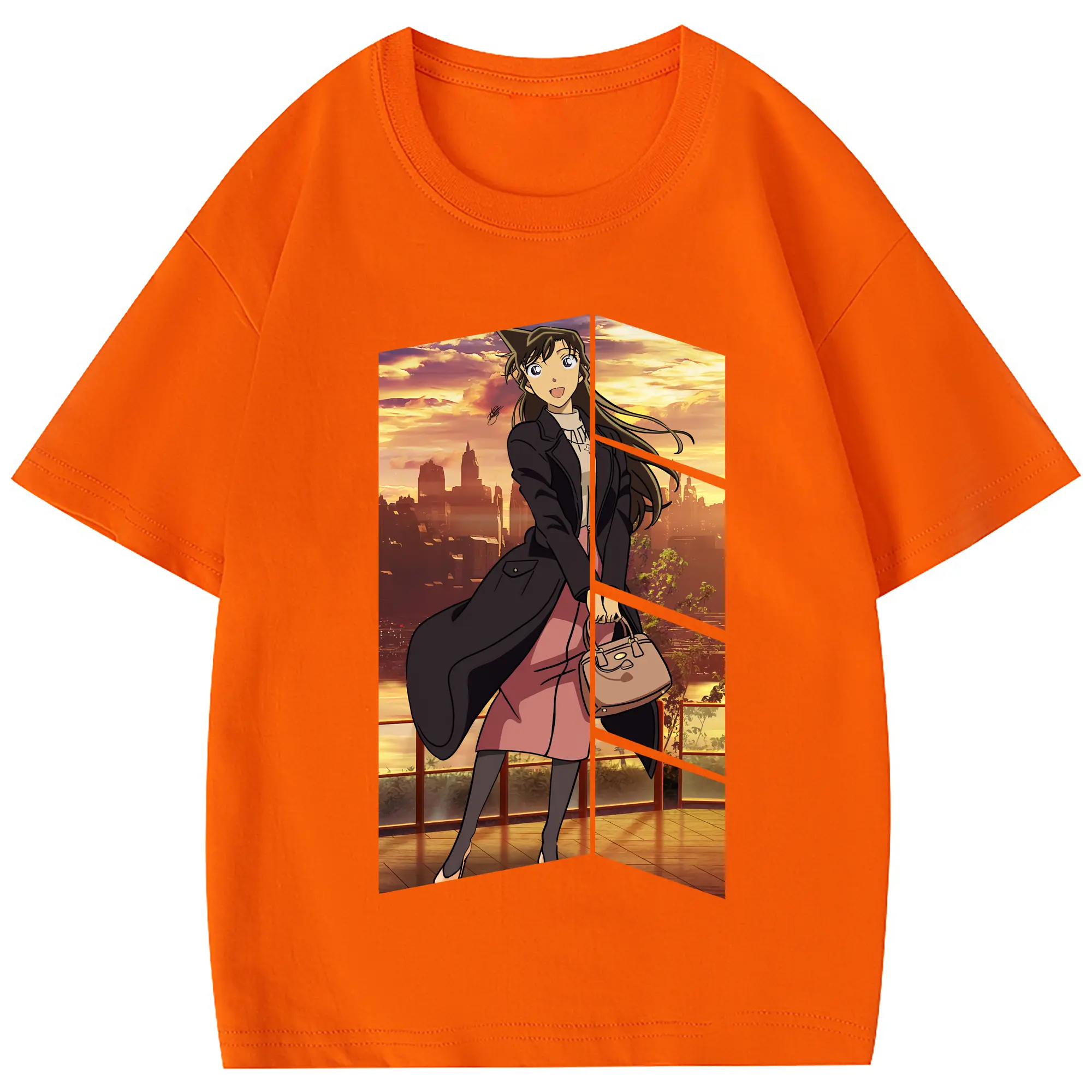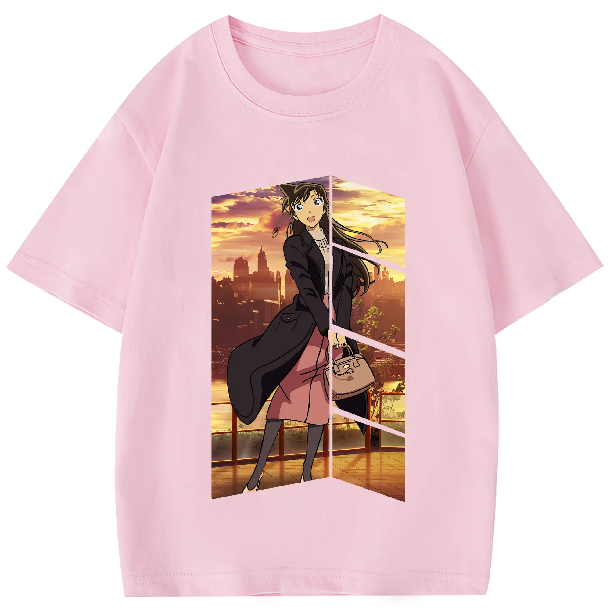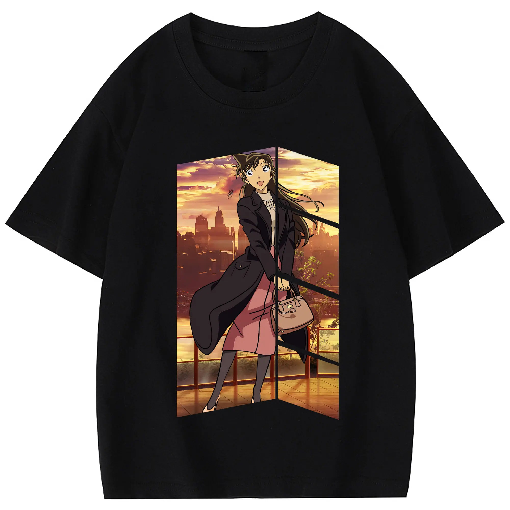 名探偵コナン グッズ 毛利 蘭 - 綿100% 半袖Tシャツ ・ フロントプリント ・ 快適 通気性 ・ 日常使い 散歩 スポーツ用