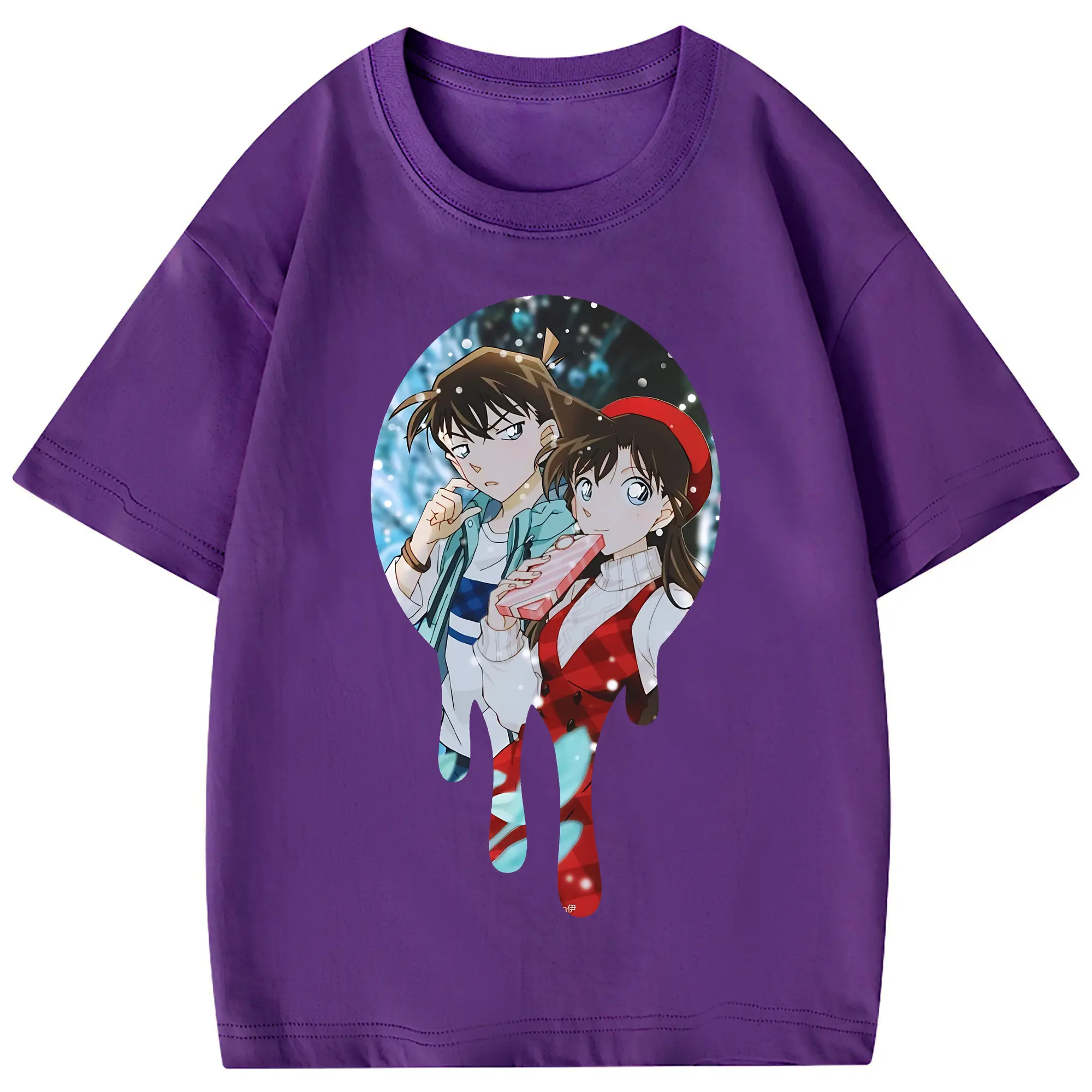名探偵コナン グッズ 毛利 蘭 - 綿100% 半袖Tシャツ ・ フロントプリント ・ 快適 通気性 ・ 日常使い 散歩 スポーツ用