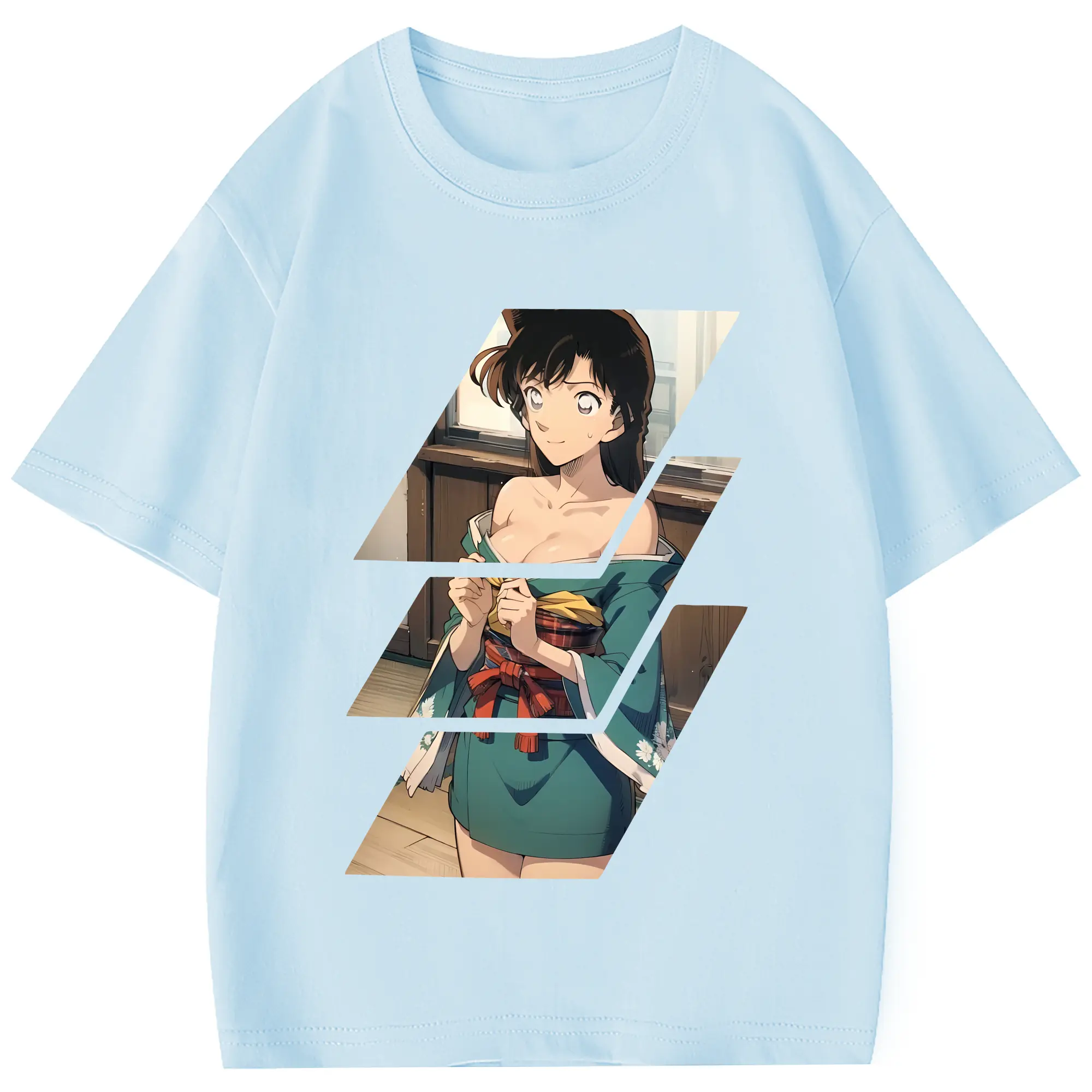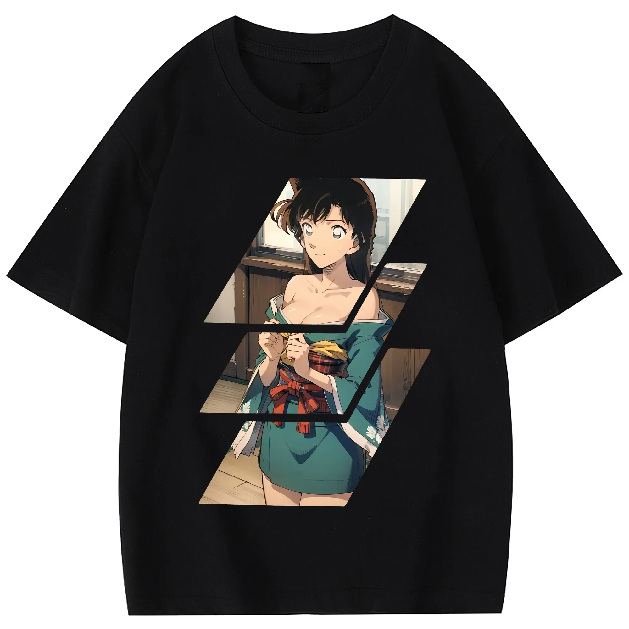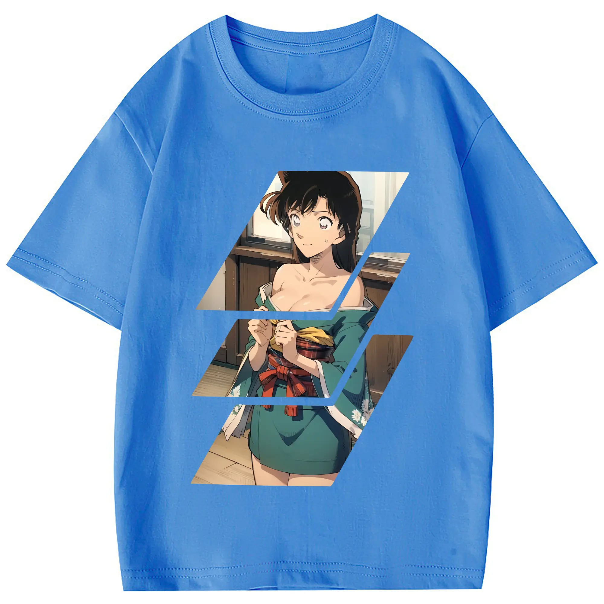 名探偵コナン グッズ 毛利 蘭 - 綿100% 半袖Tシャツ ・ フロントプリント ・ 快適 通気性 ・ 日常使い 散歩 スポーツ用