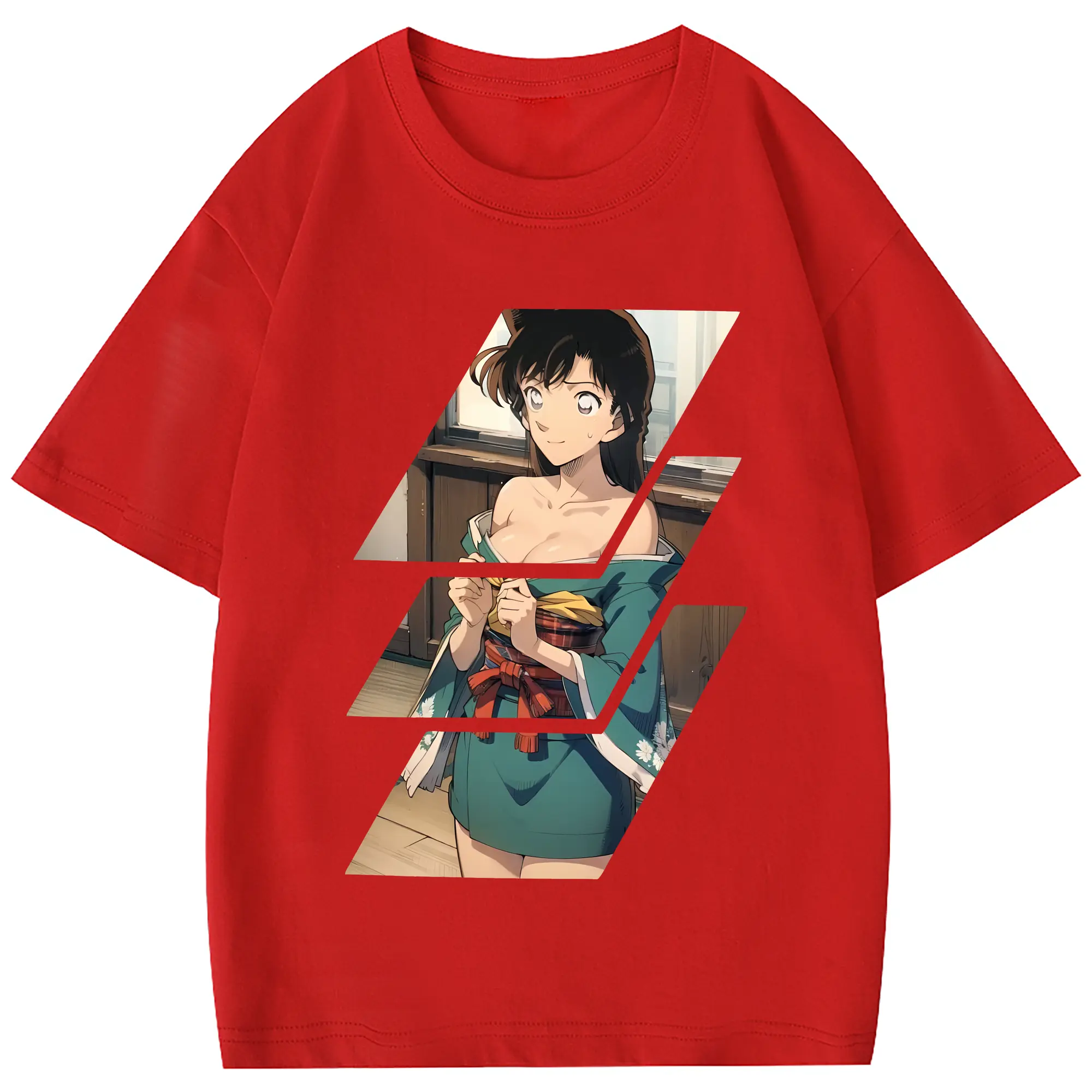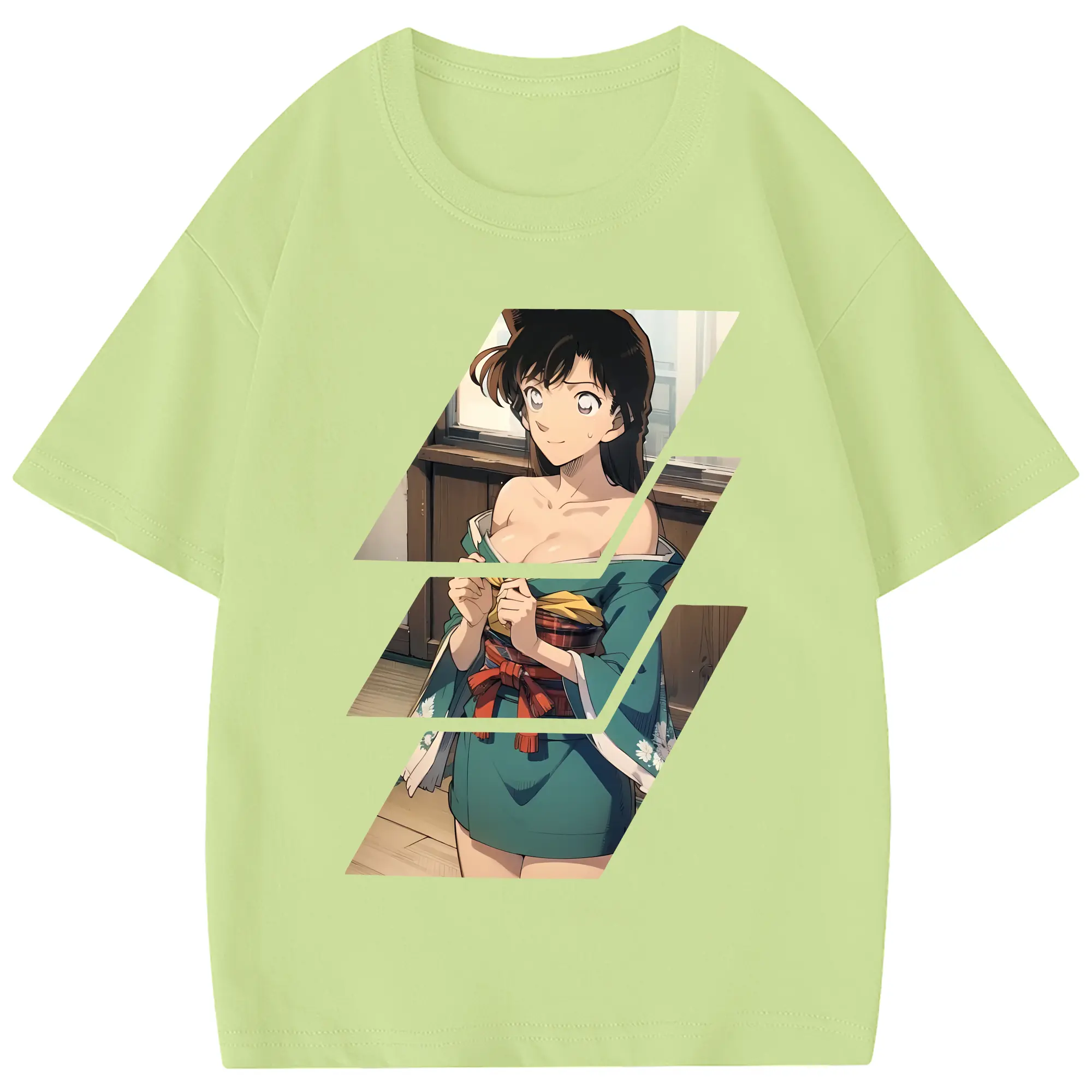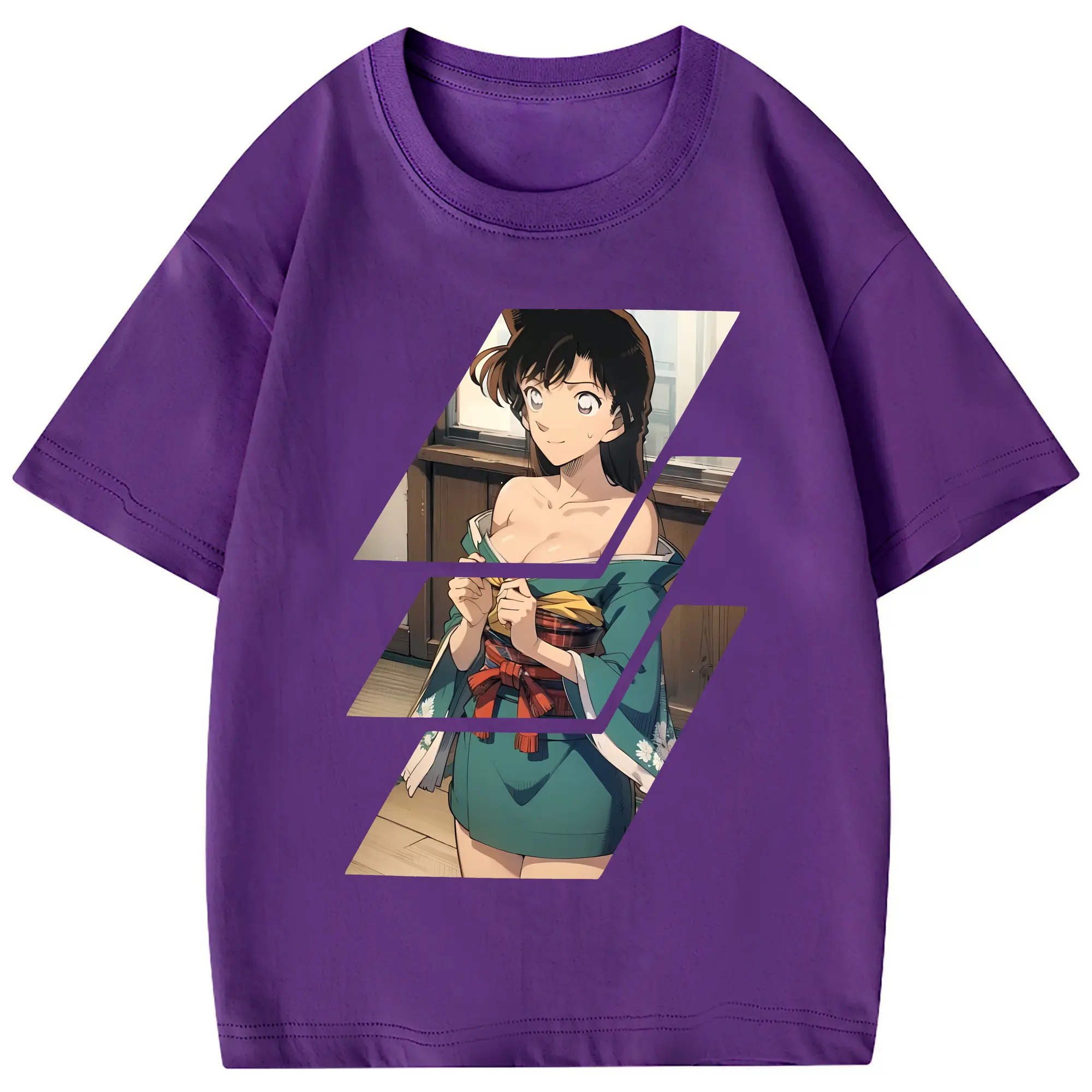 名探偵コナン グッズ 毛利 蘭 - 綿100% 半袖Tシャツ ・ フロントプリント ・ 快適 通気性 ・ 日常使い 散歩 スポーツ用