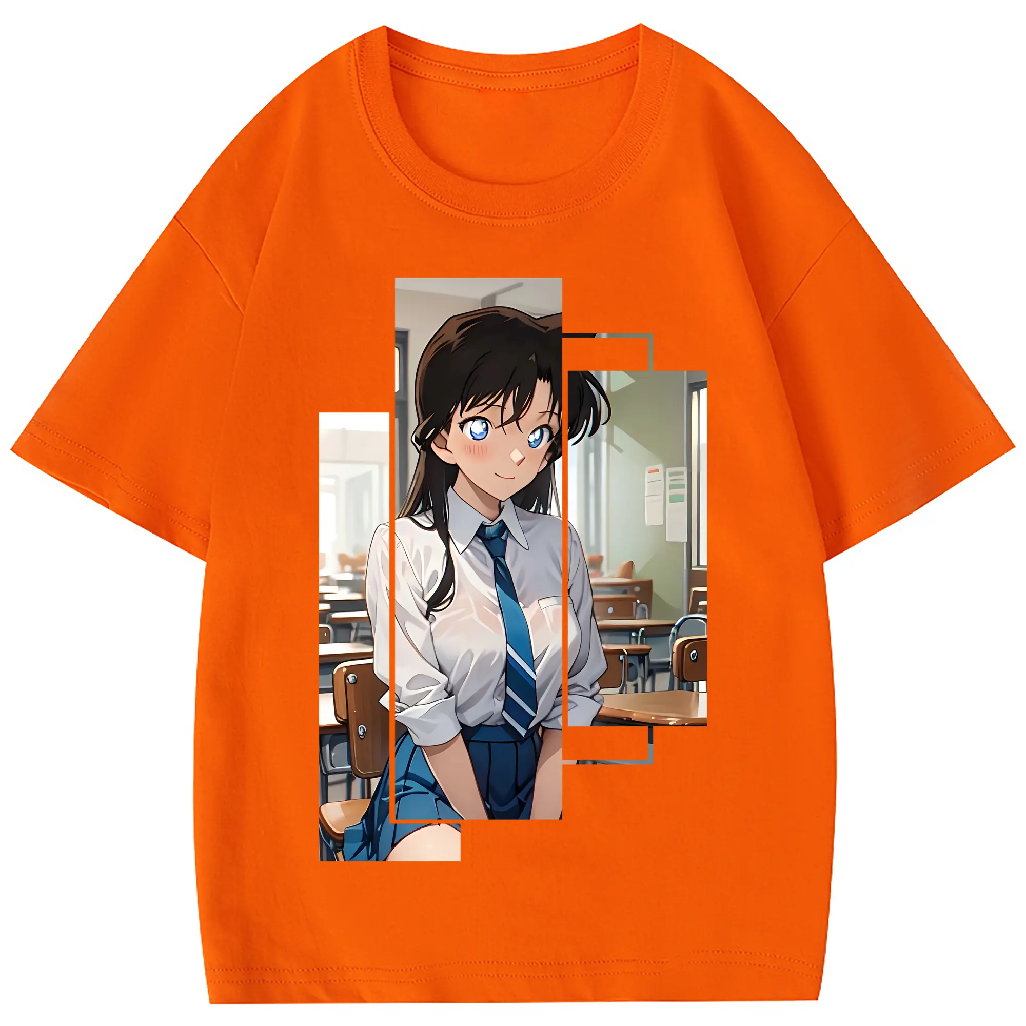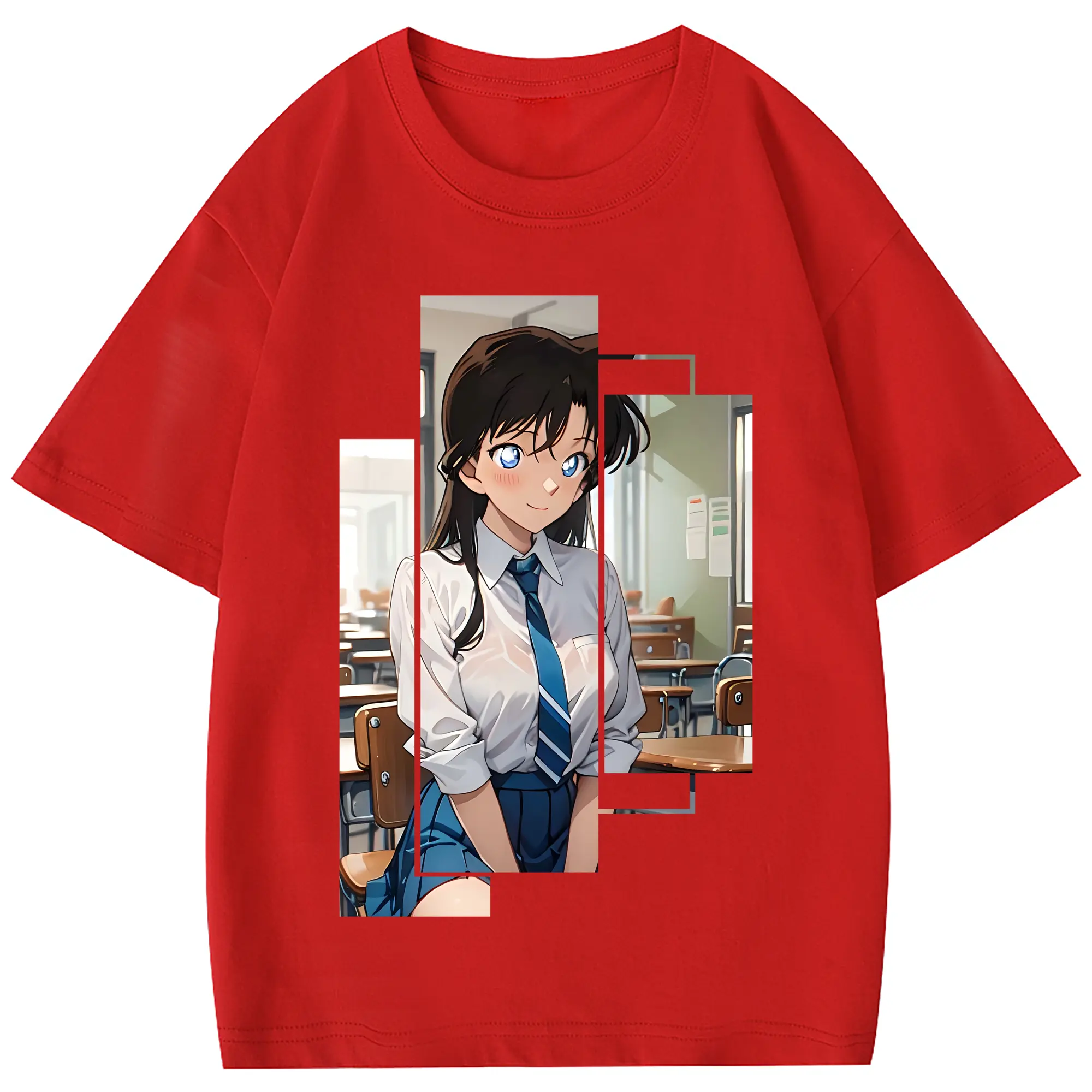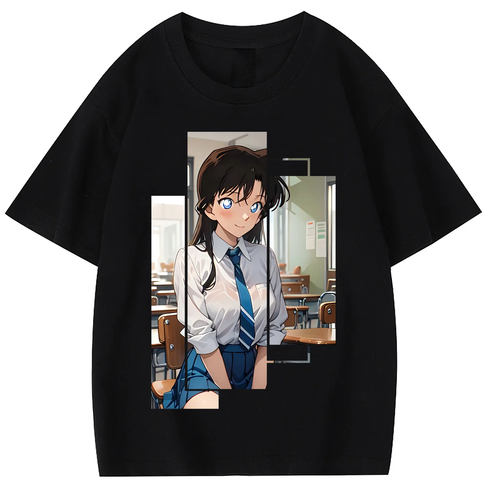 名探偵コナン グッズ 毛利 蘭 - 綿100% 半袖Tシャツ ・ フロントプリント ・ 快適 通気性 ・ 日常使い 散歩 スポーツ用