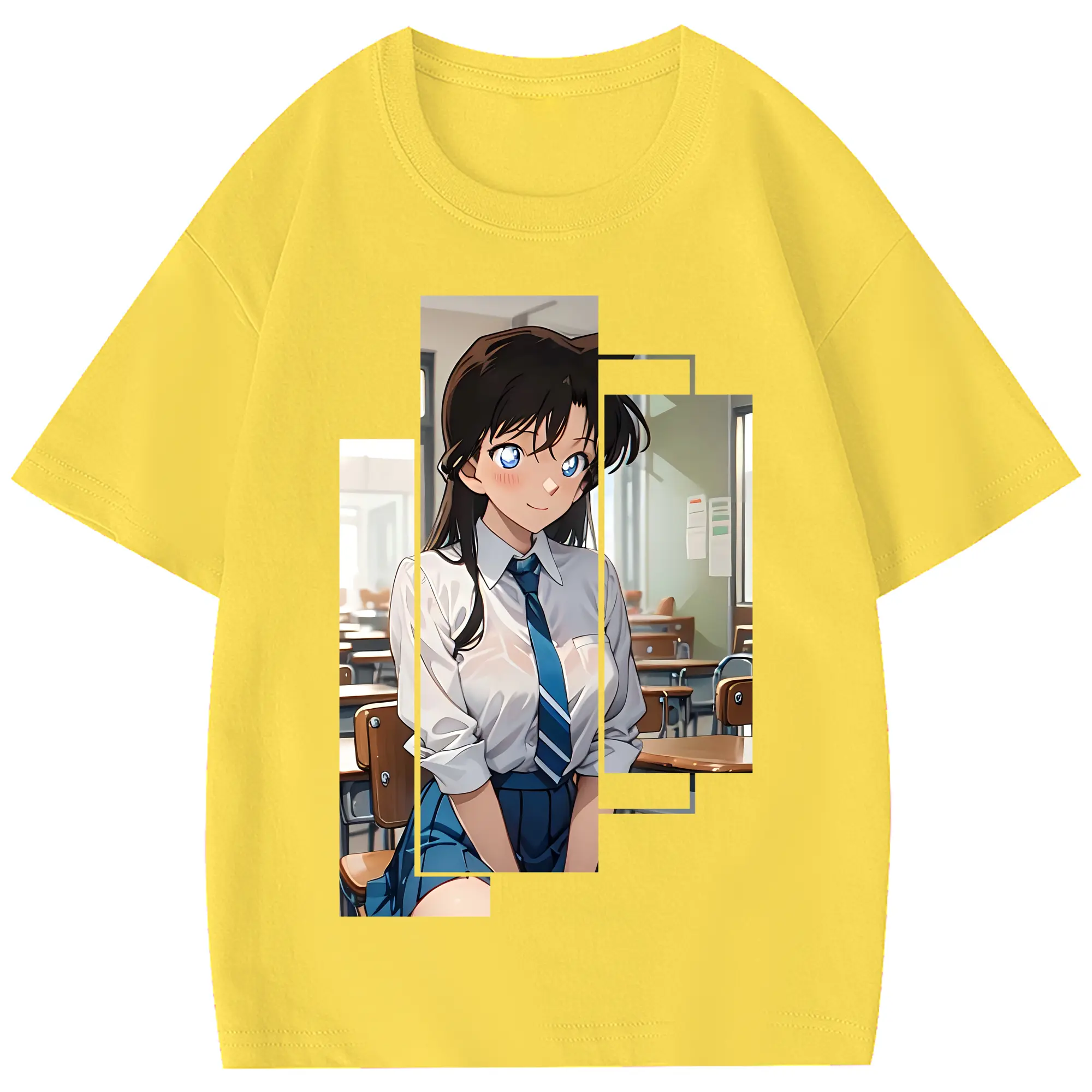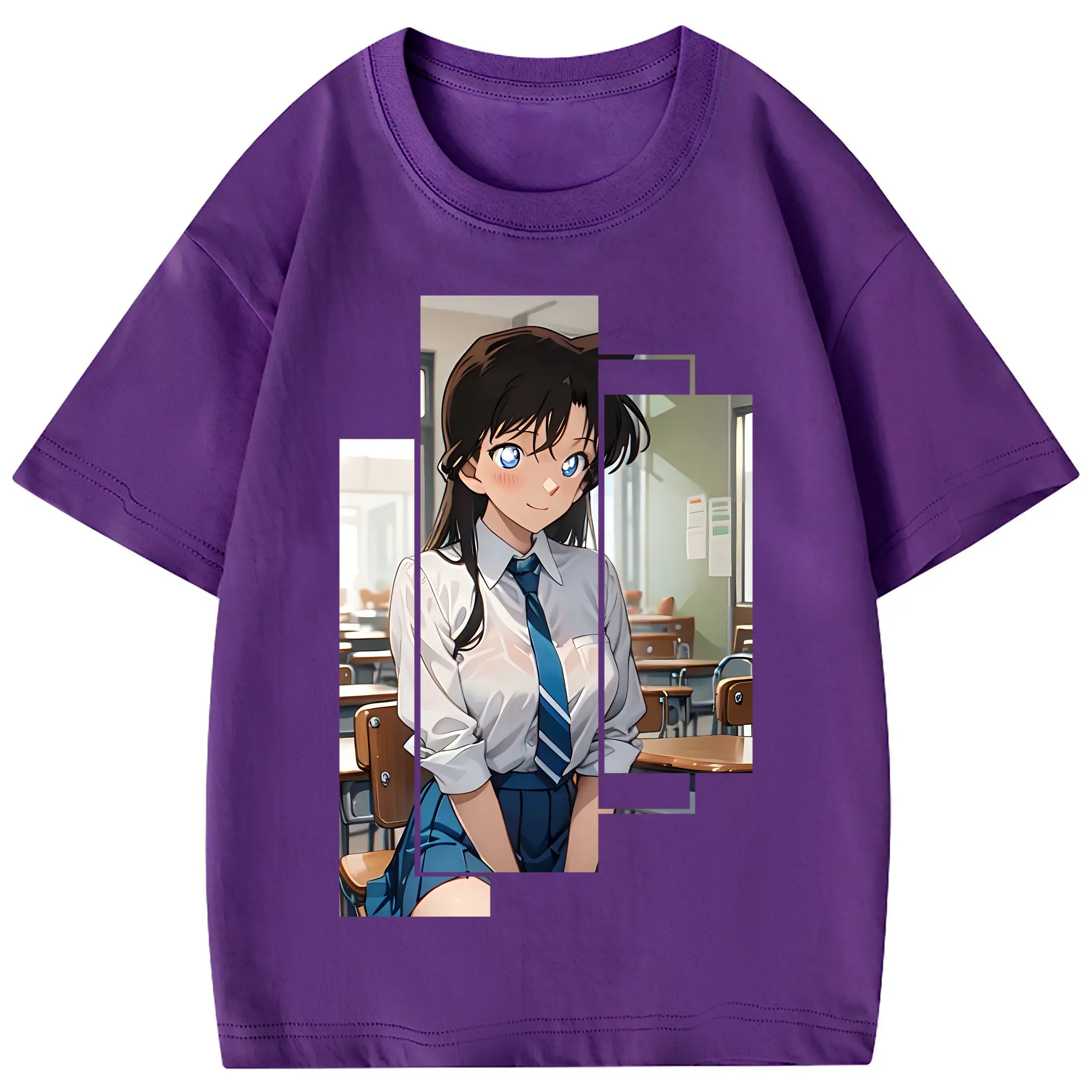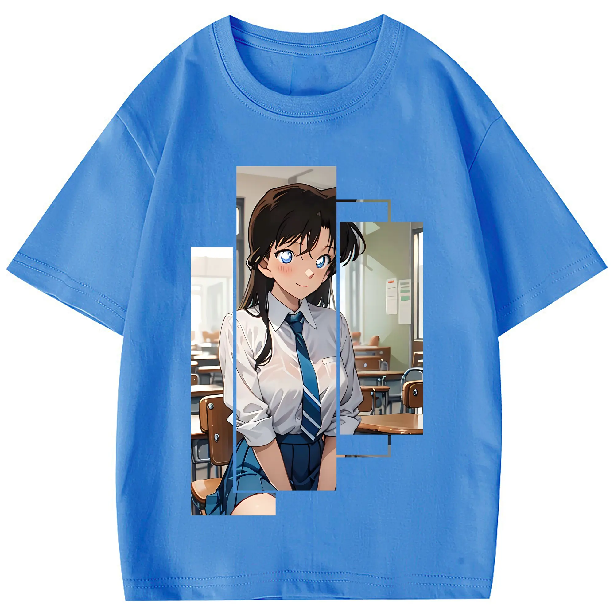 名探偵コナン グッズ 毛利 蘭 - 綿100% 半袖Tシャツ ・ フロントプリント ・ 快適 通気性 ・ 日常使い 散歩 スポーツ用