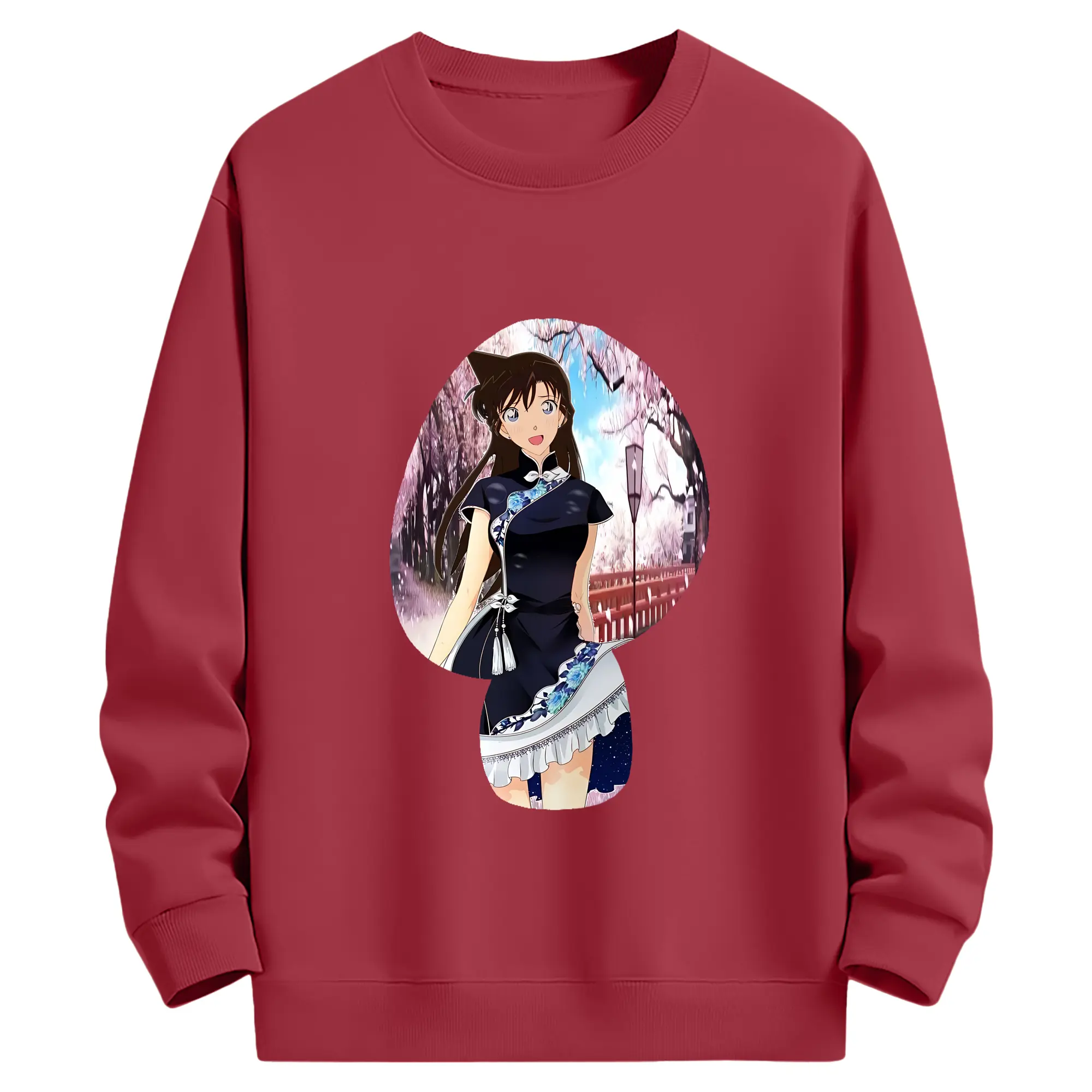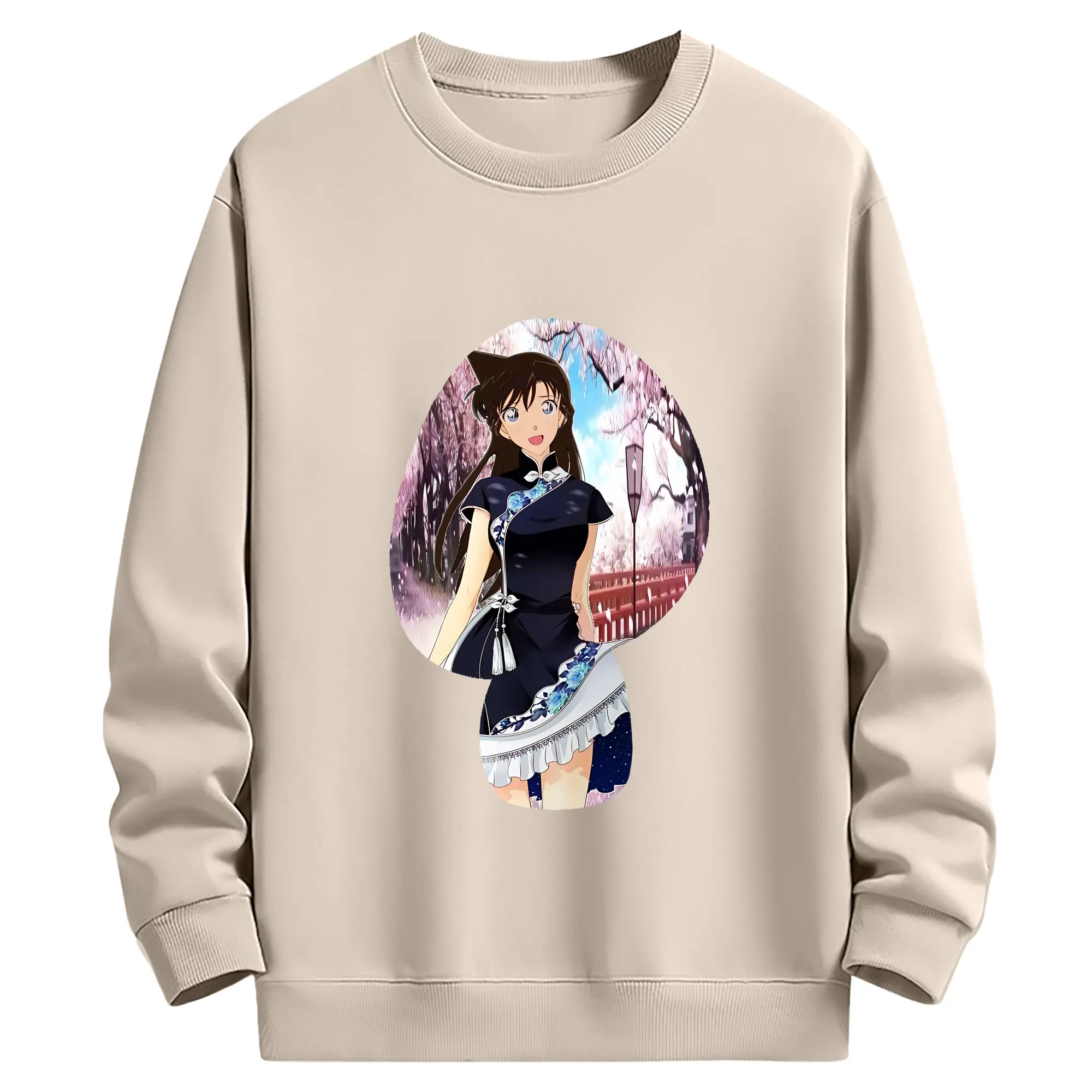 名探偵コナン グッズ 毛利 蘭 - 薄手 クルーネック スウェット 裏毛260g · ポリエステル 春秋向け カジュアル 男女兼用 · トレーナー デイリー スポーツ 散歩に最適