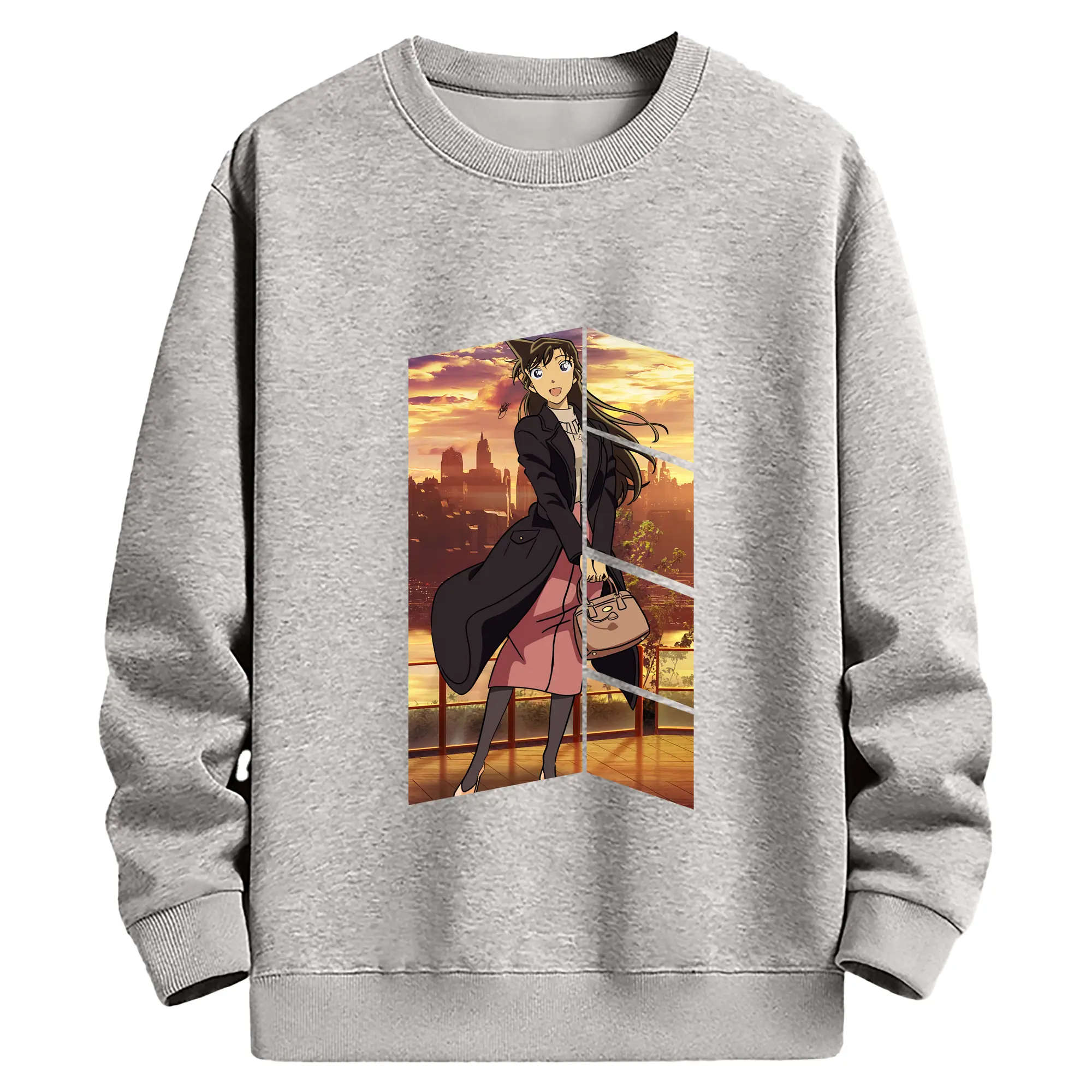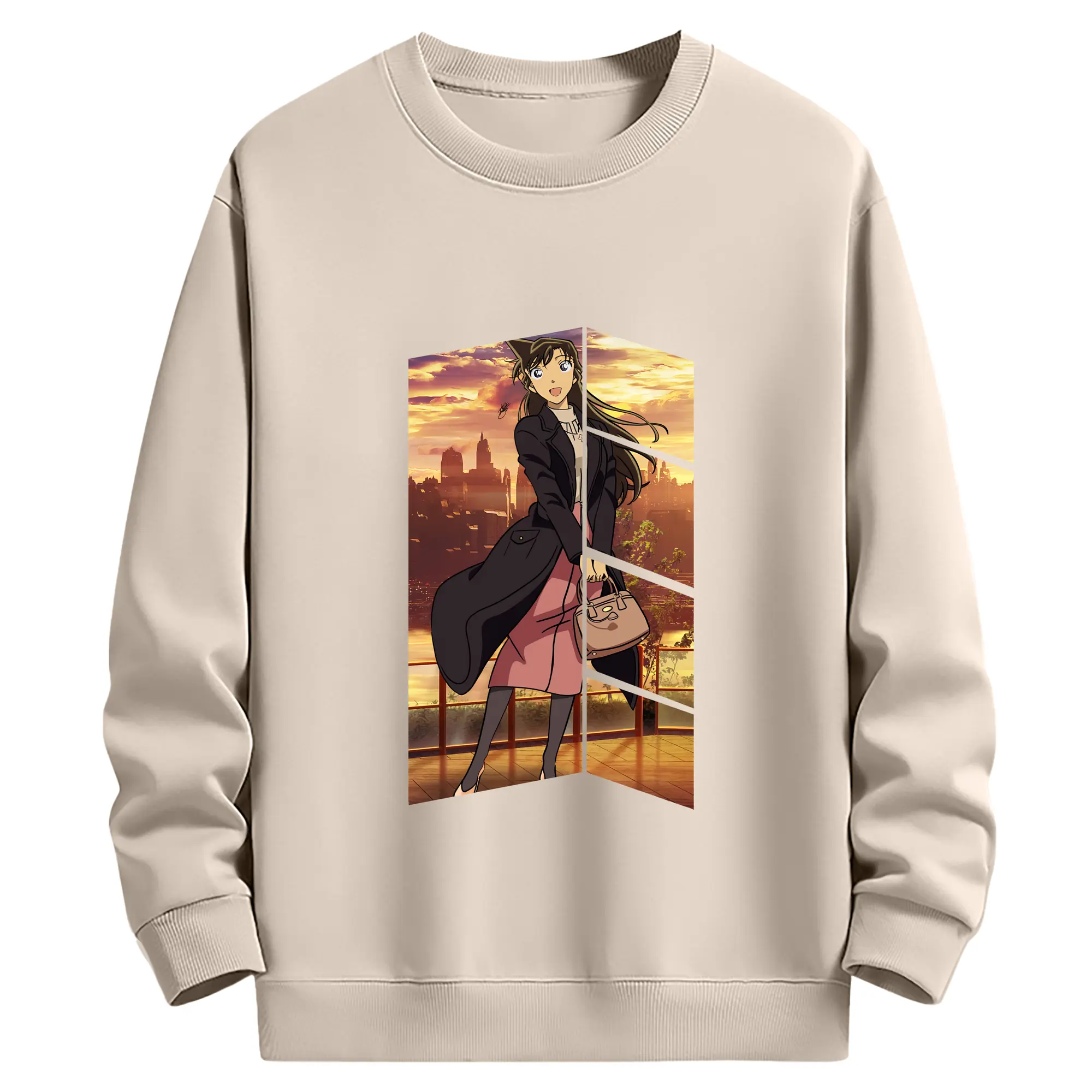 名探偵コナン グッズ 毛利 蘭 - 薄手 クルーネック スウェット 裏毛260g · ポリエステル 春秋向け カジュアル 男女兼用 · トレーナー デイリー スポーツ 散歩に最適