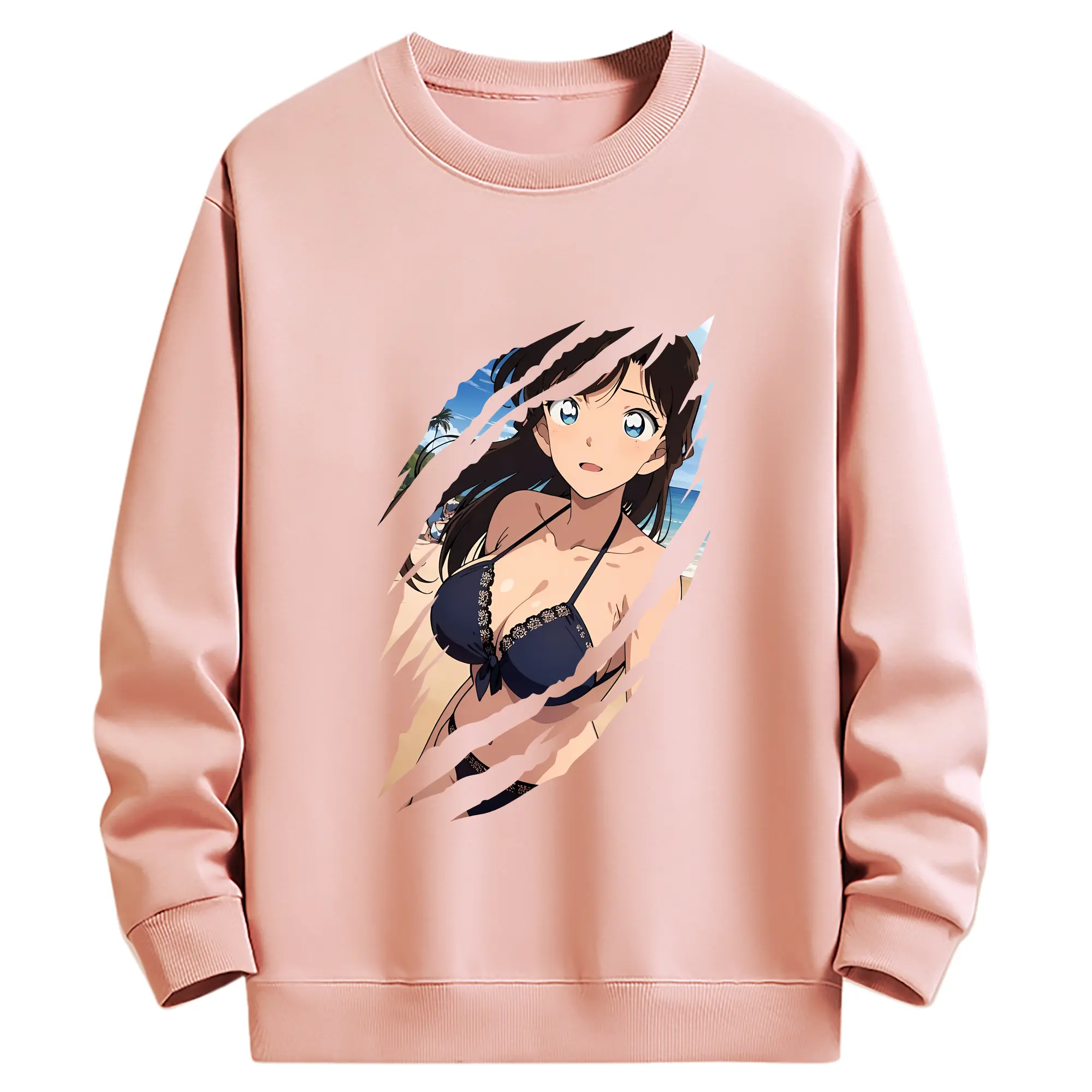 名探偵コナン グッズ 毛利 蘭 - 薄手 クルーネック スウェット 裏毛260g · ポリエステル 春秋向け カジュアル 男女兼用 · トレーナー デイリー スポーツ 散歩に最適