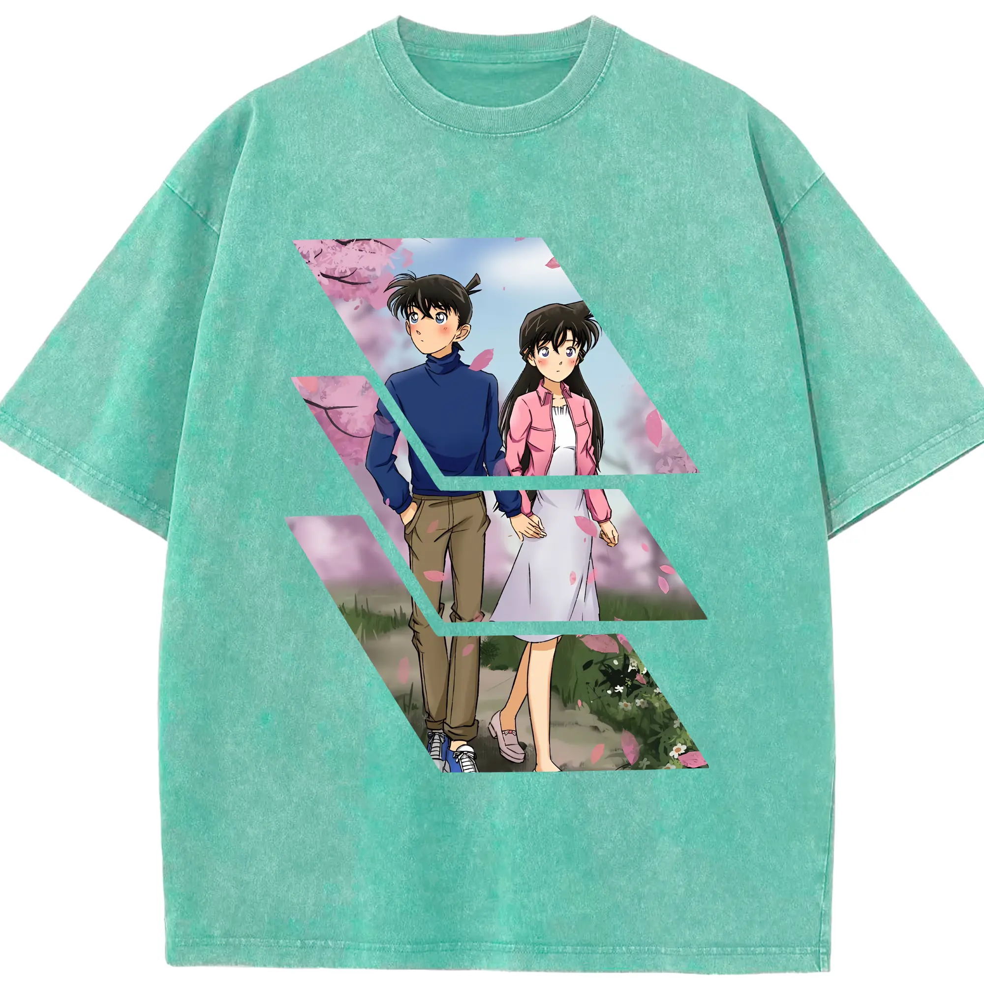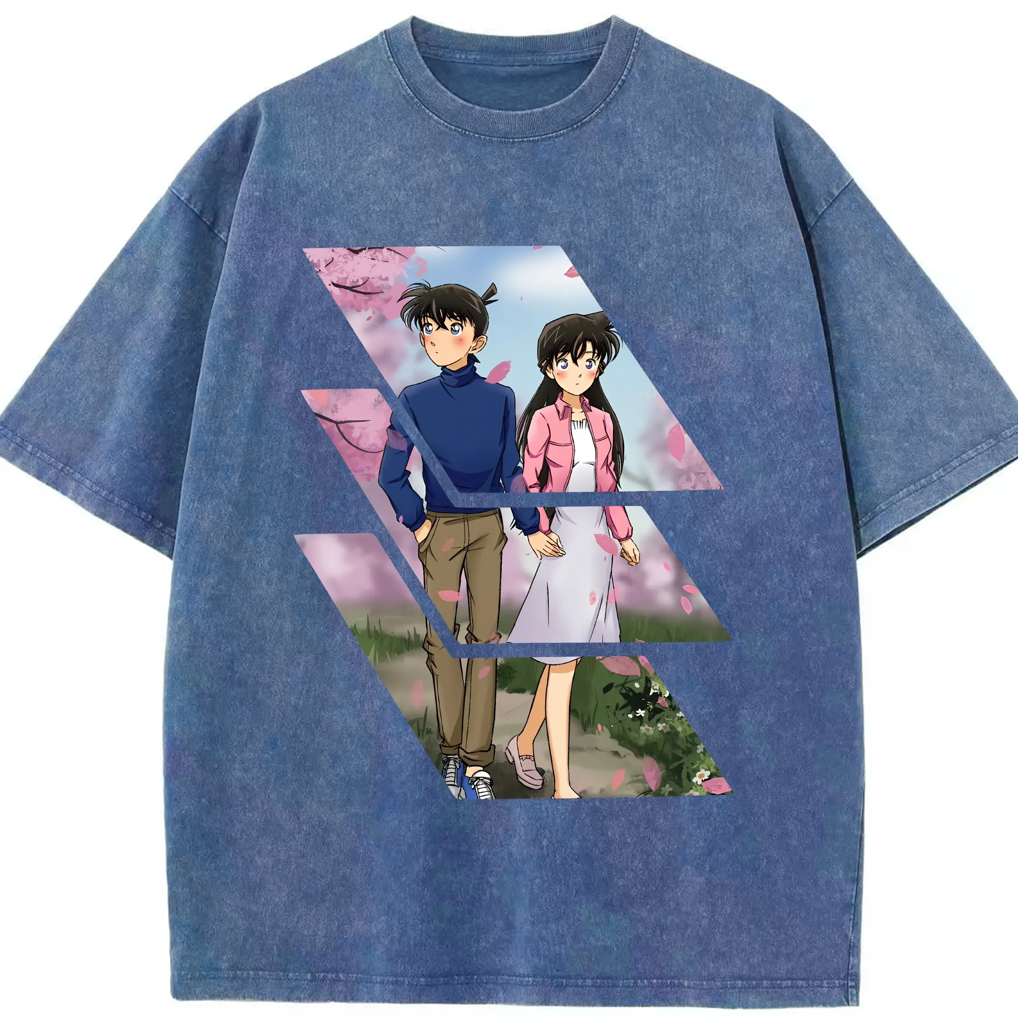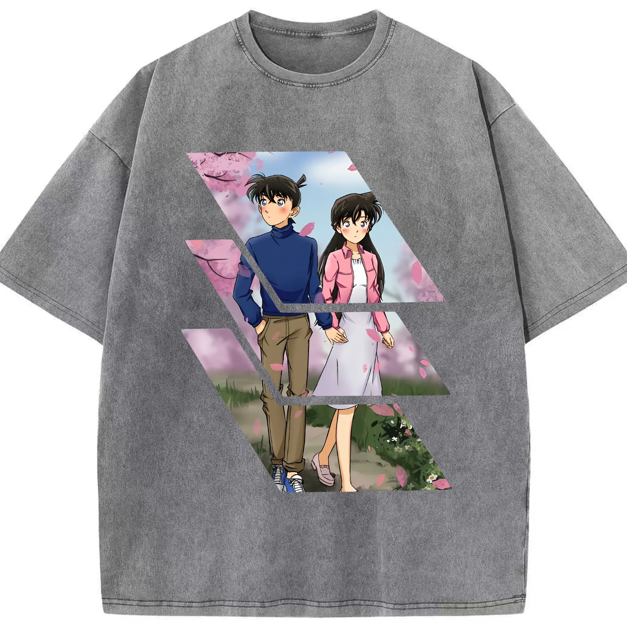 名探偵コナン グッズ 毛利 蘭 - 綿100% ヴィンテージ風 半袖Tシャツ ・ フロントプリント ・ 柔らか肌触り ・ 通気性 快適 ・ スポーツ カジュアル 外出用