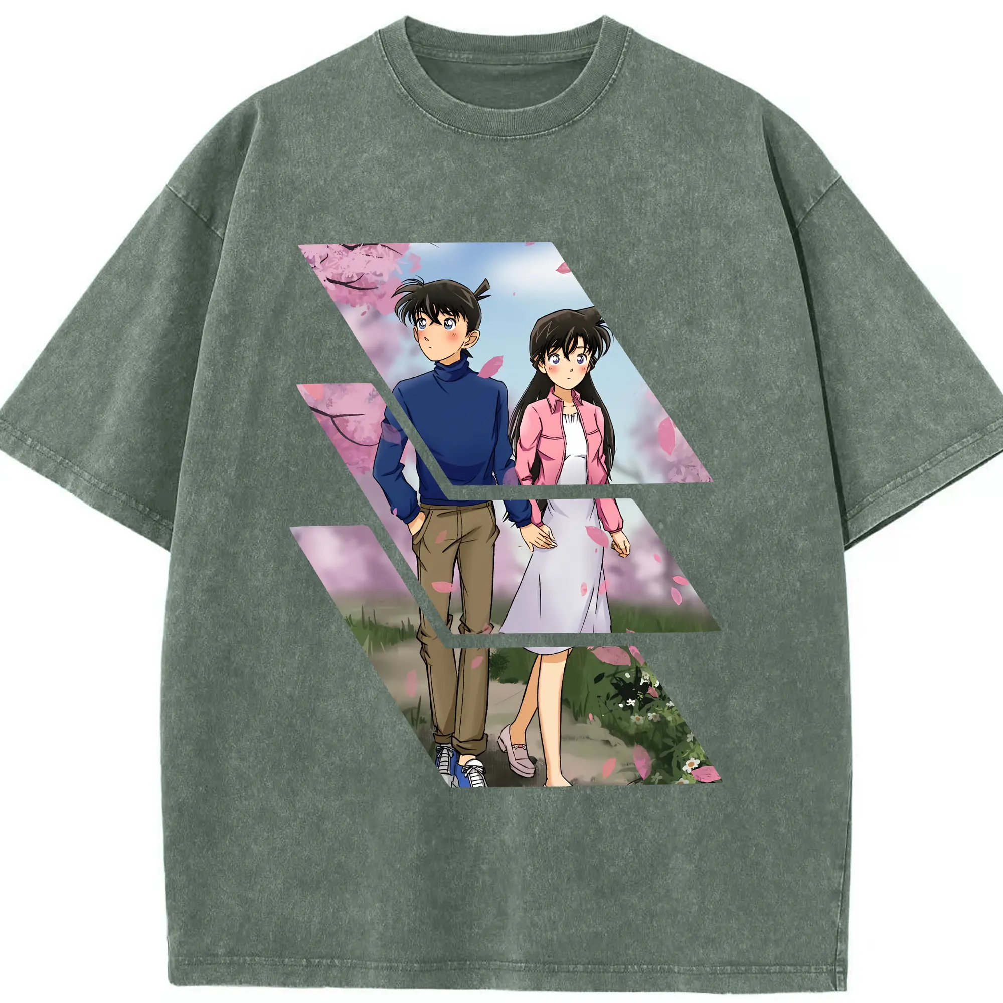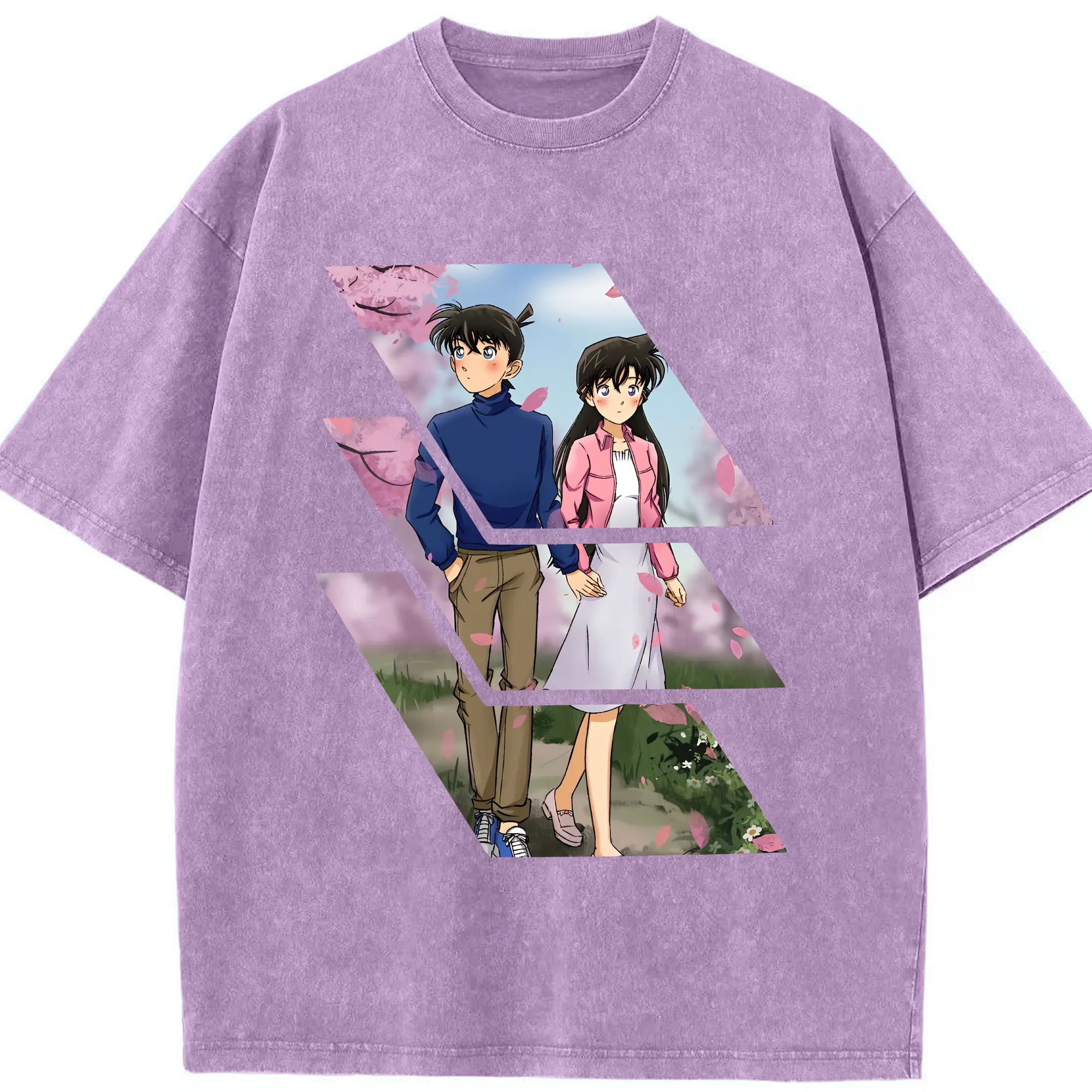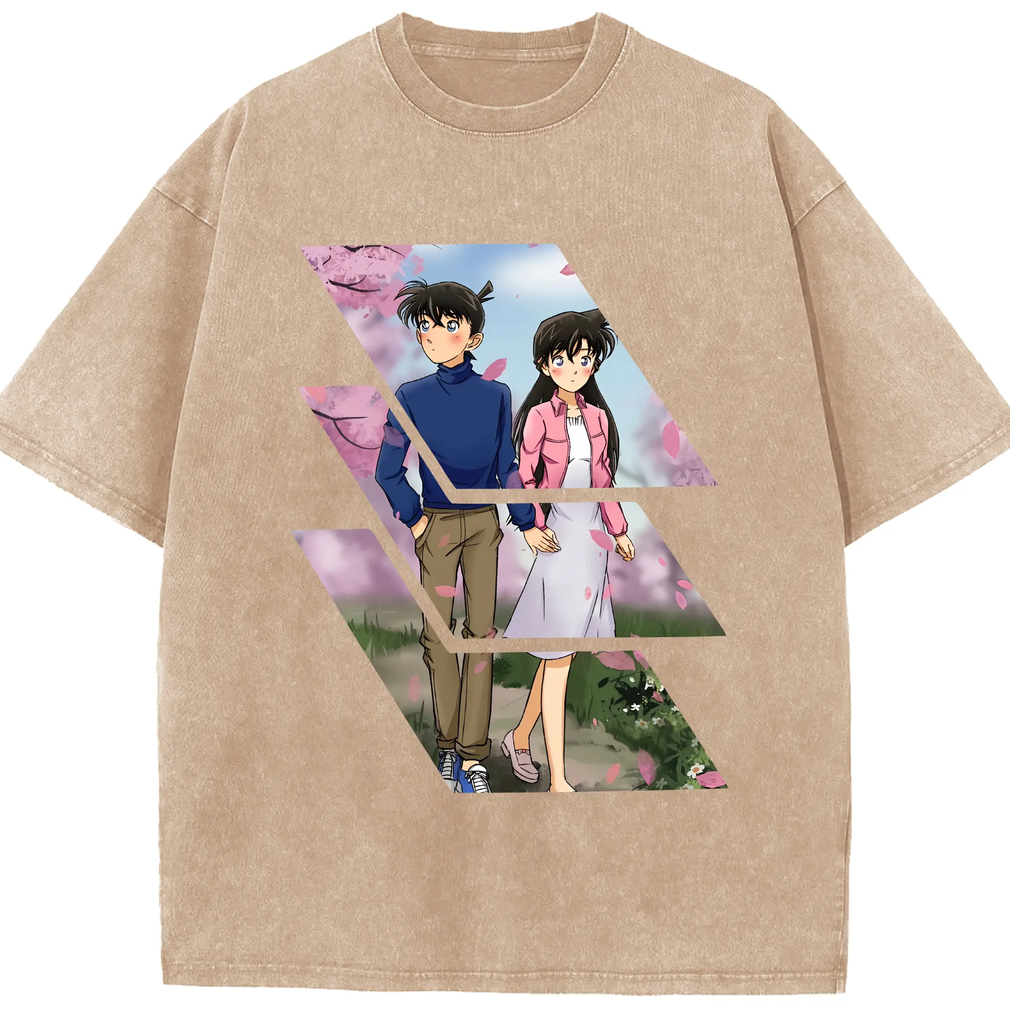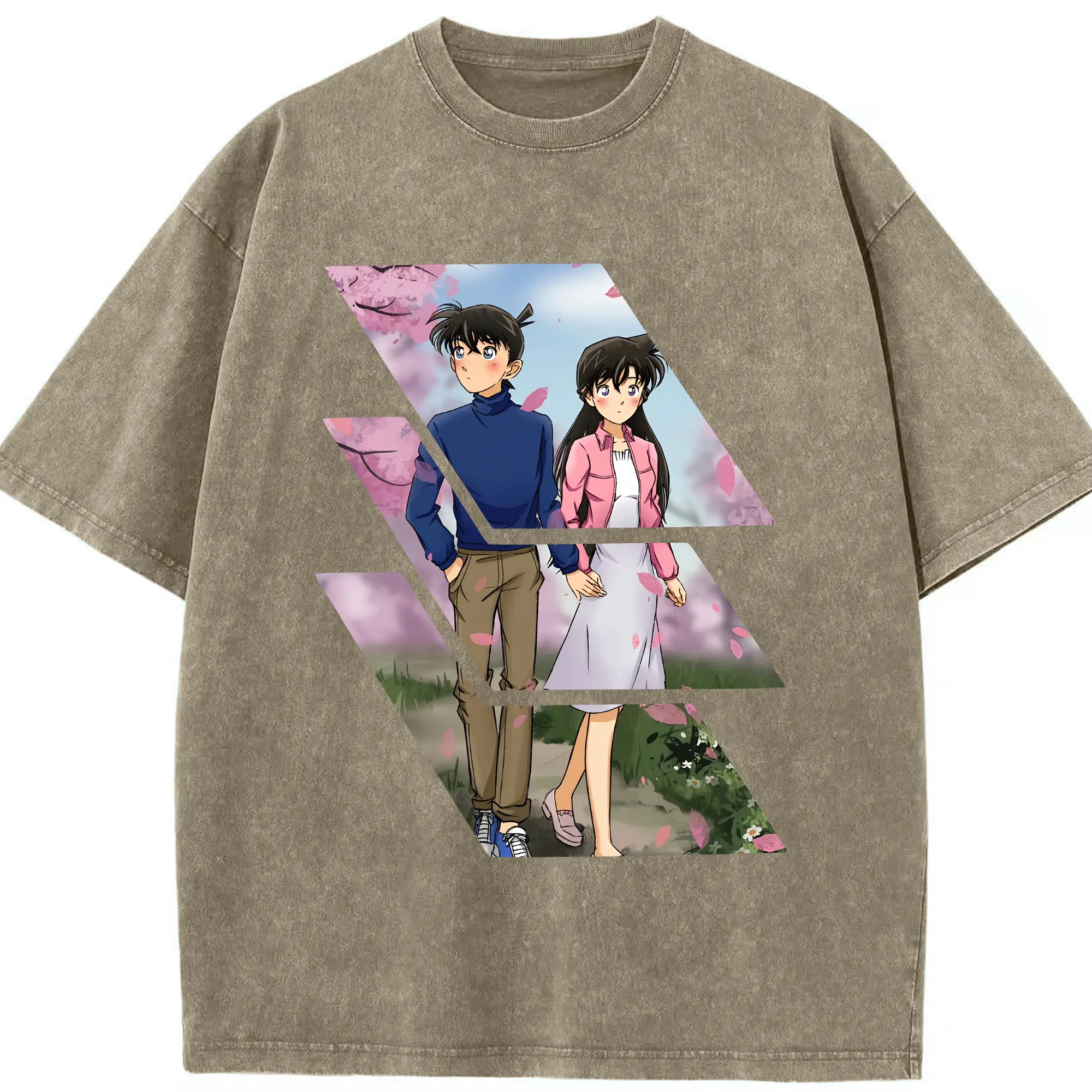 名探偵コナン グッズ 毛利 蘭 - 綿100% ヴィンテージ風 半袖Tシャツ ・ フロントプリント ・ 柔らか肌触り ・ 通気性 快適 ・ スポーツ カジュアル 外出用