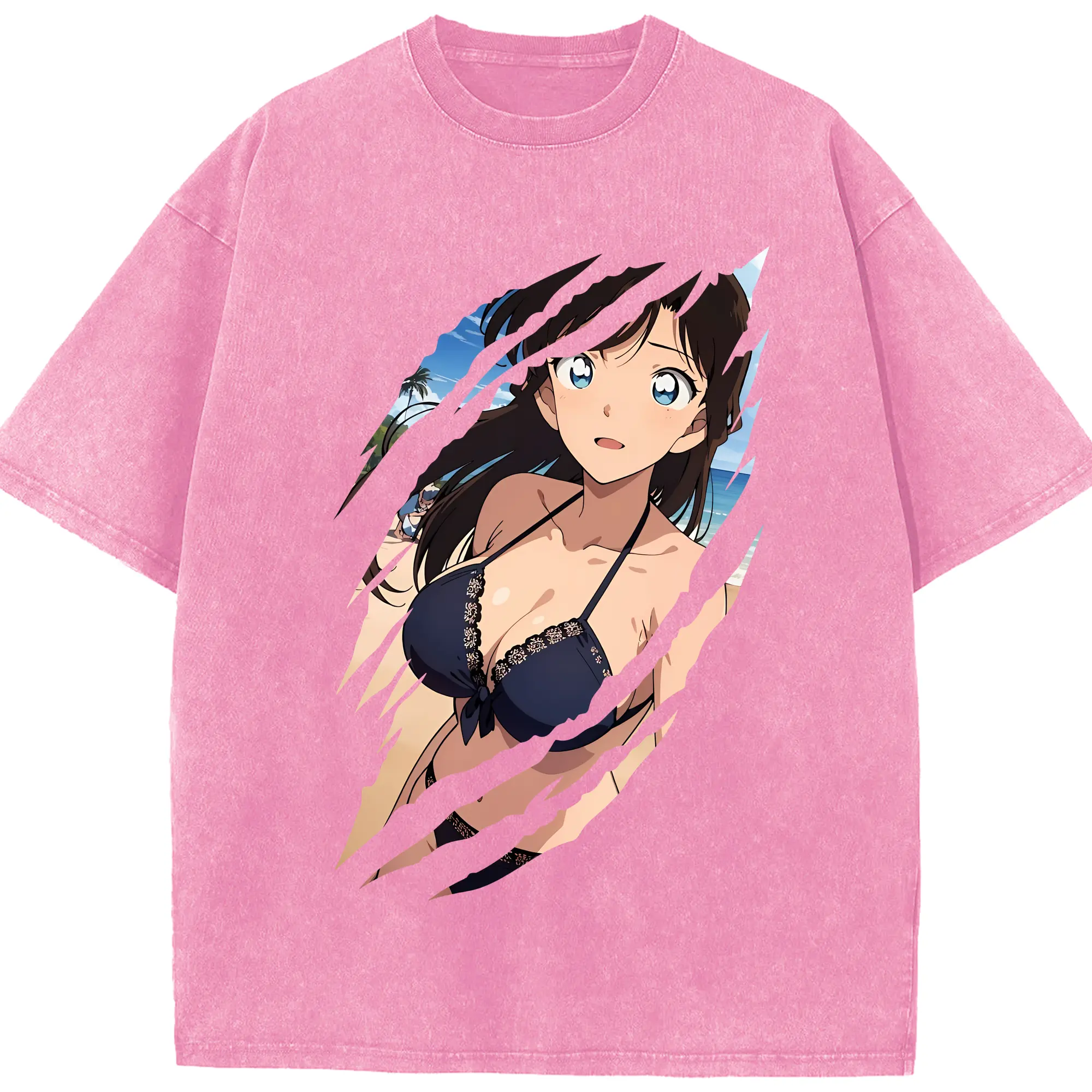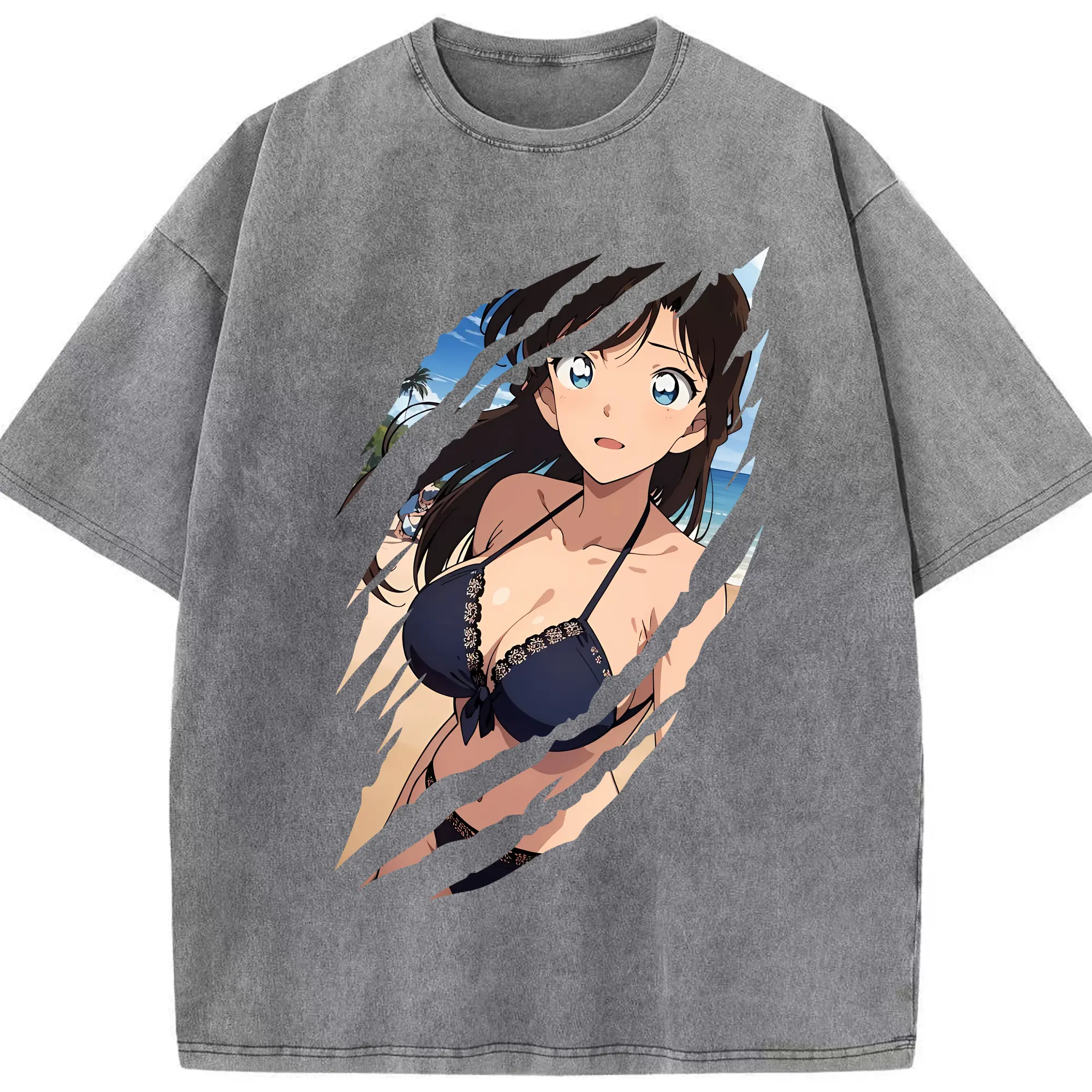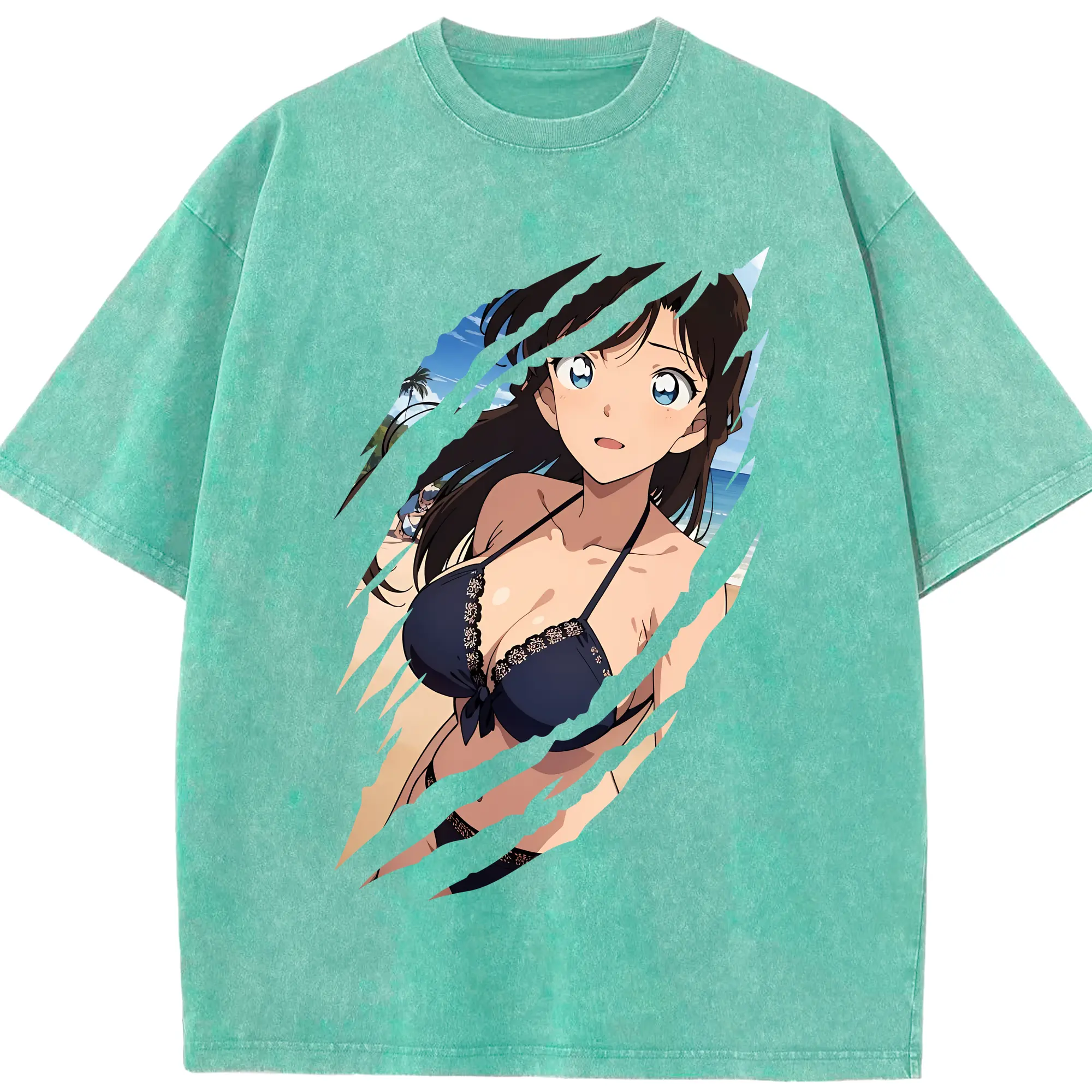 名探偵コナン グッズ 毛利 蘭 - 綿100% ヴィンテージ風 半袖Tシャツ ・ 背面プリント ・ 柔らか肌触り ・ 通気性 快適 ・ スポーツ カジュアル 外出用