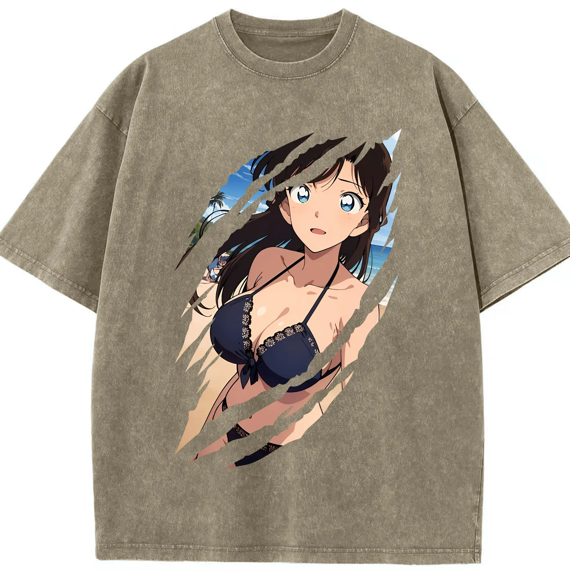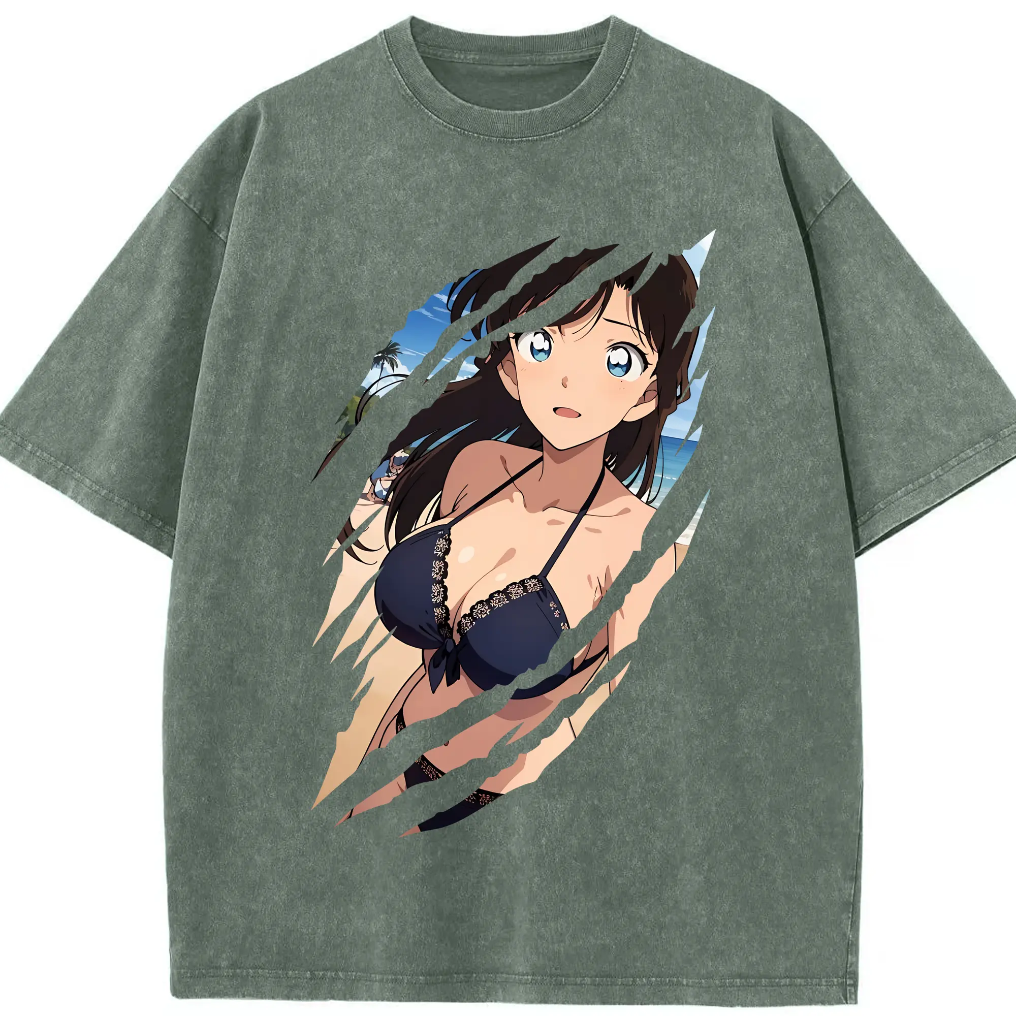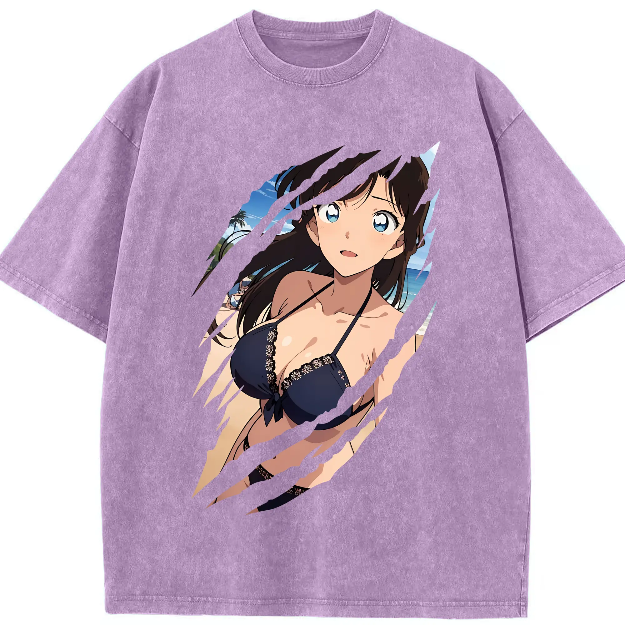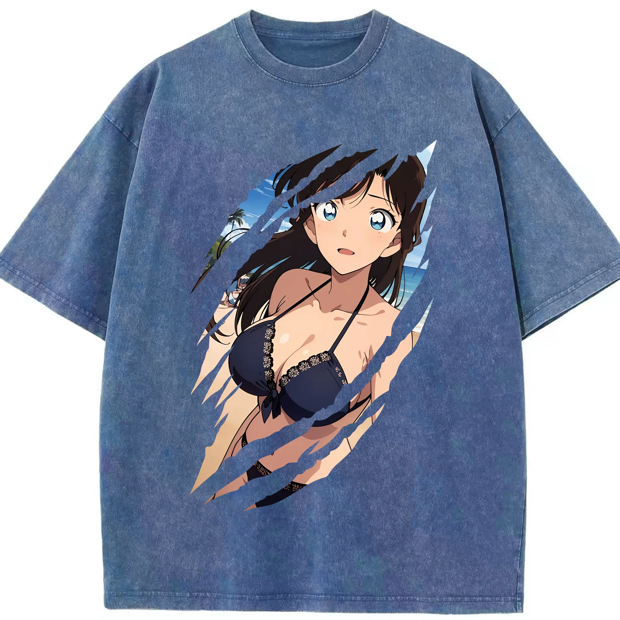 名探偵コナン グッズ 毛利 蘭 - 綿100% ヴィンテージ風 半袖Tシャツ ・ 背面プリント ・ 柔らか肌触り ・ 通気性 快適 ・ スポーツ カジュアル 外出用