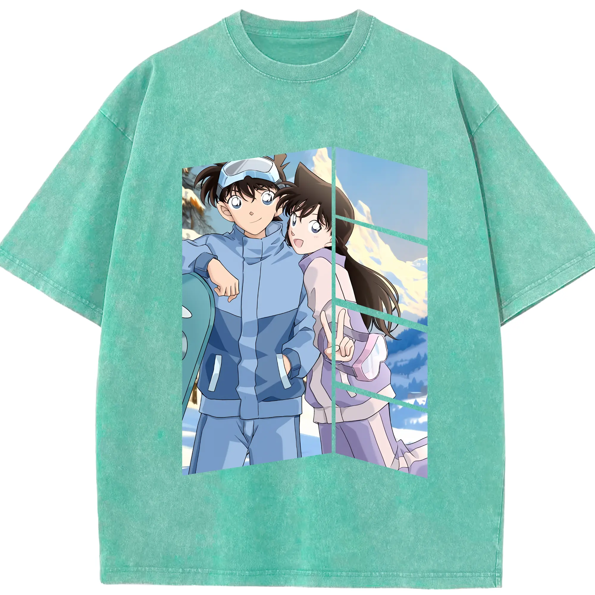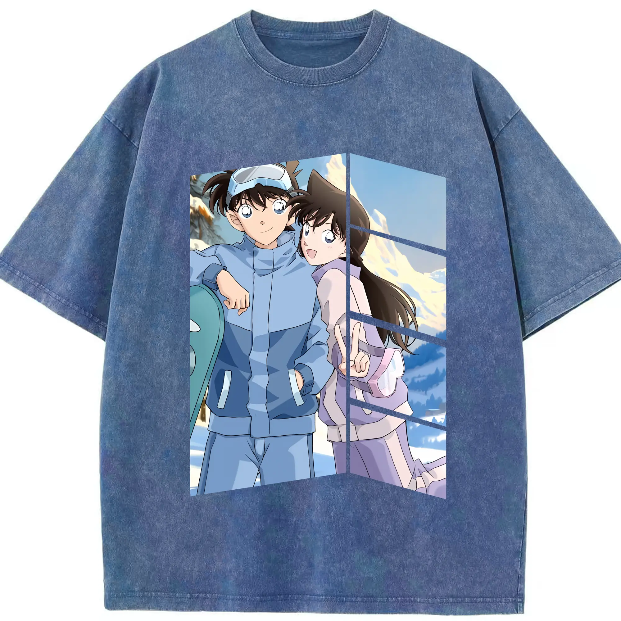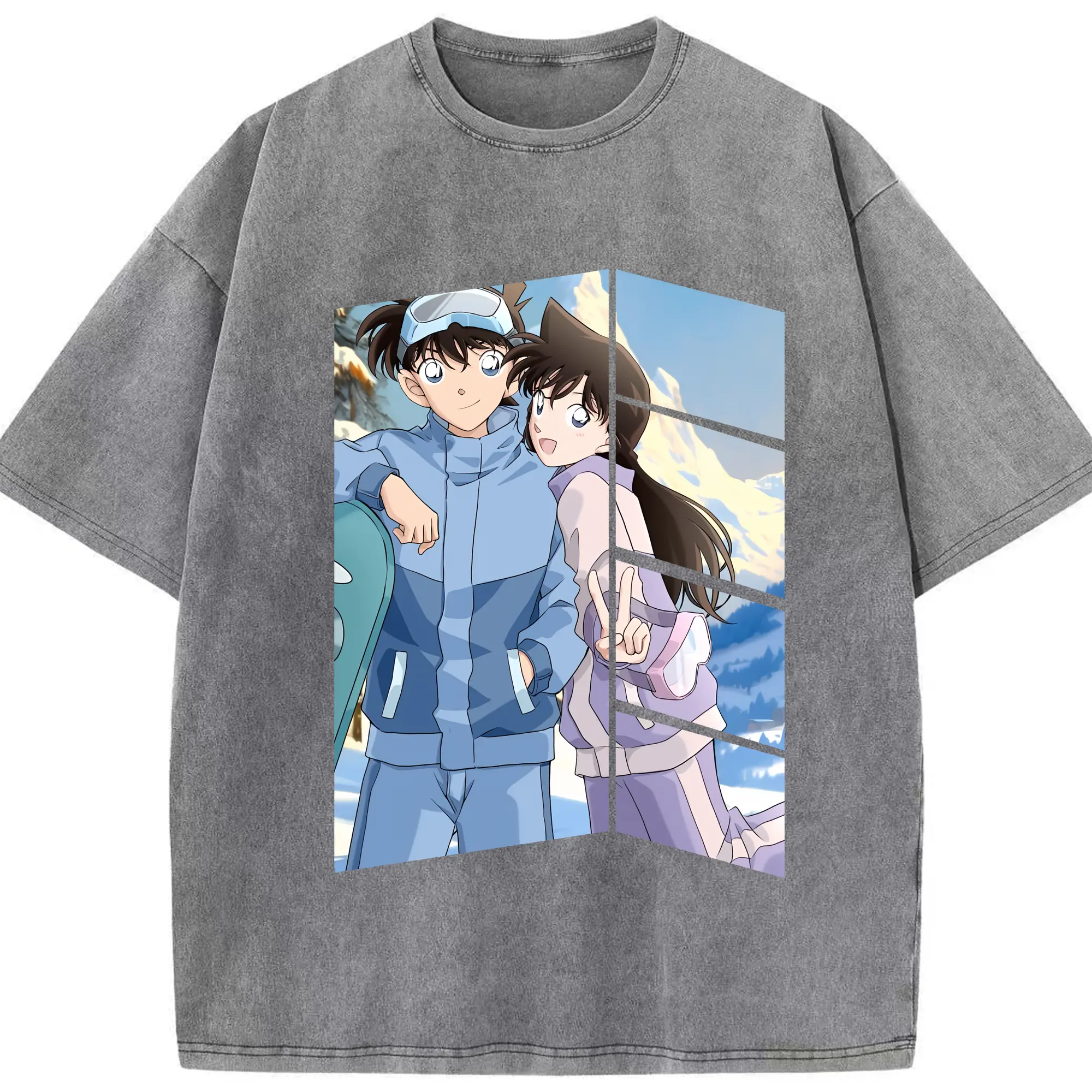 名探偵コナン グッズ 毛利 蘭 - 綿100% ヴィンテージ風 半袖Tシャツ ・ 背面プリント ・ 柔らか肌触り ・ 通気性 快適 ・ スポーツ カジュアル 外出用