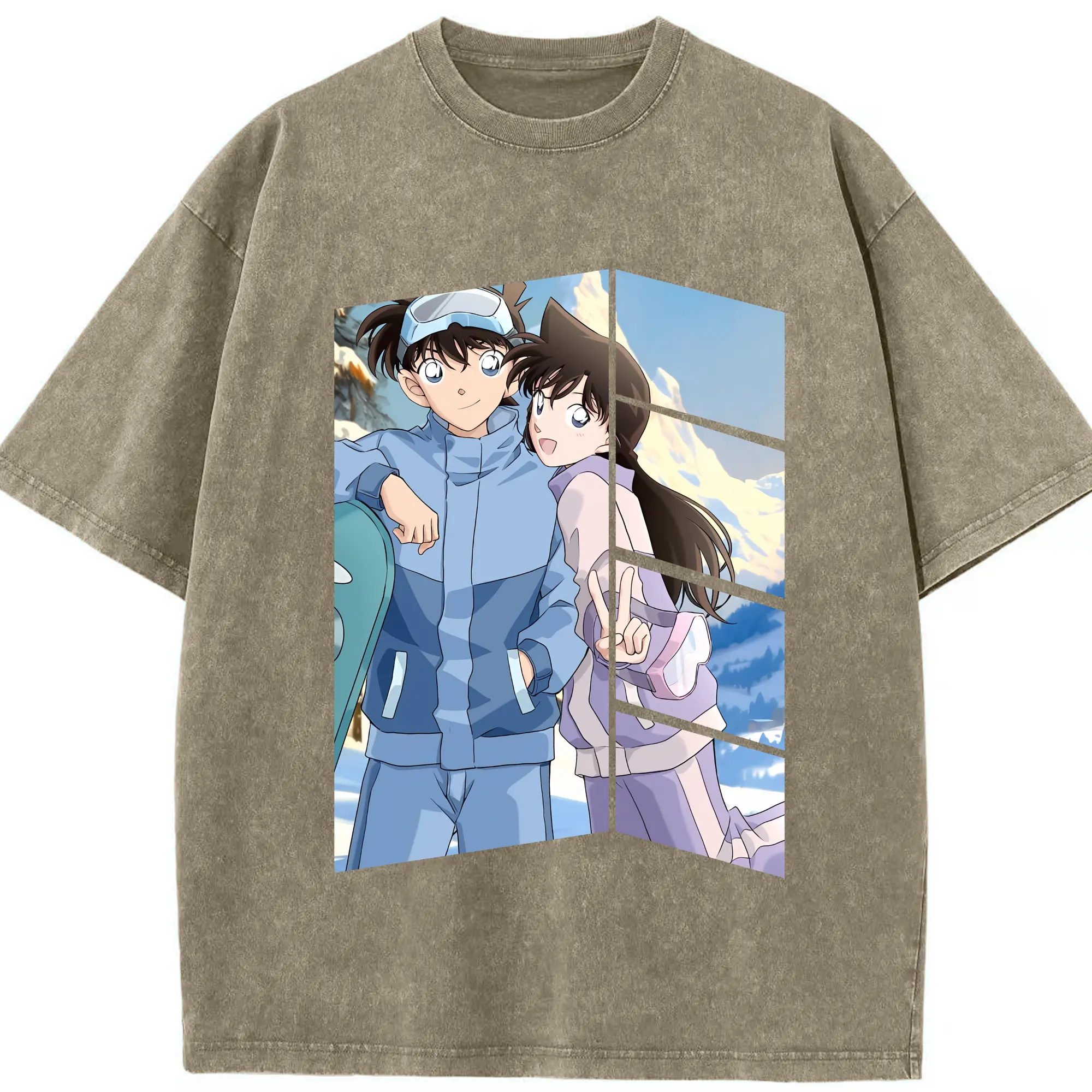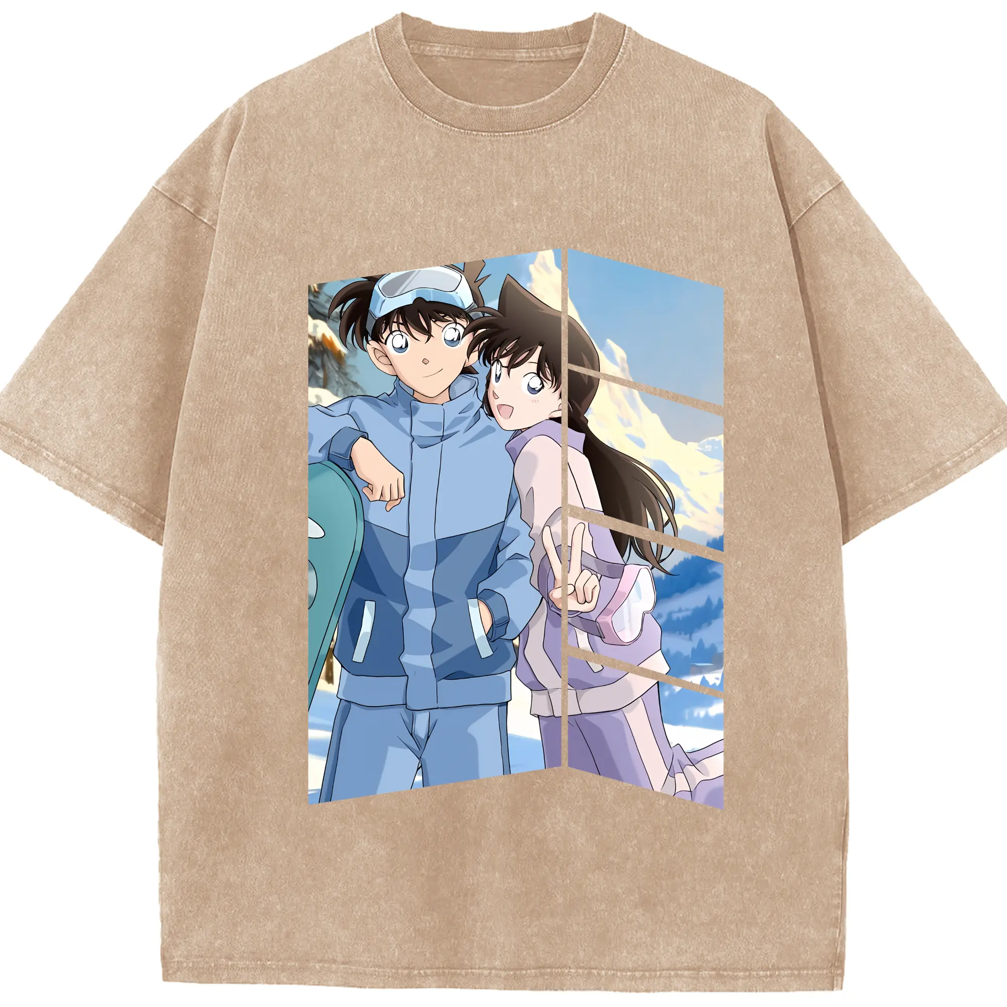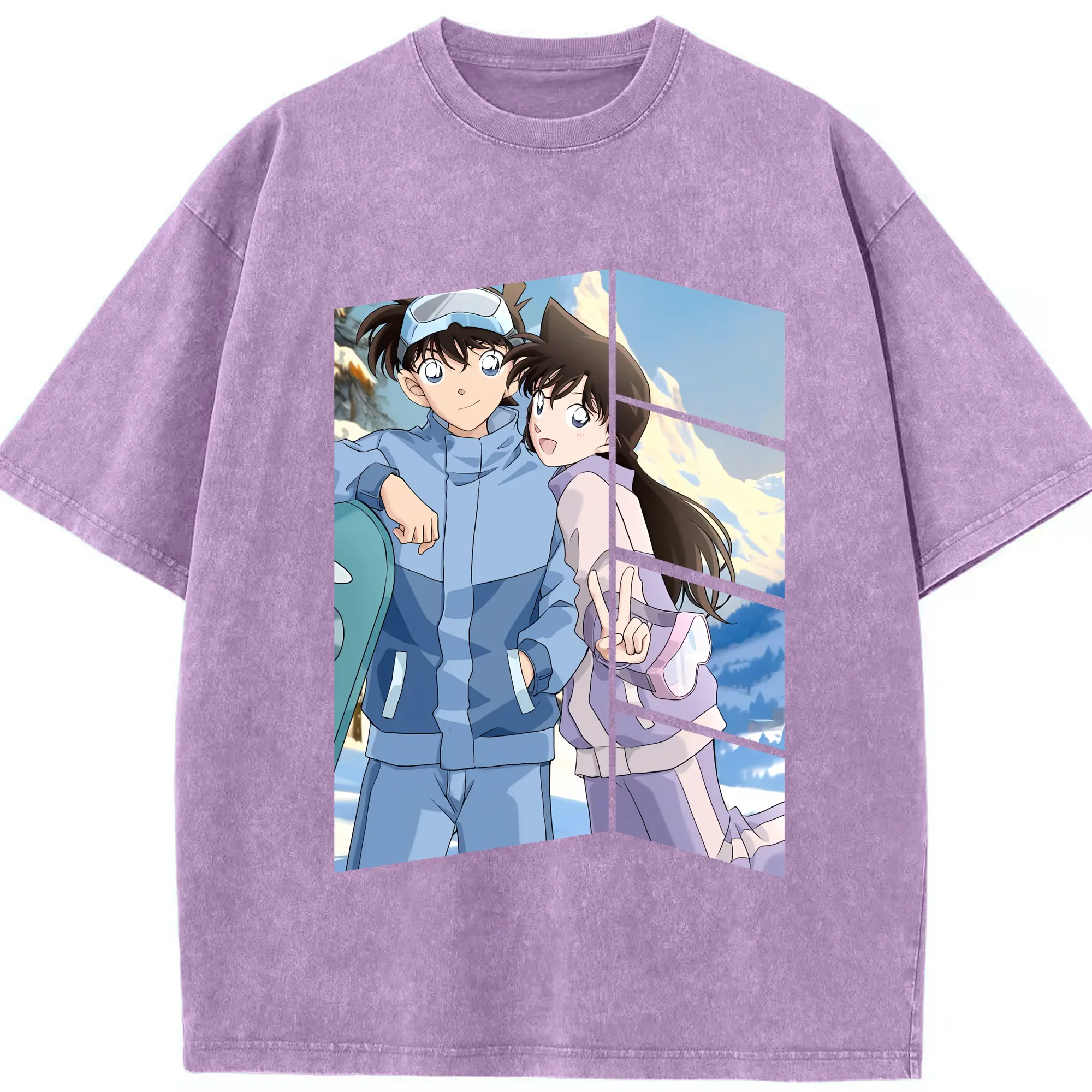 名探偵コナン グッズ 毛利 蘭 - 綿100% ヴィンテージ風 半袖Tシャツ ・ 背面プリント ・ 柔らか肌触り ・ 通気性 快適 ・ スポーツ カジュアル 外出用
