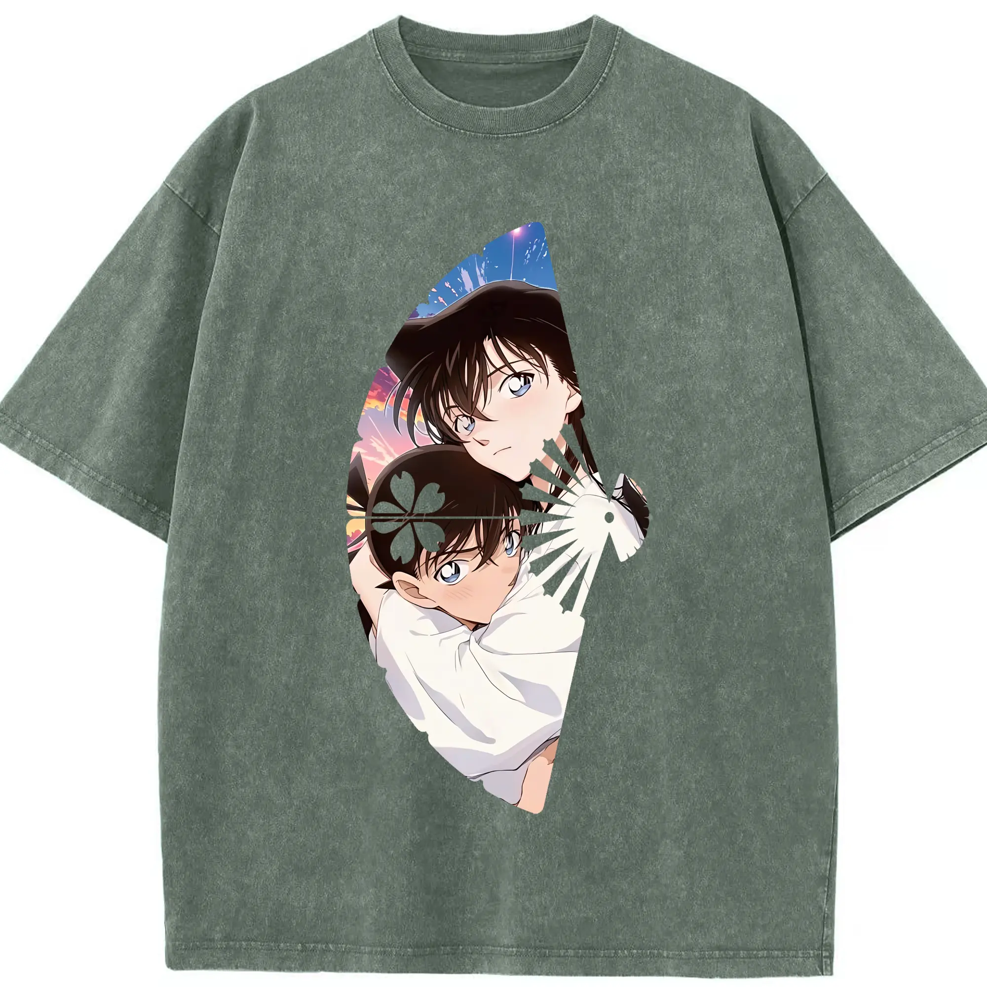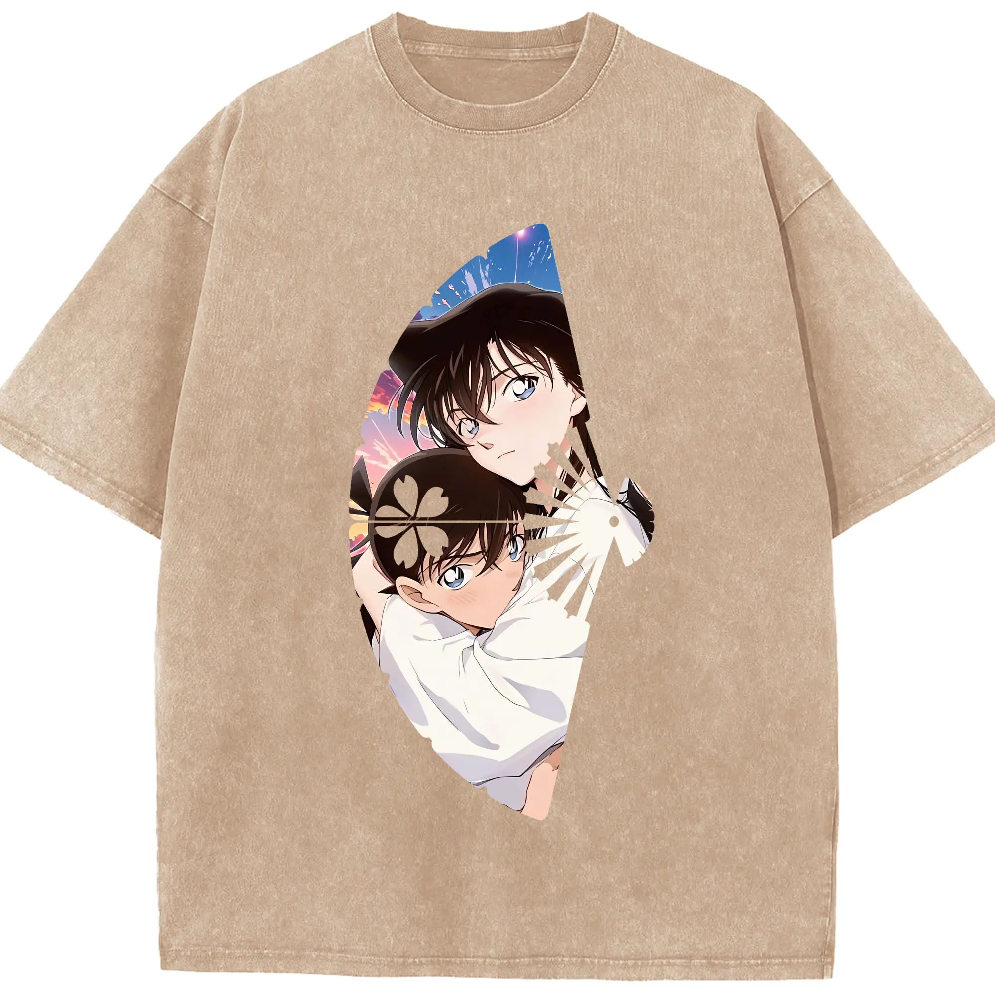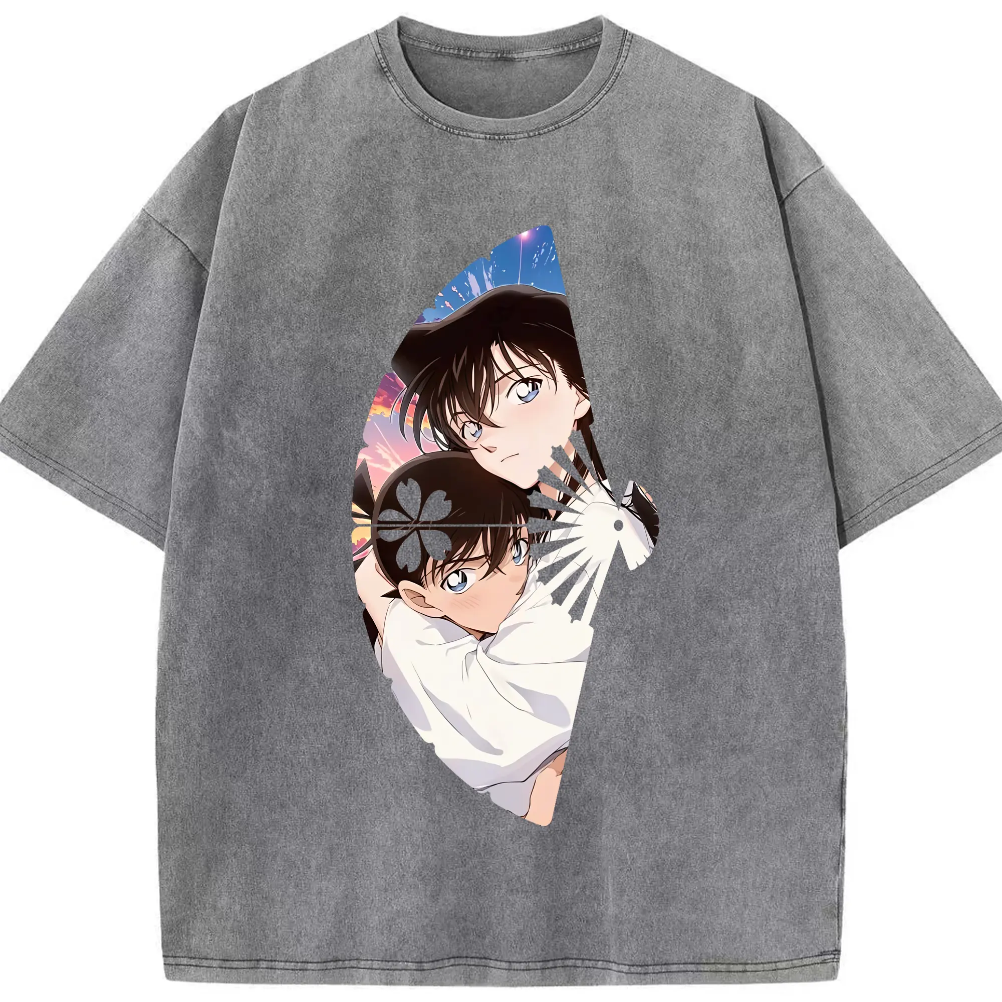 名探偵コナン グッズ 毛利 蘭 - 綿100% ヴィンテージ風 半袖Tシャツ ・ 背面プリント ・ 柔らか肌触り ・ 通気性 快適 ・ スポーツ カジュアル 外出用