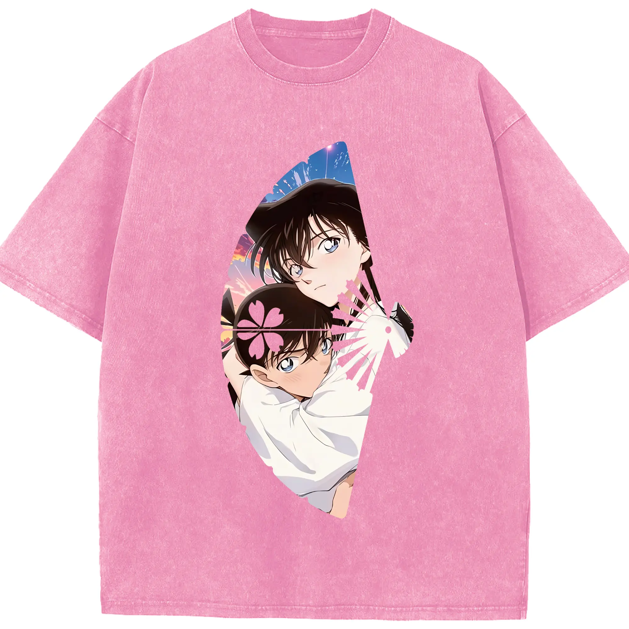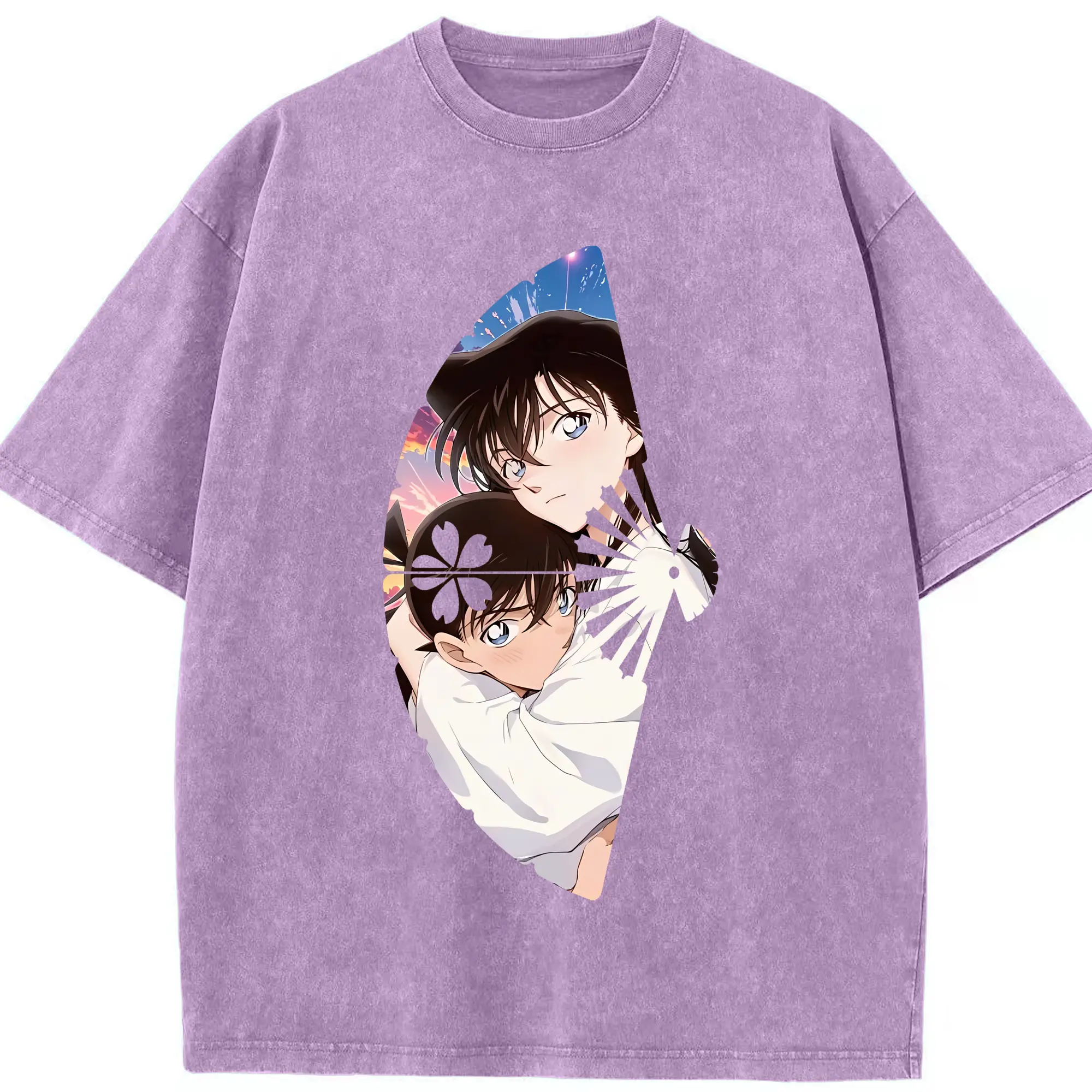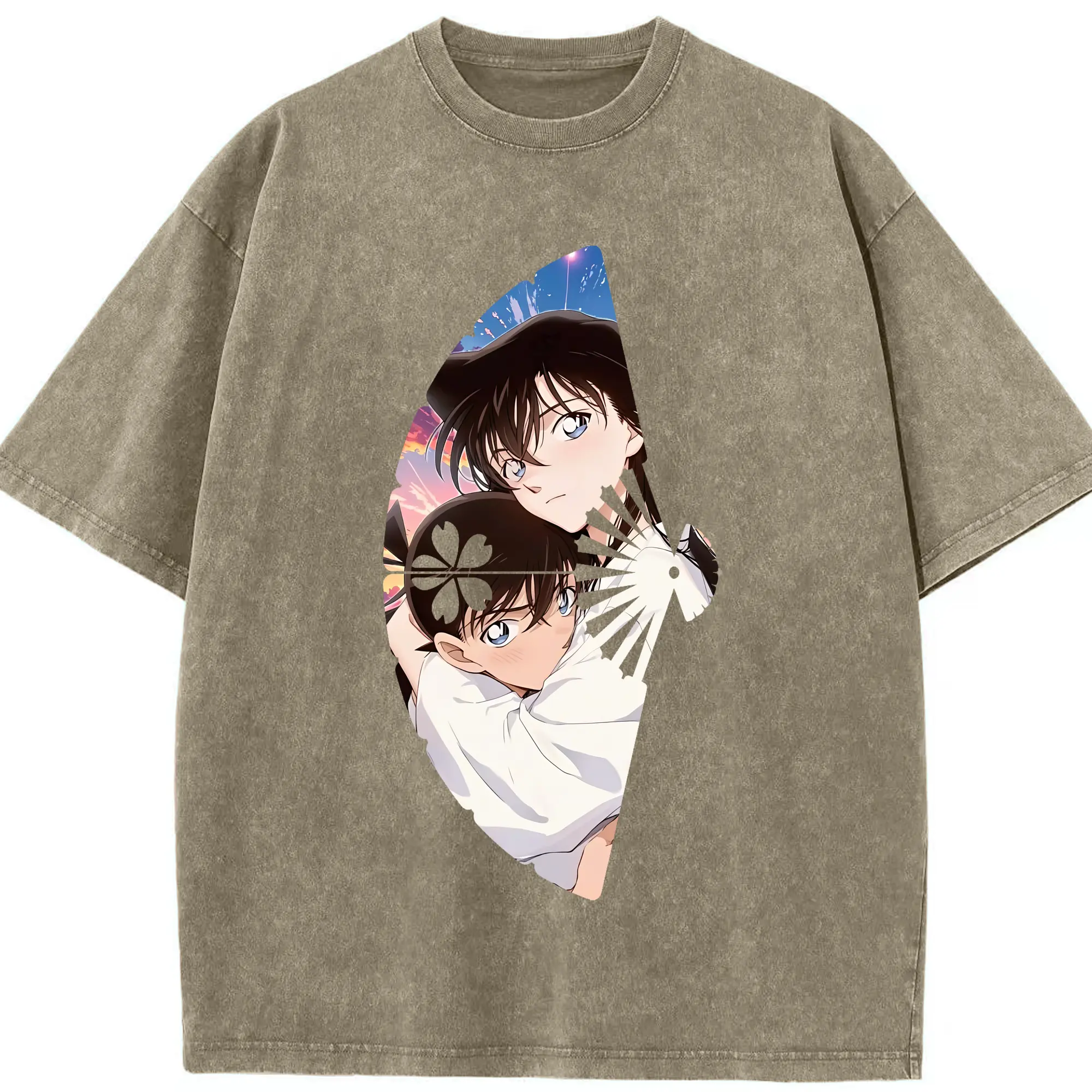名探偵コナン グッズ 毛利 蘭 - 綿100% ヴィンテージ風 半袖Tシャツ ・ 背面プリント ・ 柔らか肌触り ・ 通気性 快適 ・ スポーツ カジュアル 外出用