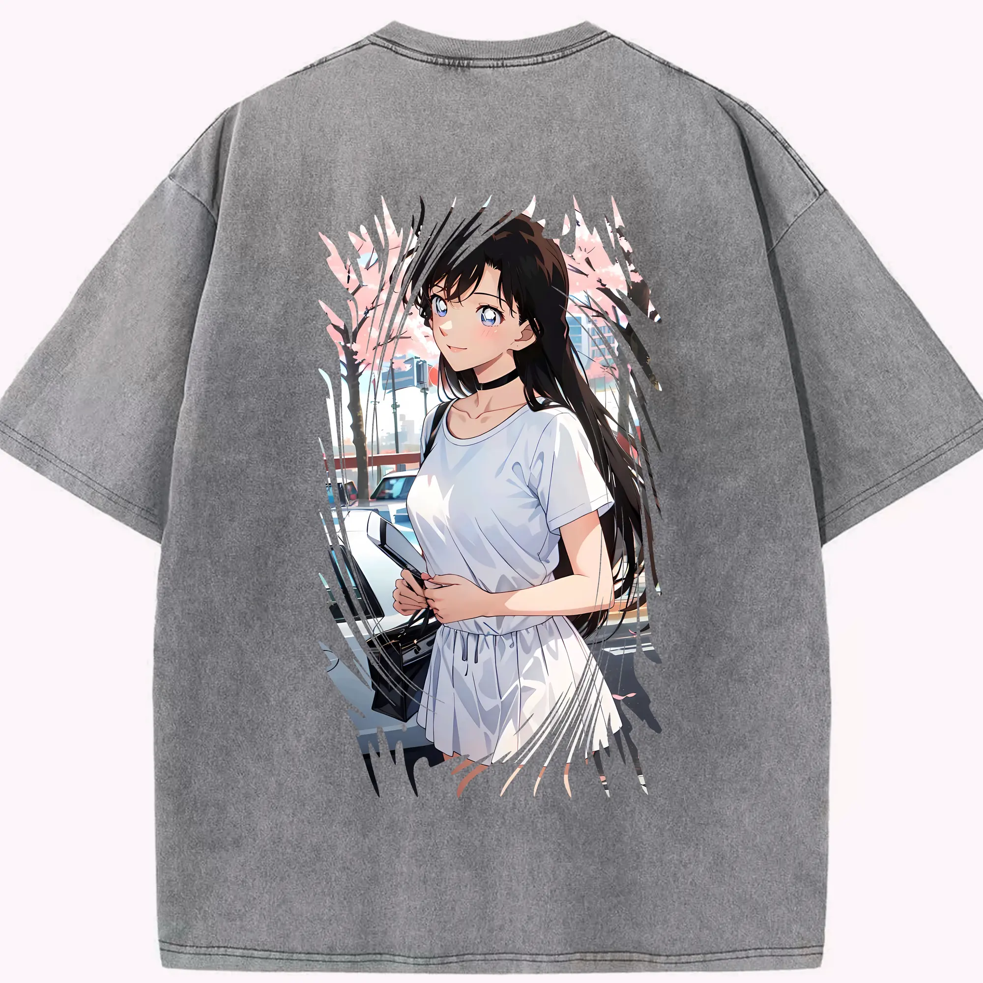 名探偵コナン グッズ 毛利 蘭 - 綿100% ヴィンテージ風 半袖Tシャツ ・ フロントプリント ・ 柔らか肌触り ・ 通気性 快適 ・ スポーツ カジュアル 外出用