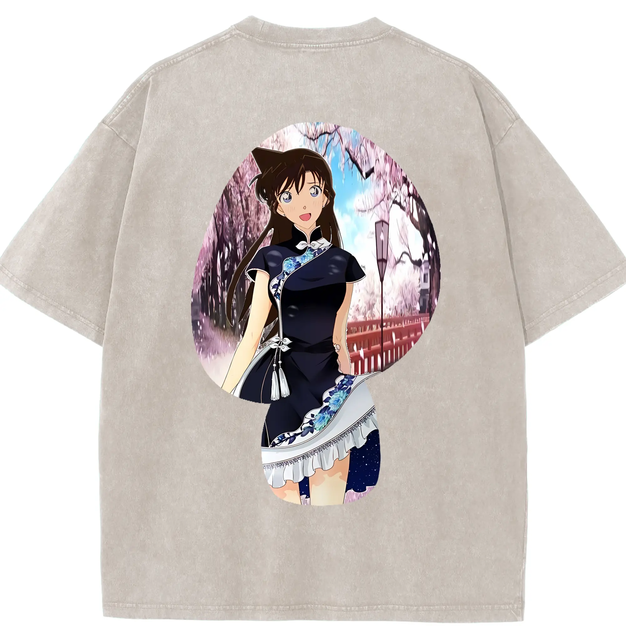 名探偵コナン グッズ 毛利 蘭 - 綿100% ヴィンテージ風 半袖Tシャツ ・ フロントプリント ・ 柔らか肌触り ・ 通気性 快適 ・ スポーツ カジュアル 外出用