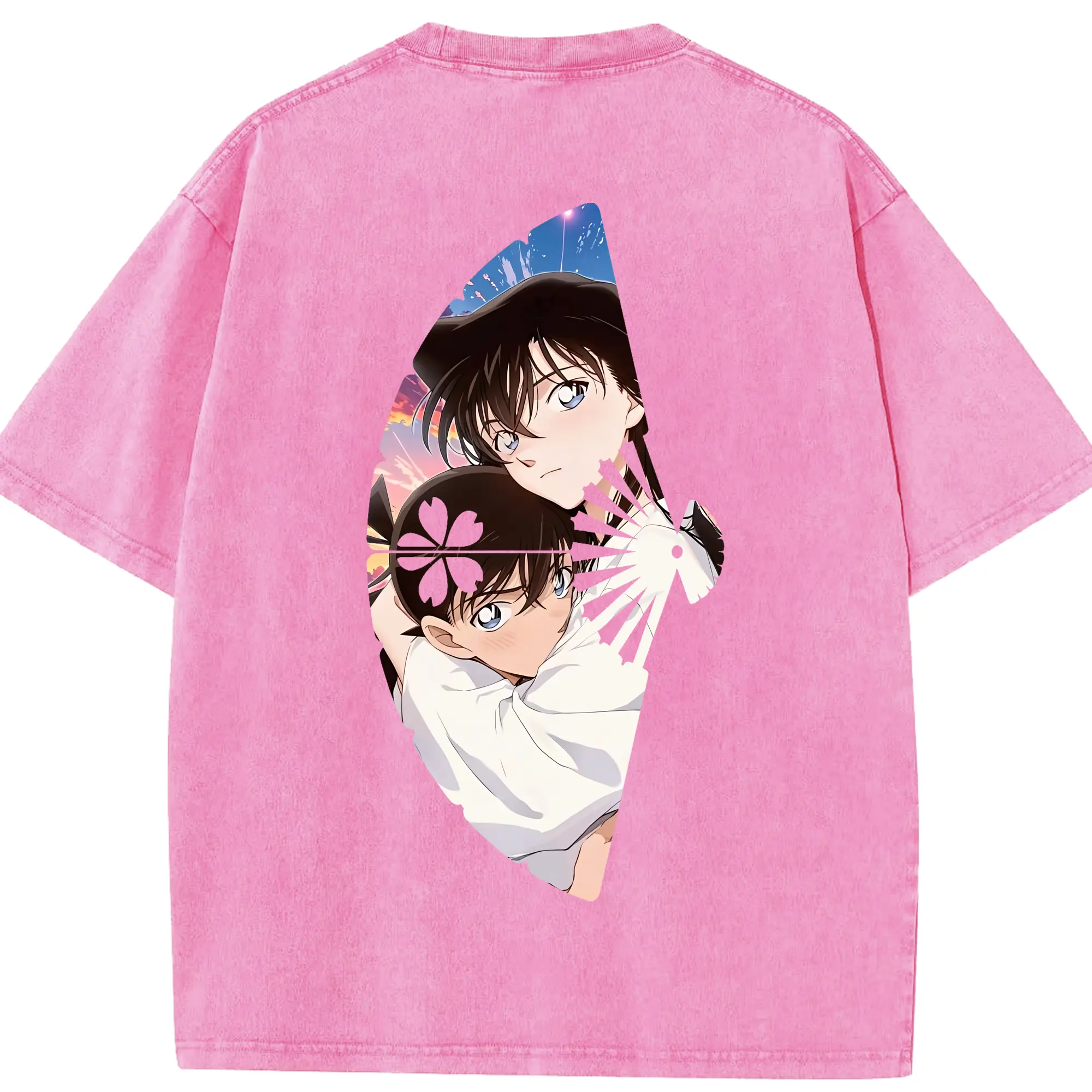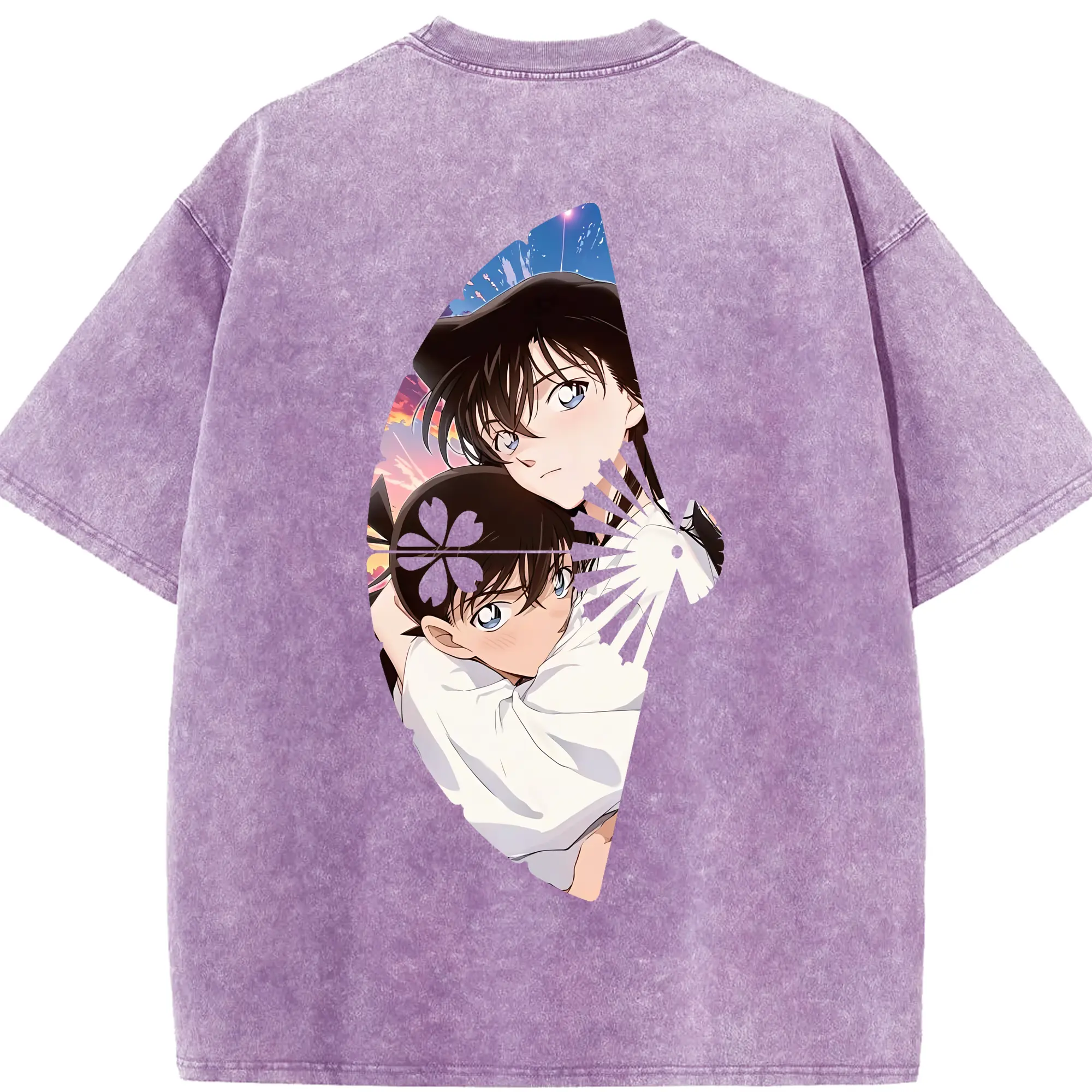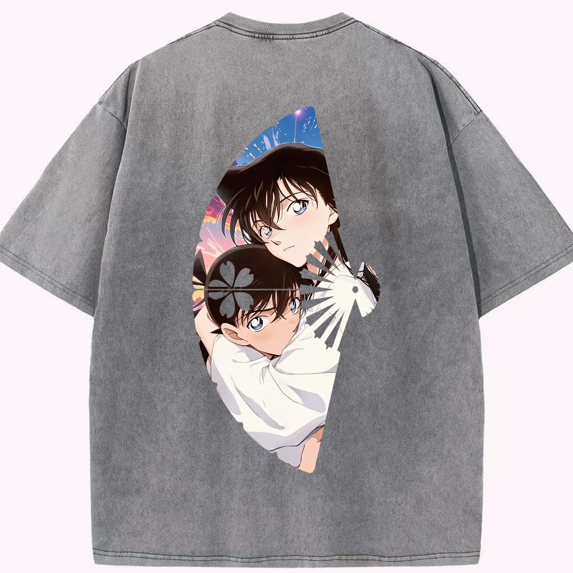 名探偵コナン グッズ 毛利 蘭 - 綿100% ヴィンテージ風 半袖Tシャツ ・ フロントプリント ・ 柔らか肌触り ・ 通気性 快適 ・ スポーツ カジュアル 外出用