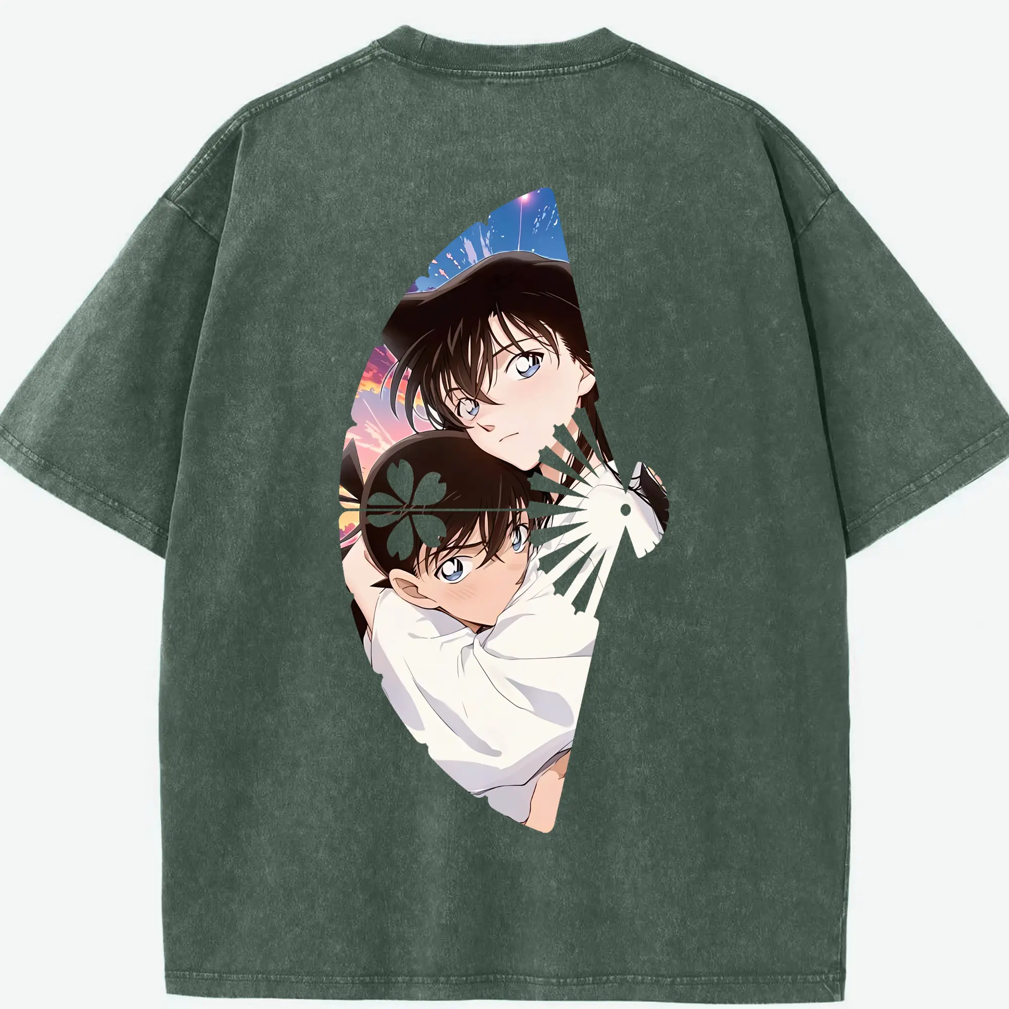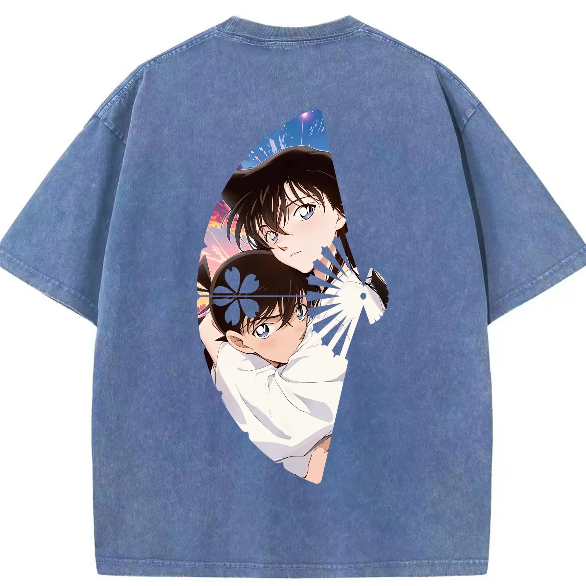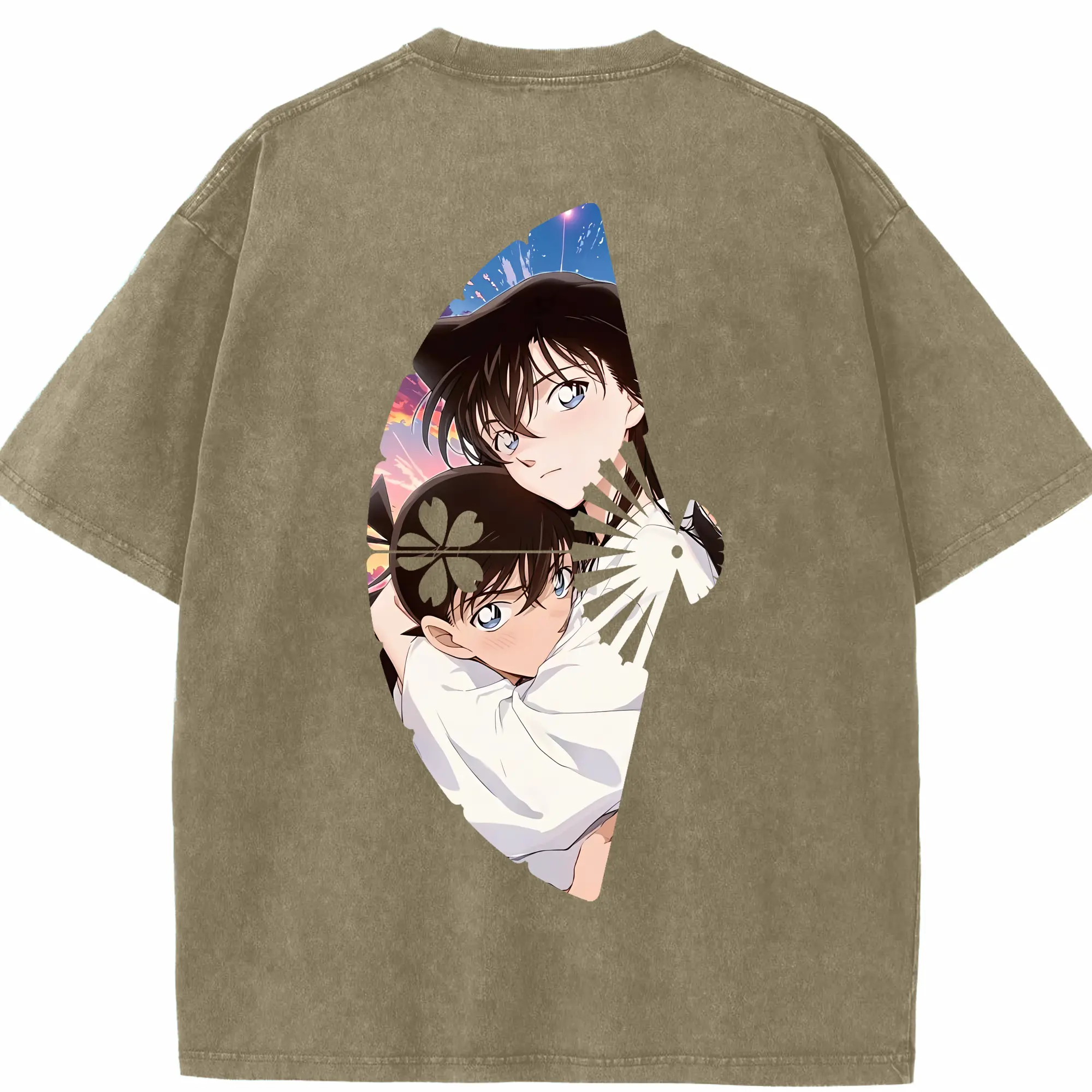 名探偵コナン グッズ 毛利 蘭 - 綿100% ヴィンテージ風 半袖Tシャツ ・ フロントプリント ・ 柔らか肌触り ・ 通気性 快適 ・ スポーツ カジュアル 外出用