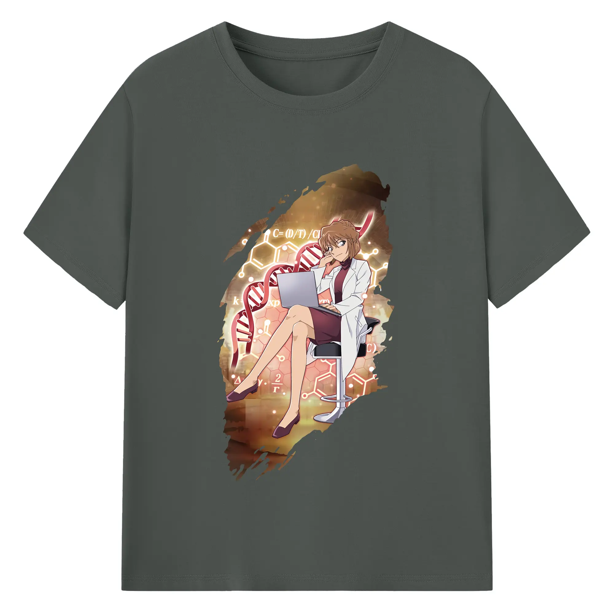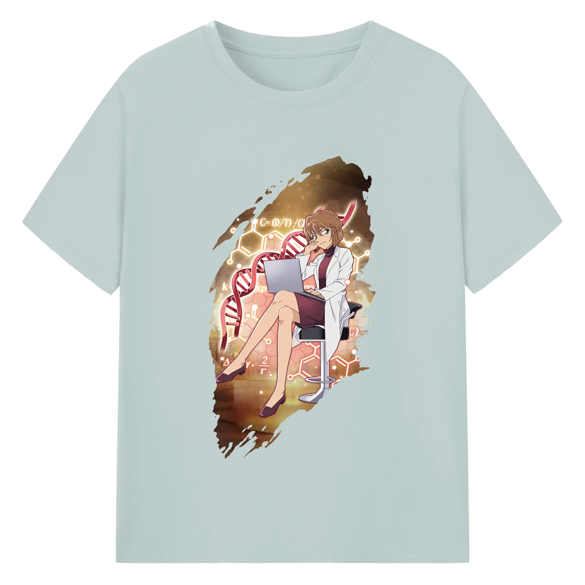 名探偵コナン グッズ 灰原 哀 - 綿100% ヴィンテージ風 半袖Tシャツ ・ フロントプリント ・ 柔らか肌触り ・ 通気性 快適 ・ スポーツ カジュアル 外出用