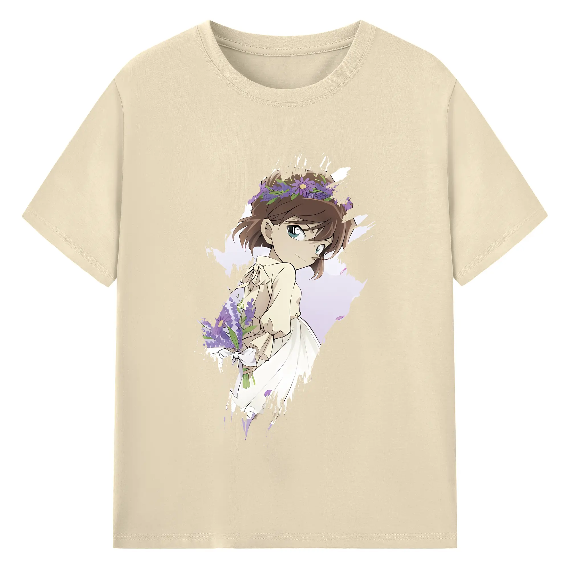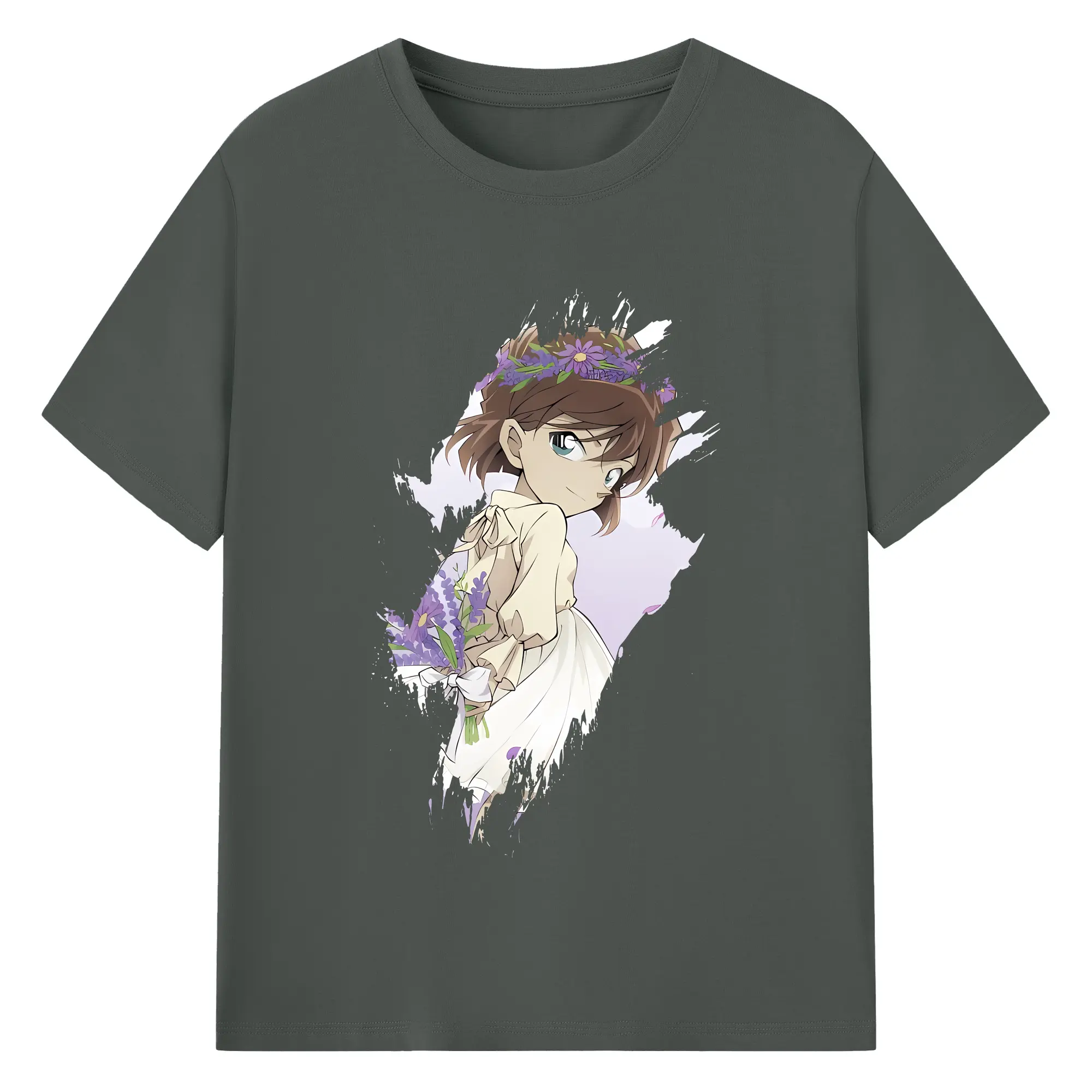 名探偵コナン グッズ 灰原 哀 - 綿100% ヴィンテージ風 半袖Tシャツ ・ フロントプリント ・ 柔らか肌触り ・ 通気性 快適 ・ スポーツ カジュアル 外出用
