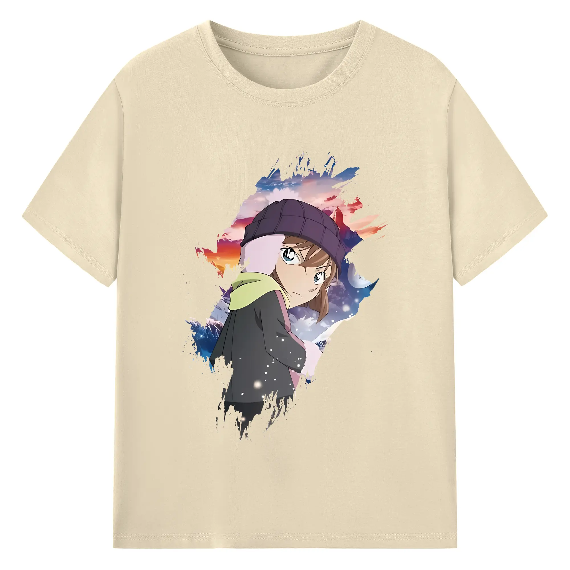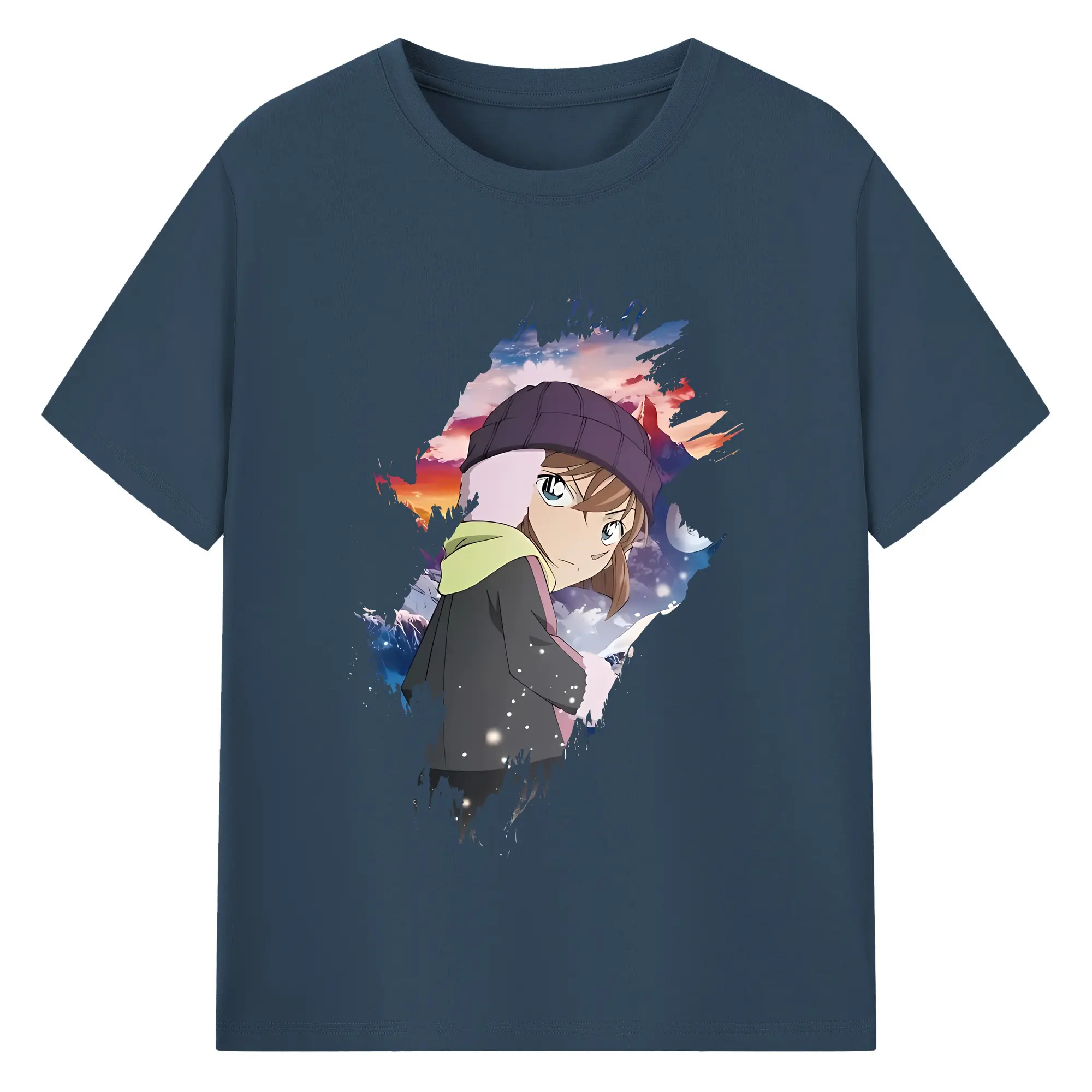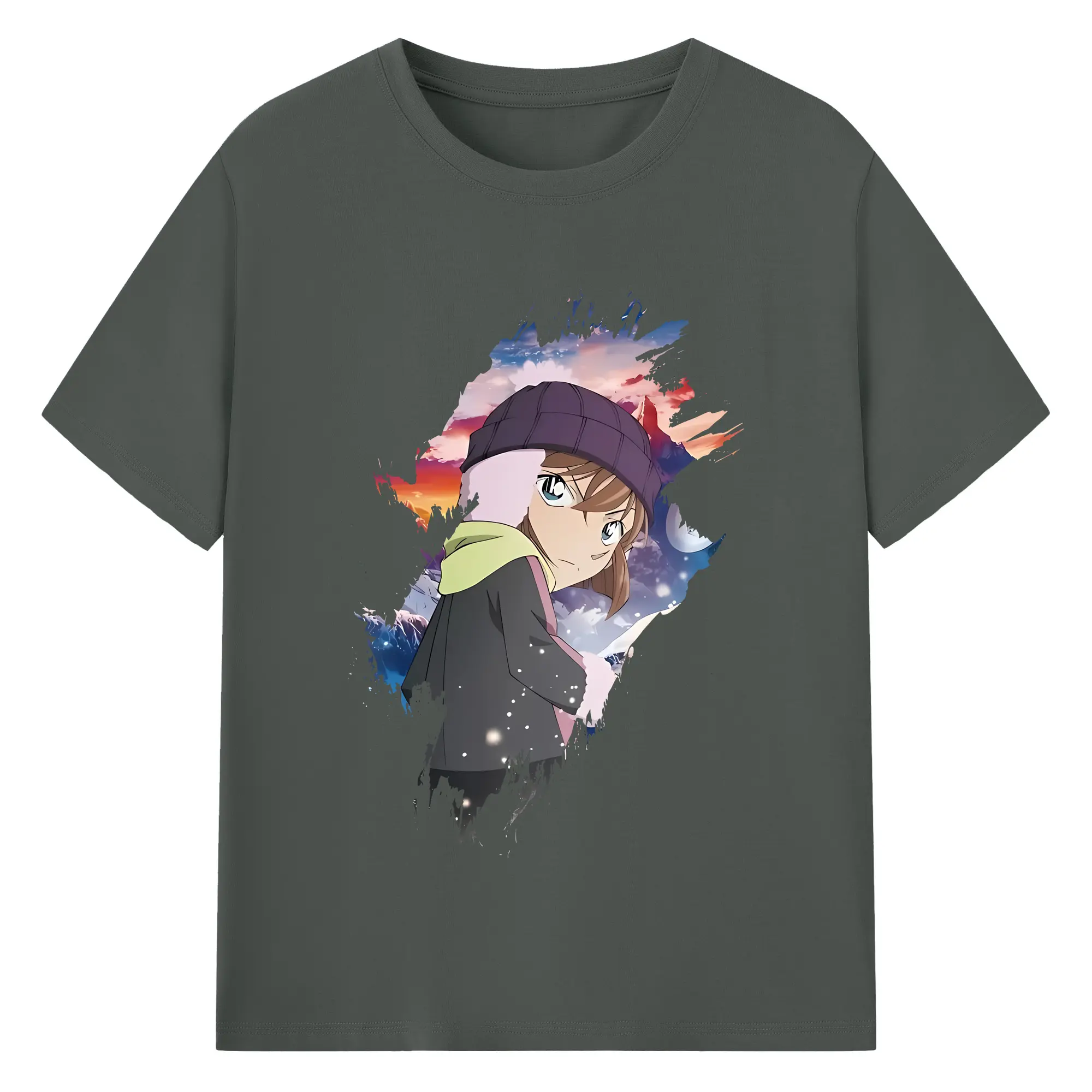 名探偵コナン グッズ 灰原 哀 - 綿100% ヴィンテージ風 半袖Tシャツ ・ フロントプリント ・ 柔らか肌触り ・ 通気性 快適 ・ スポーツ カジュアル 外出用