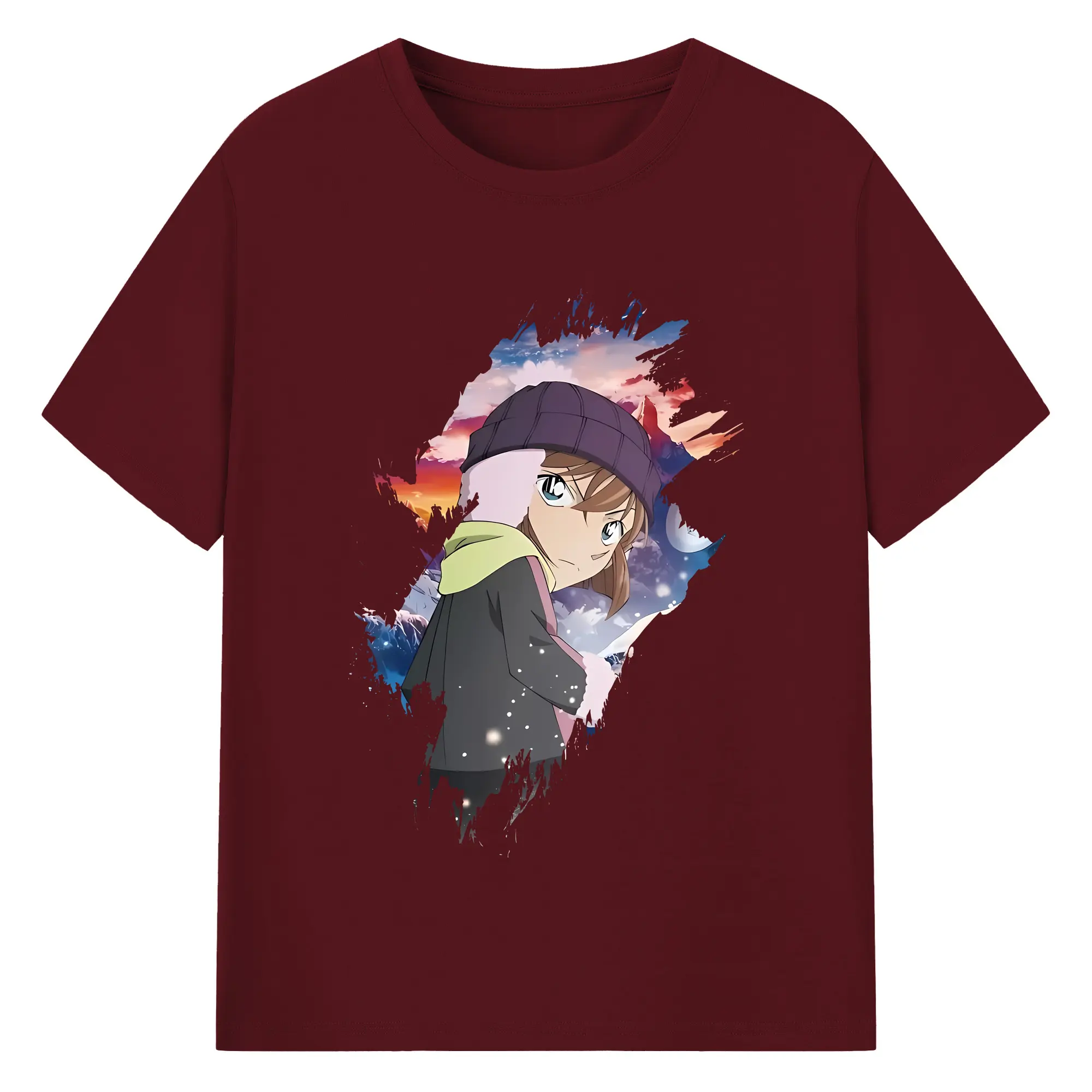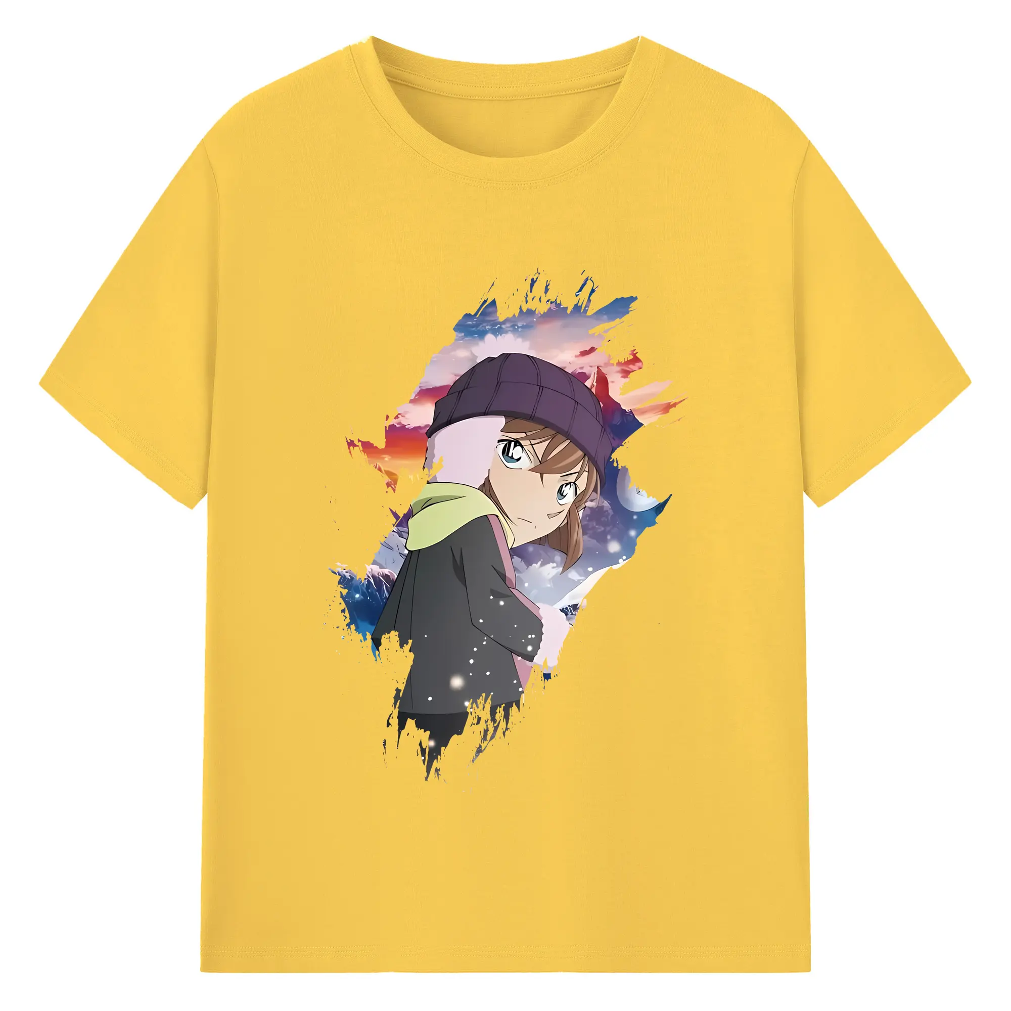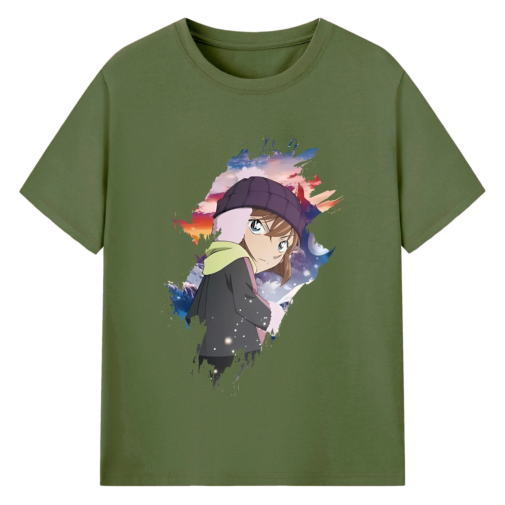 名探偵コナン グッズ 灰原 哀 - 綿100% ヴィンテージ風 半袖Tシャツ ・ フロントプリント ・ 柔らか肌触り ・ 通気性 快適 ・ スポーツ カジュアル 外出用