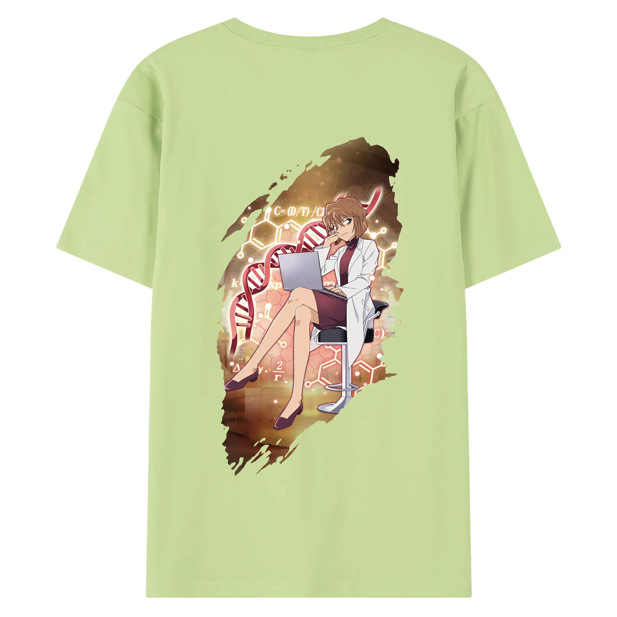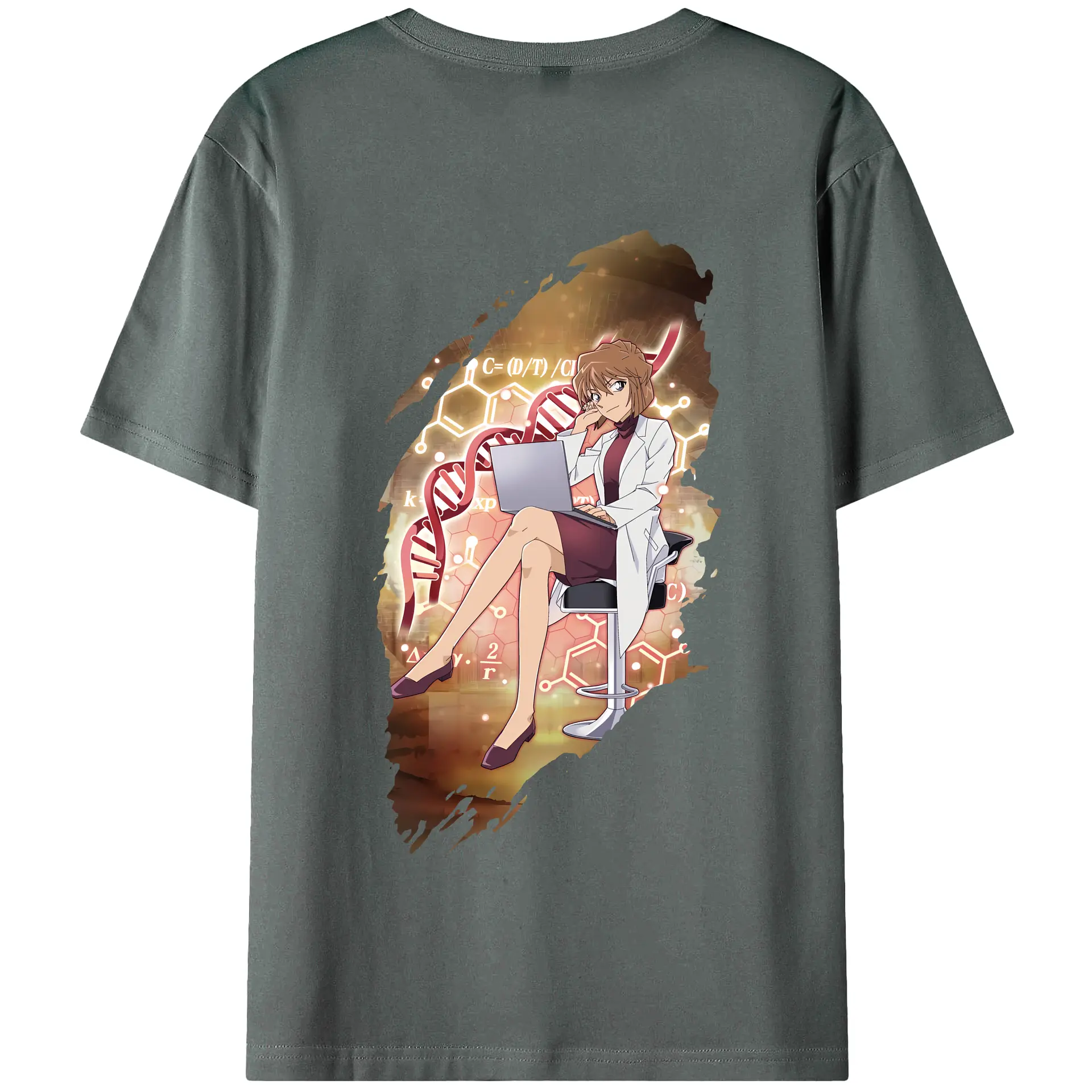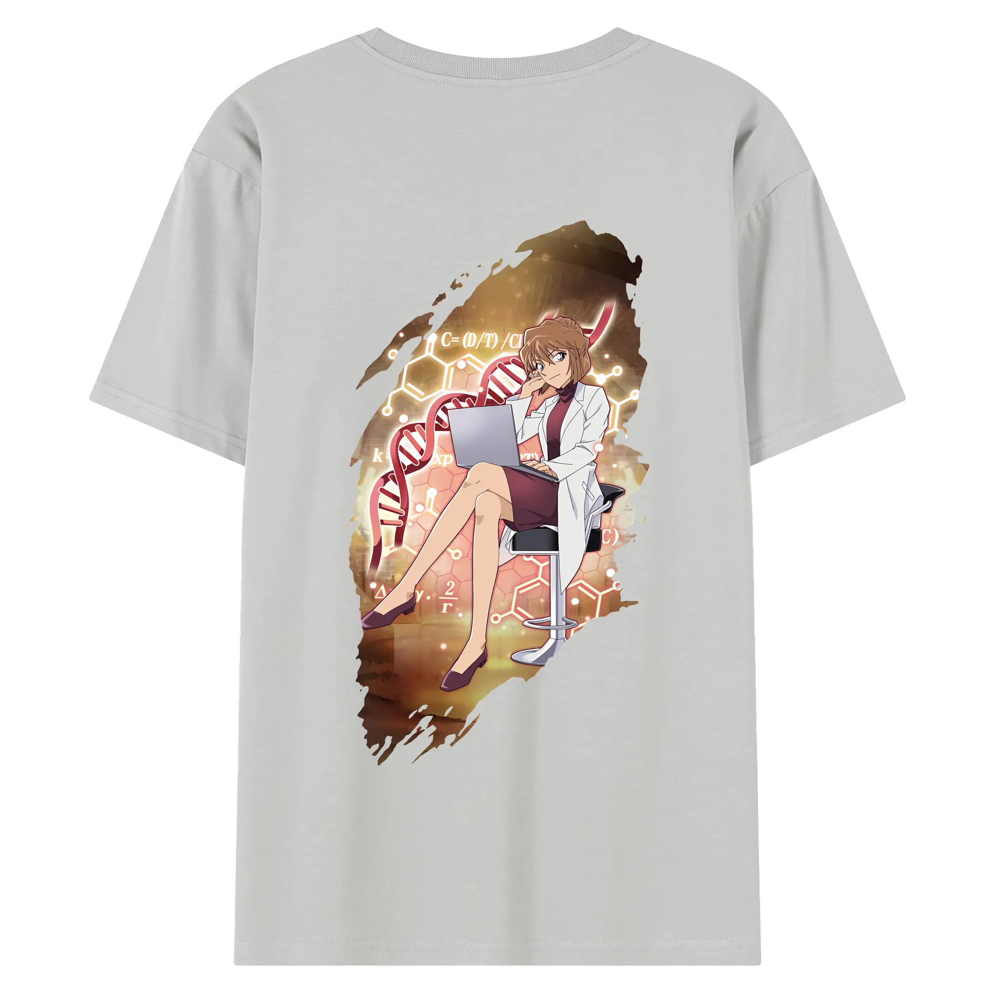 名探偵コナン グッズ 灰原 哀 - 綿100% ヴィンテージ風 半袖Tシャツ ・ 背面プリント ・ 柔らか肌触り ・ 通気性 快適 ・ スポーツ カジュアル 外出用