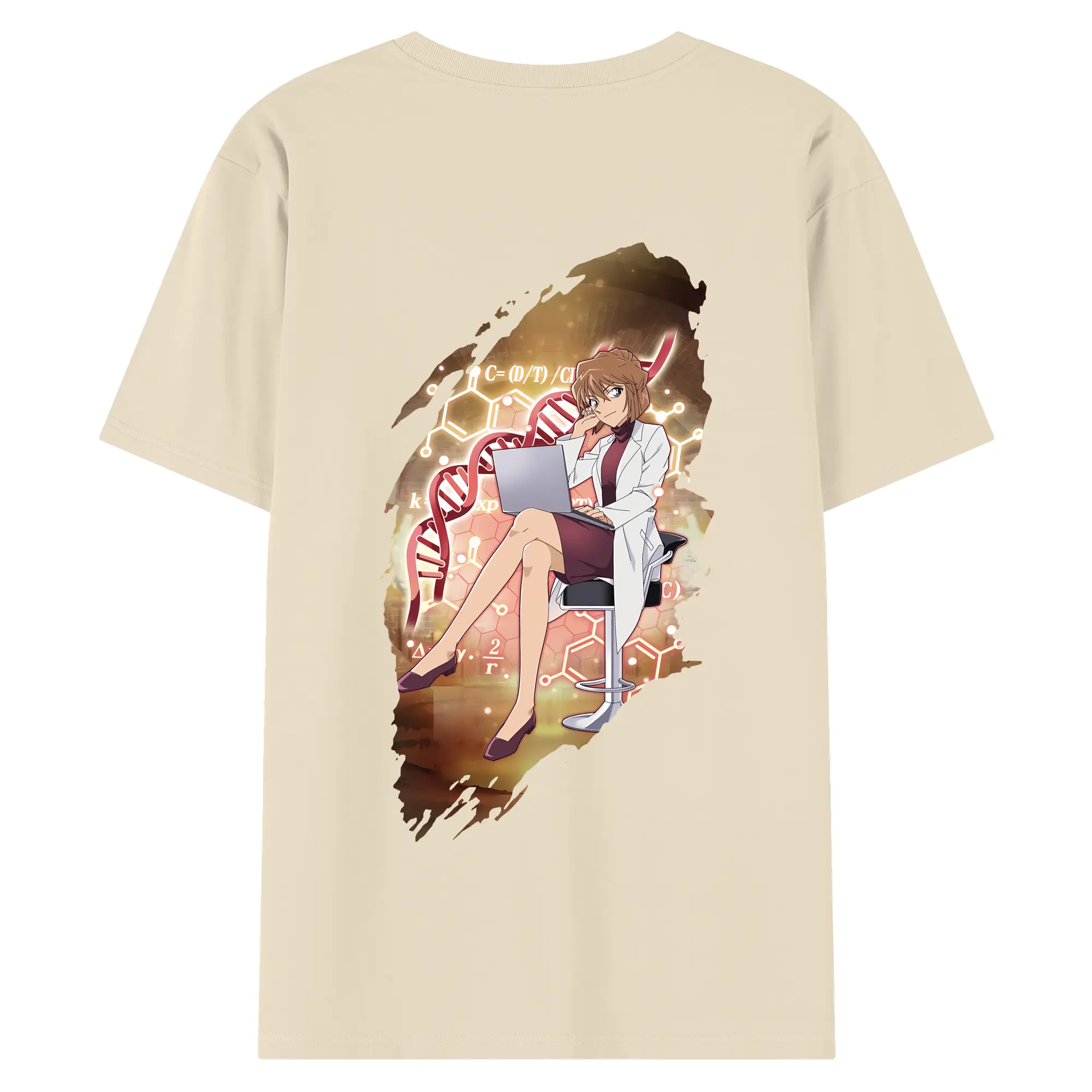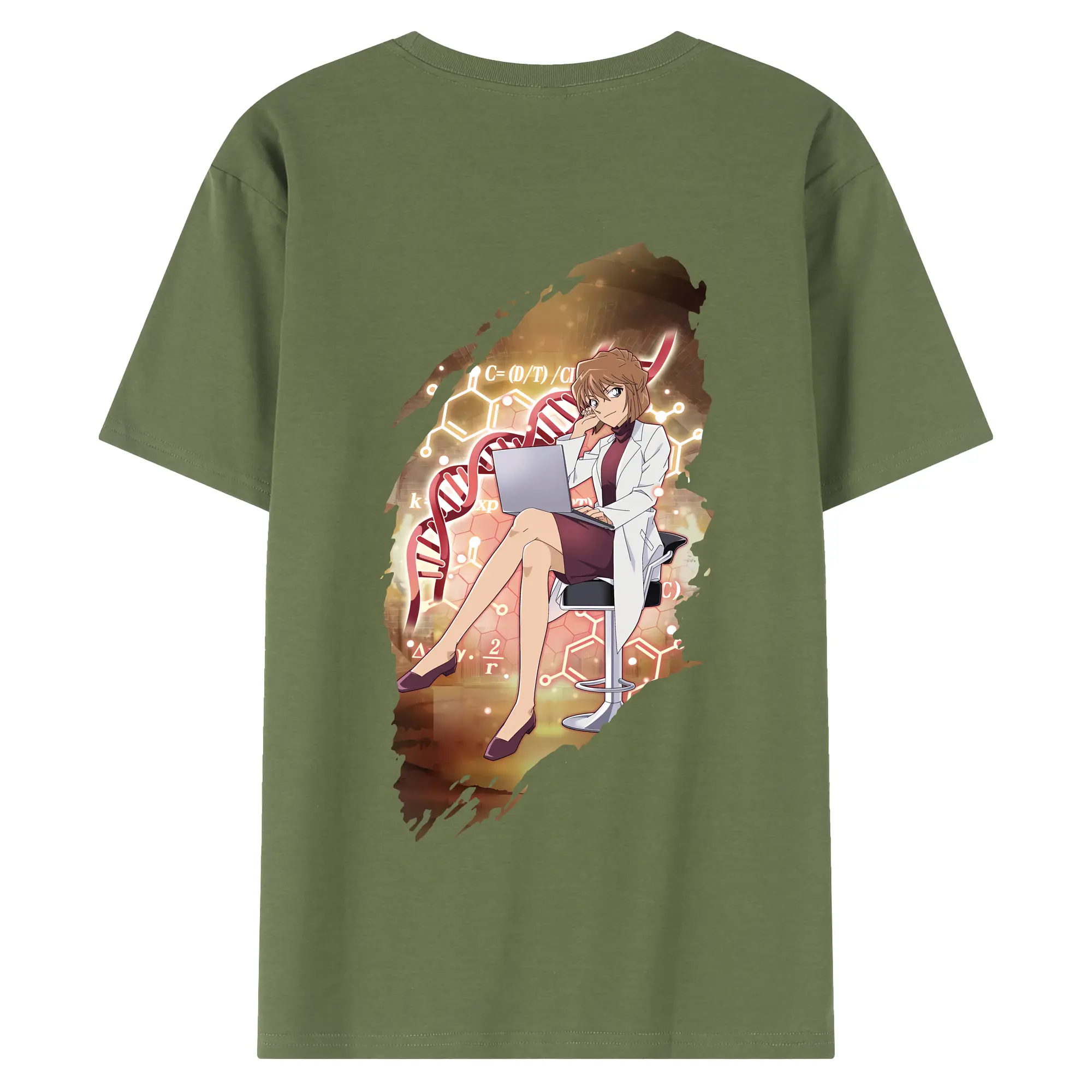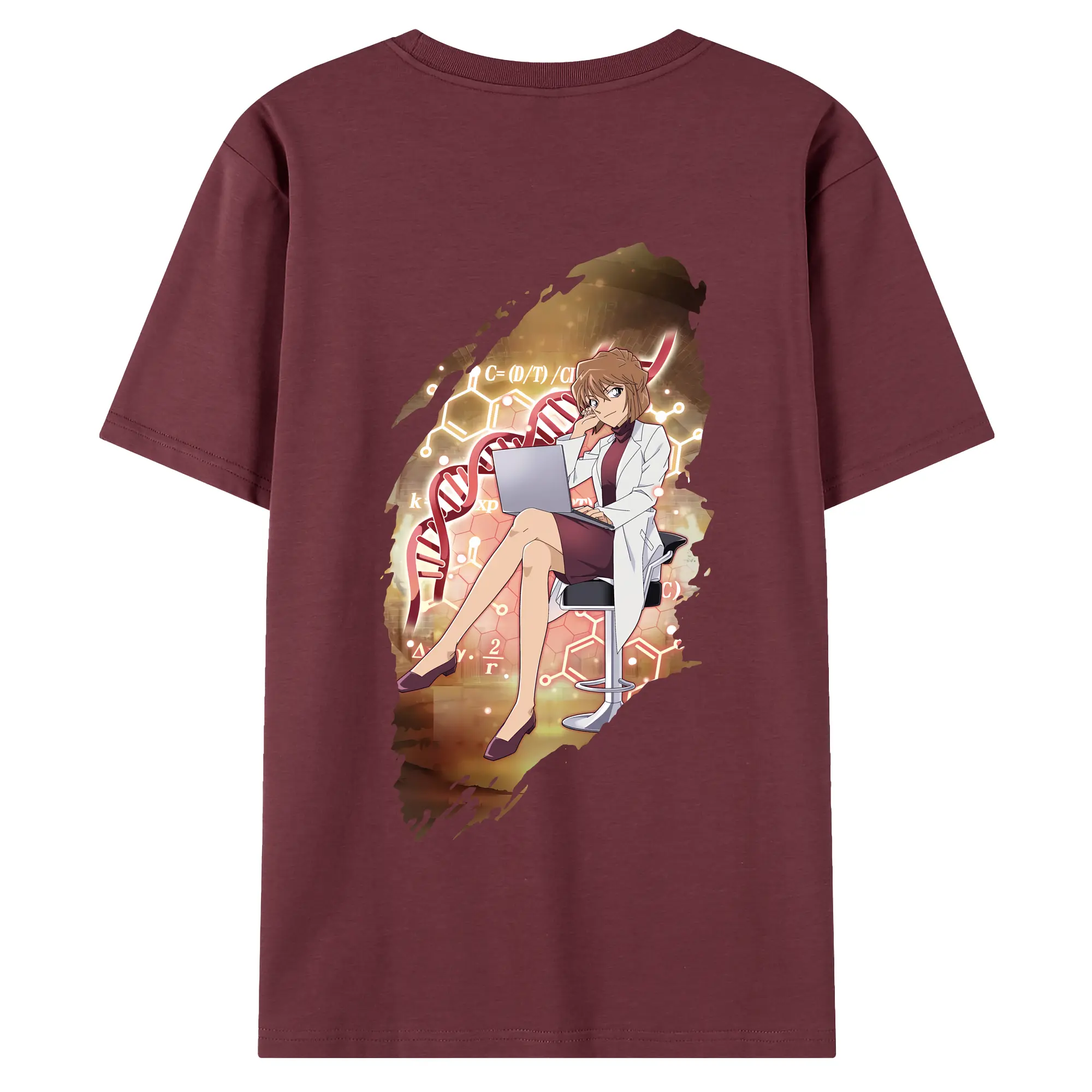 名探偵コナン グッズ 灰原 哀 - 綿100% ヴィンテージ風 半袖Tシャツ ・ 背面プリント ・ 柔らか肌触り ・ 通気性 快適 ・ スポーツ カジュアル 外出用