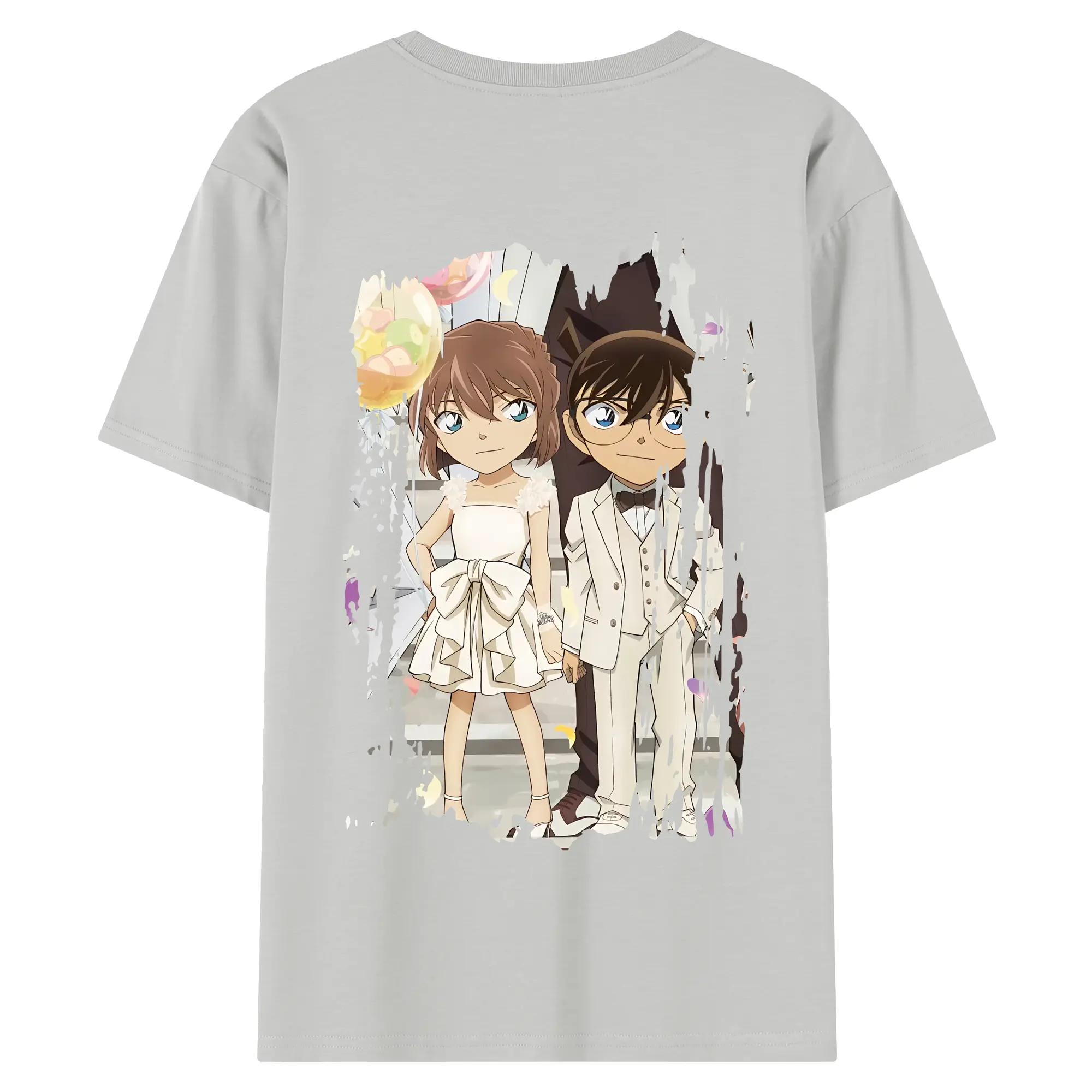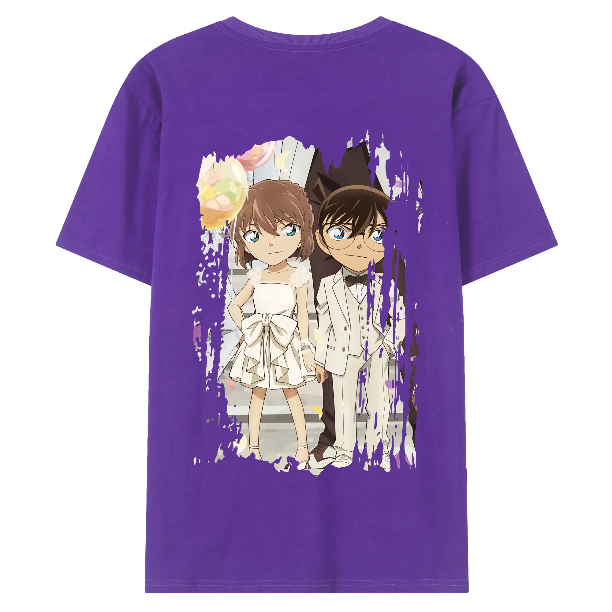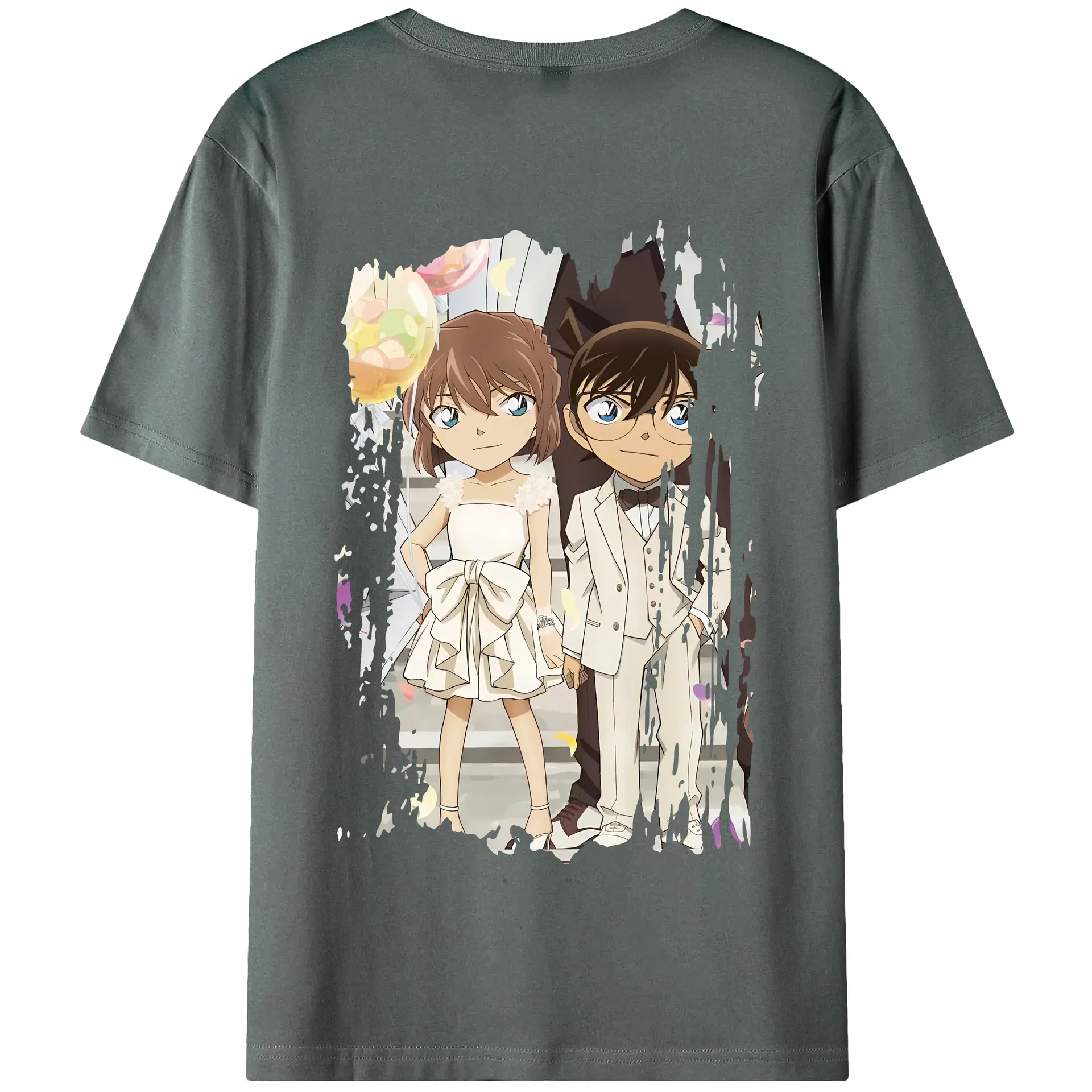 名探偵コナン グッズ 灰原 哀 - 綿100% ヴィンテージ風 半袖Tシャツ ・ 背面プリント ・ 柔らか肌触り ・ 通気性 快適 ・ スポーツ カジュアル 外出用