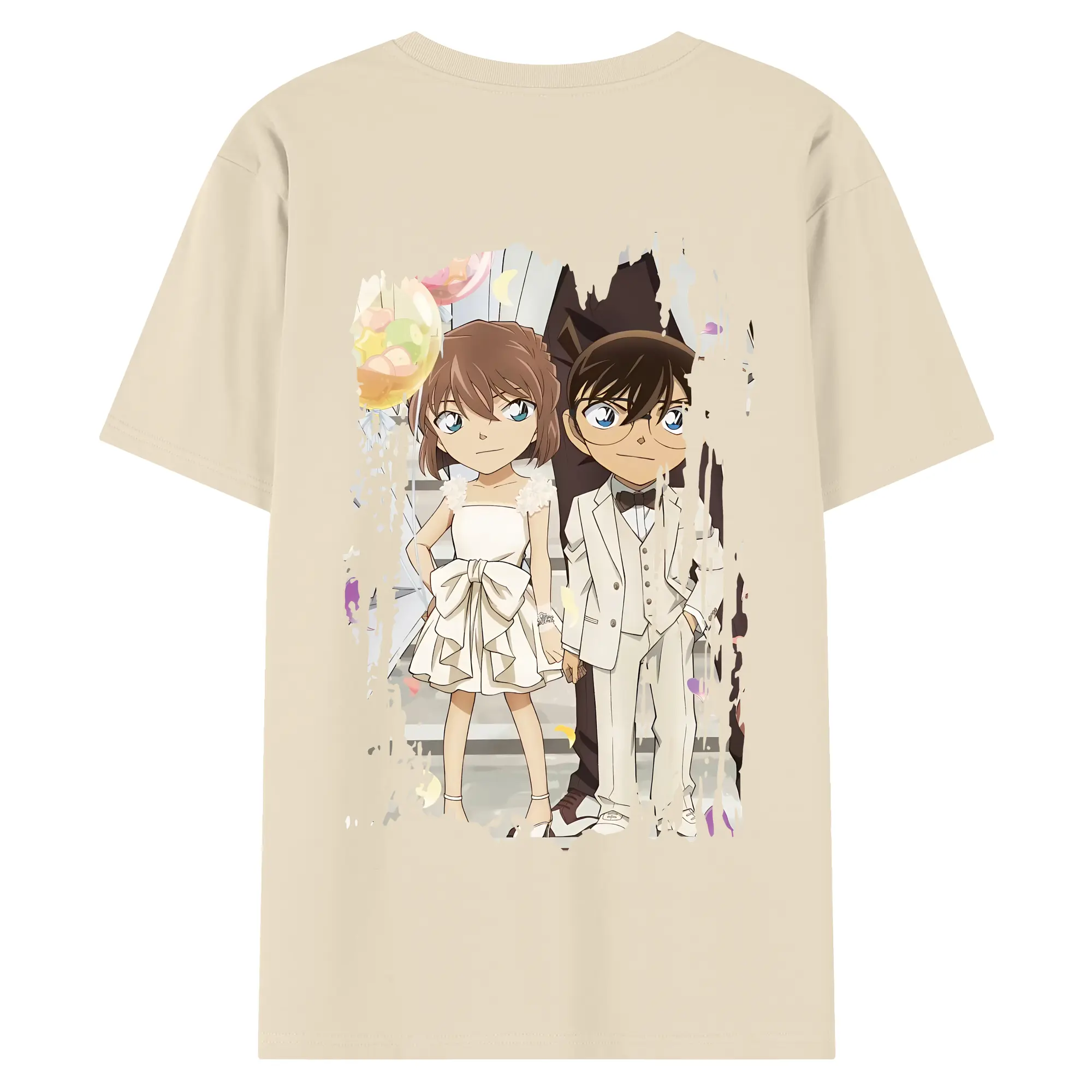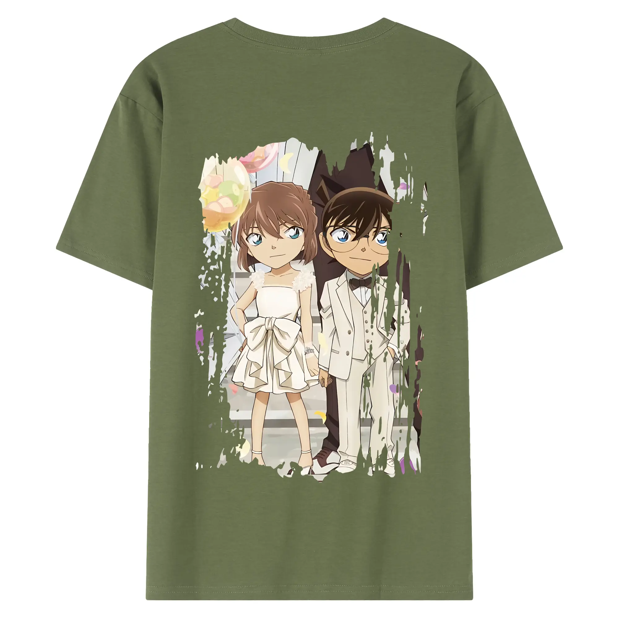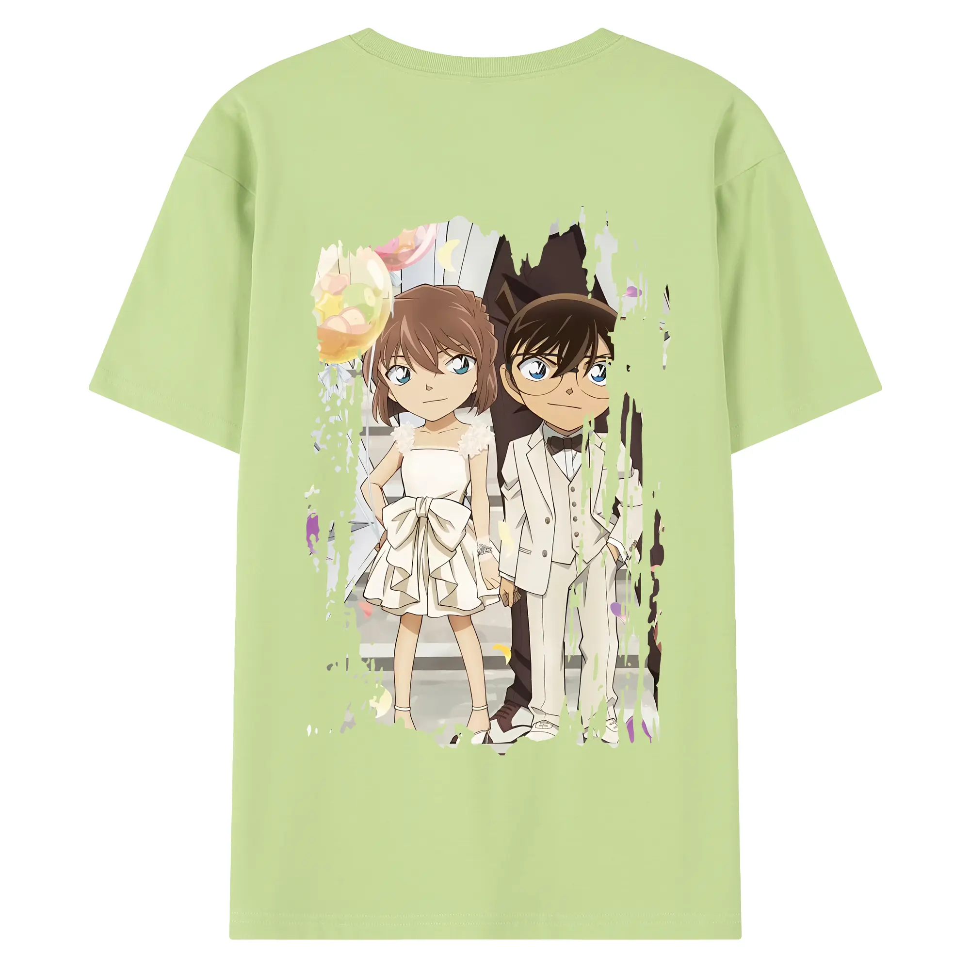 名探偵コナン グッズ 灰原 哀 - 綿100% ヴィンテージ風 半袖Tシャツ ・ 背面プリント ・ 柔らか肌触り ・ 通気性 快適 ・ スポーツ カジュアル 外出用