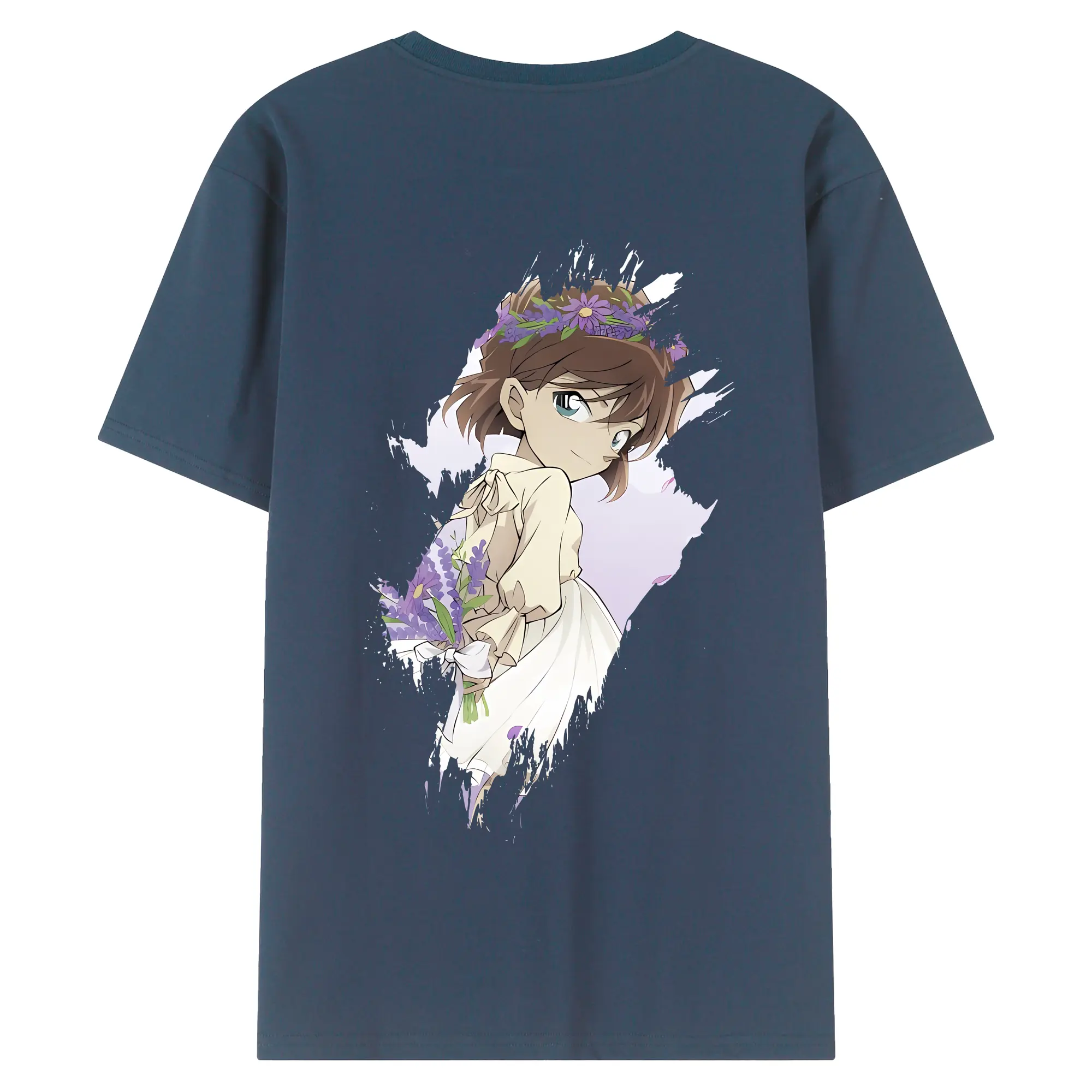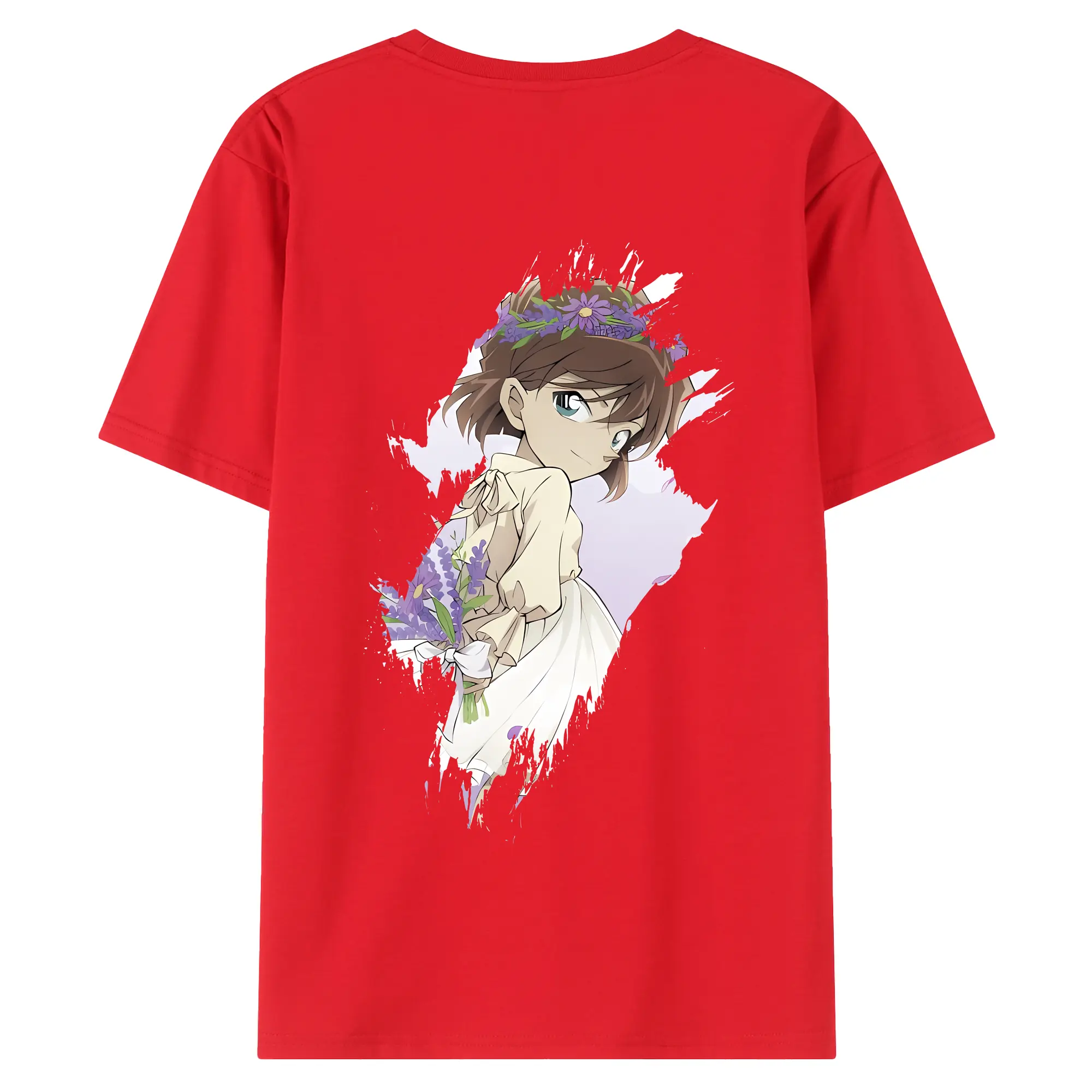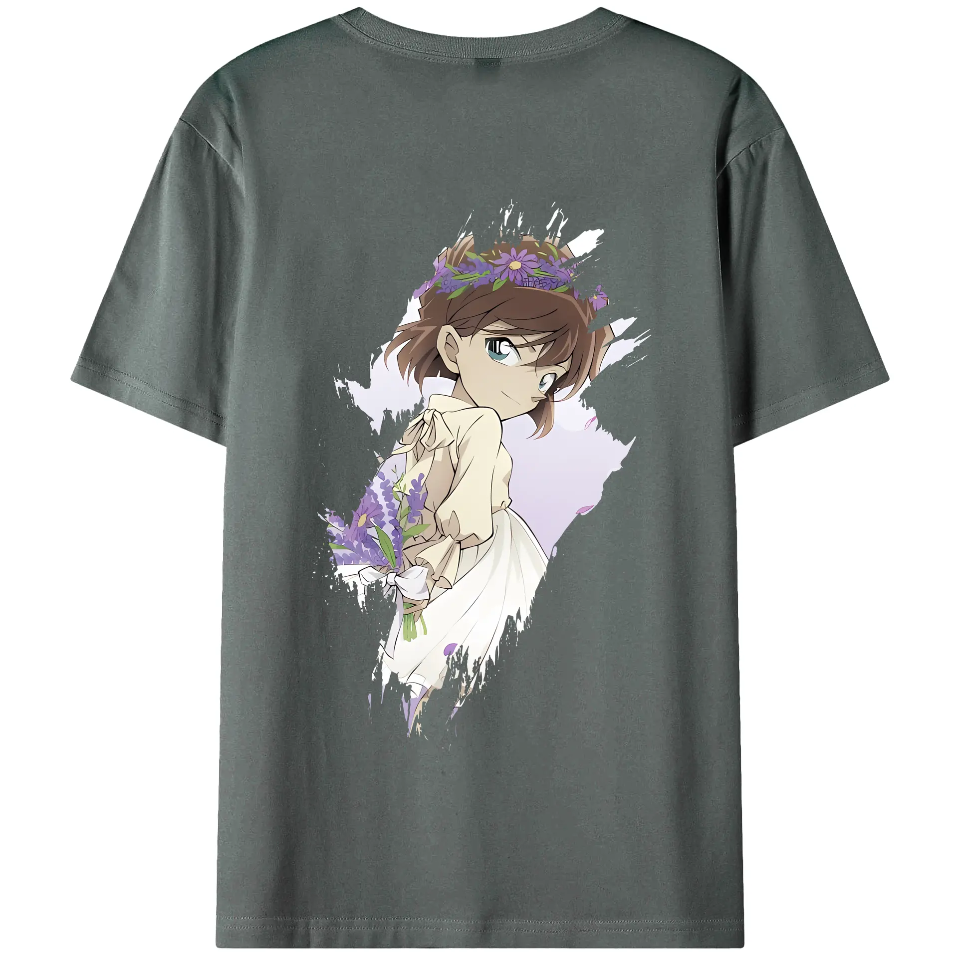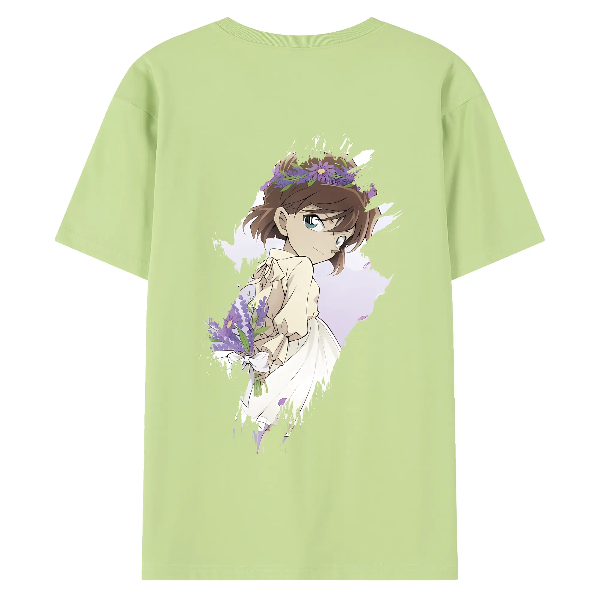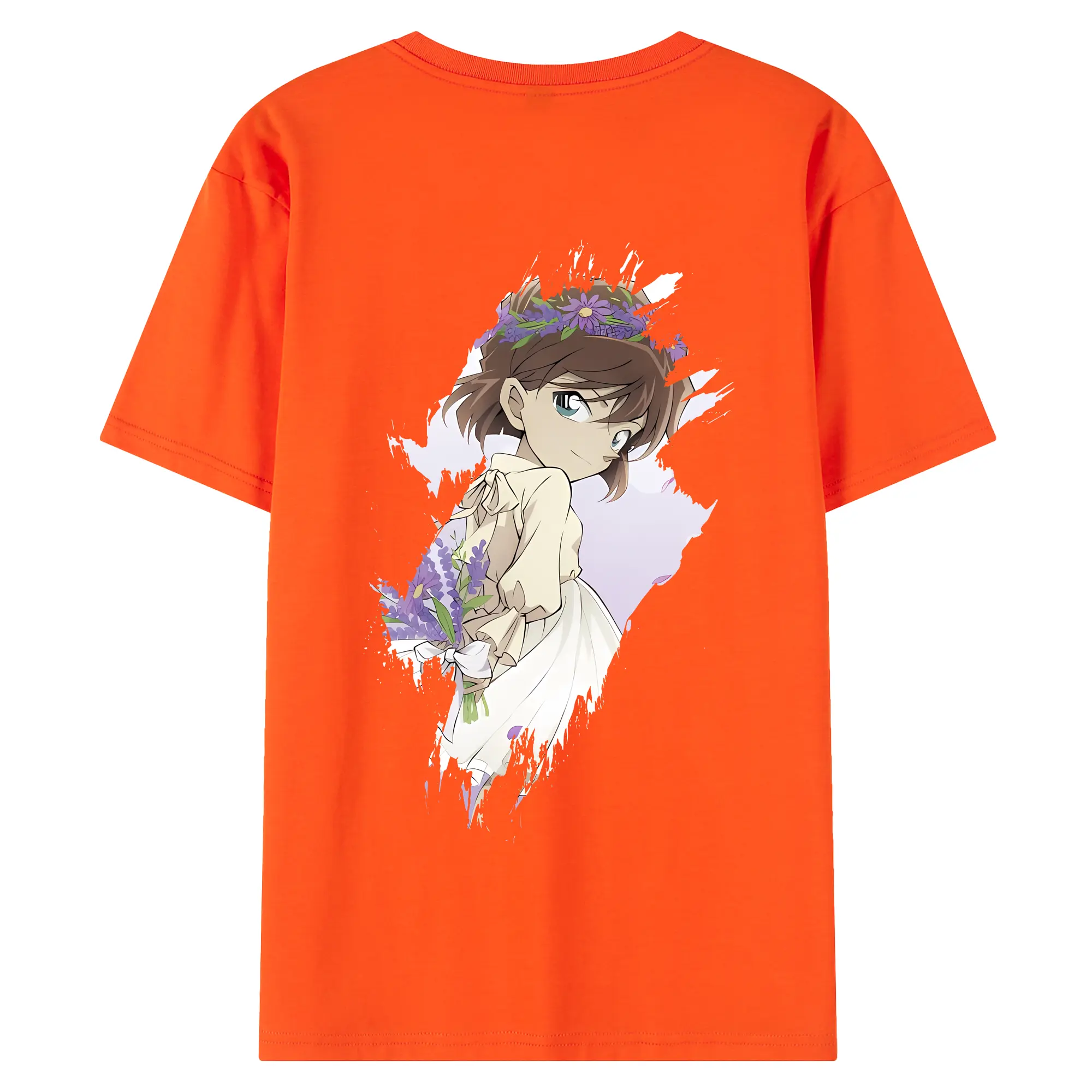 名探偵コナン グッズ 灰原 哀 - 綿100% ヴィンテージ風 半袖Tシャツ ・ 背面プリント ・ 柔らか肌触り ・ 通気性 快適 ・ スポーツ カジュアル 外出用