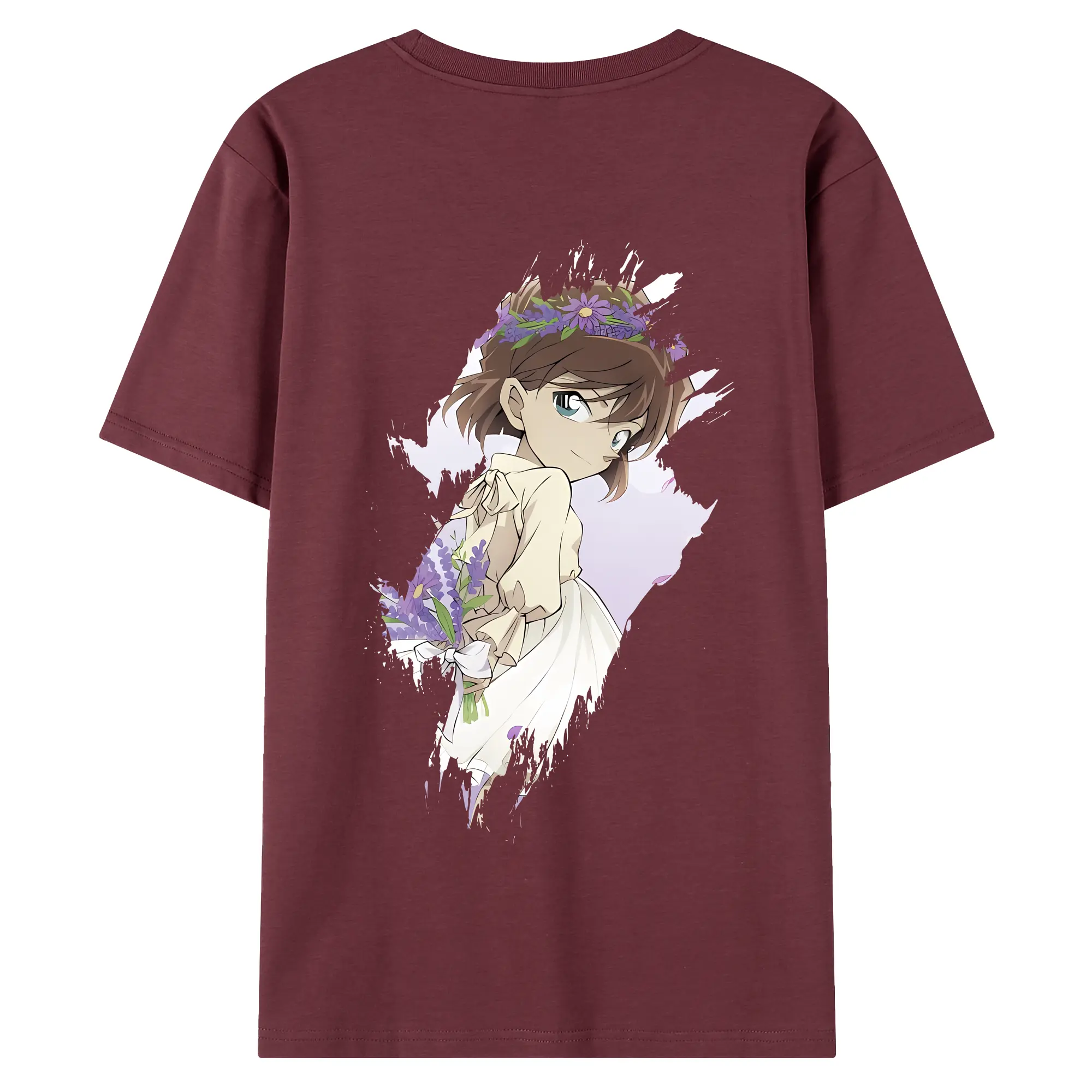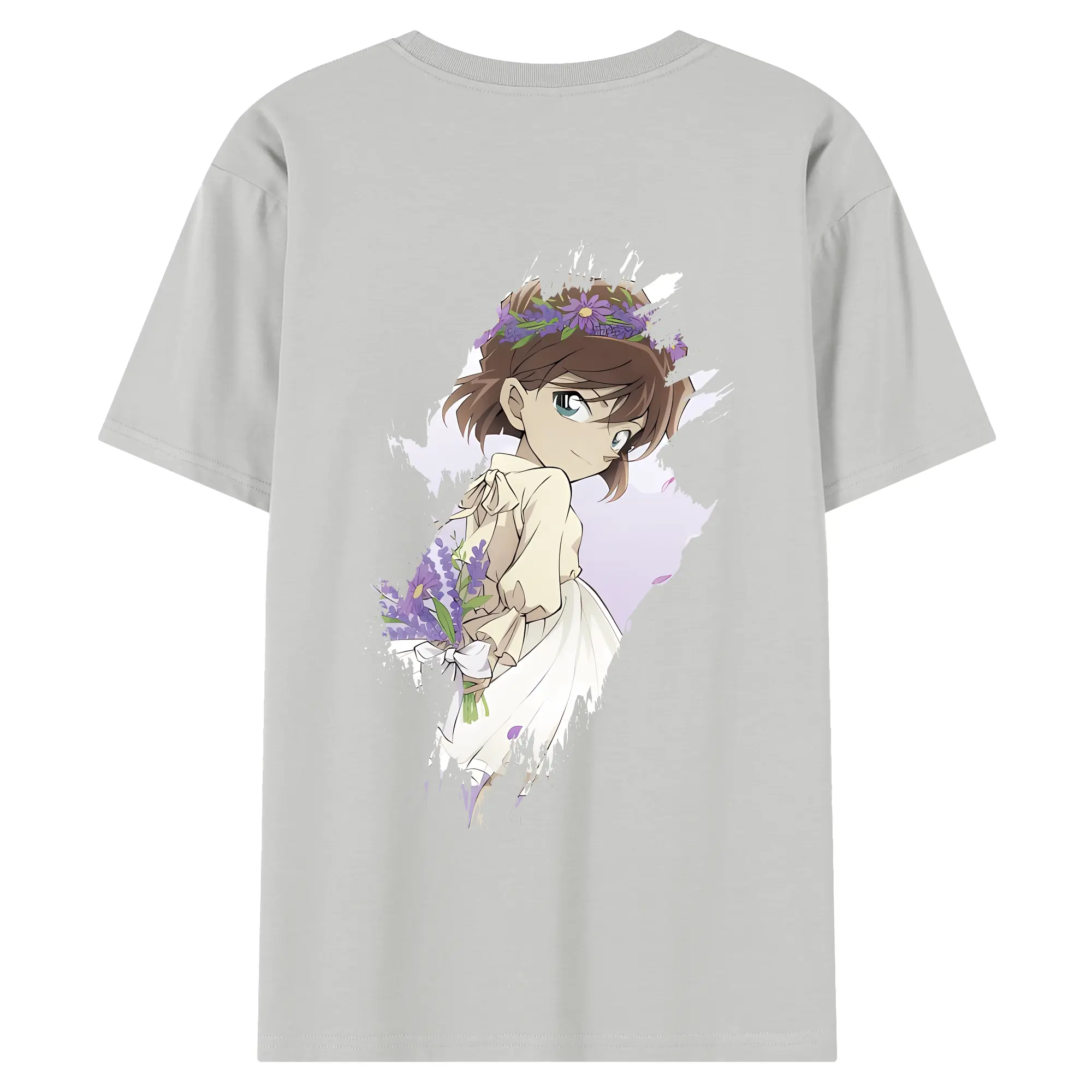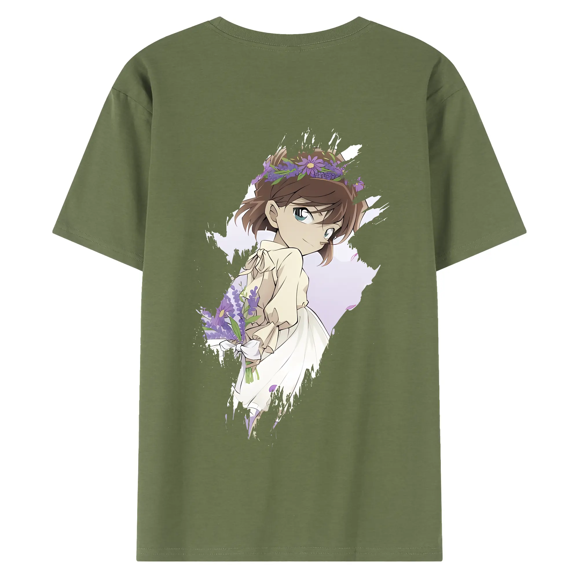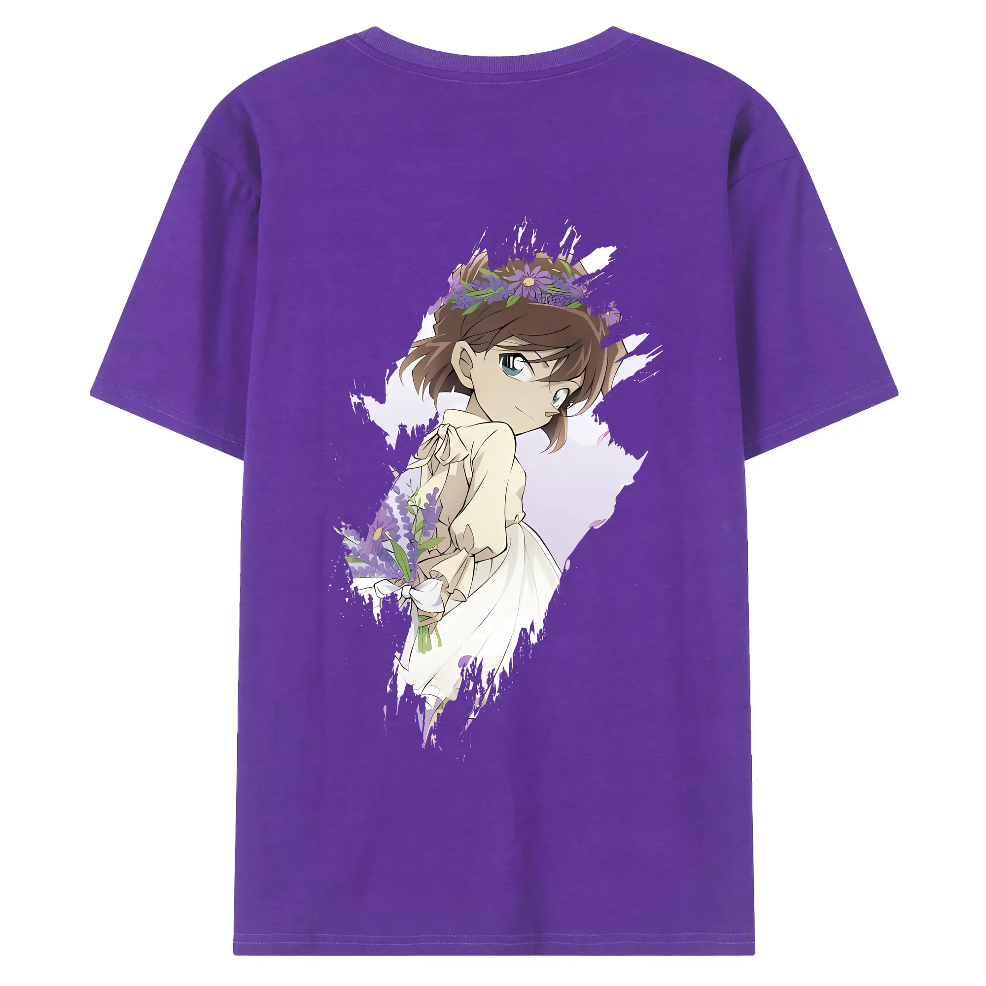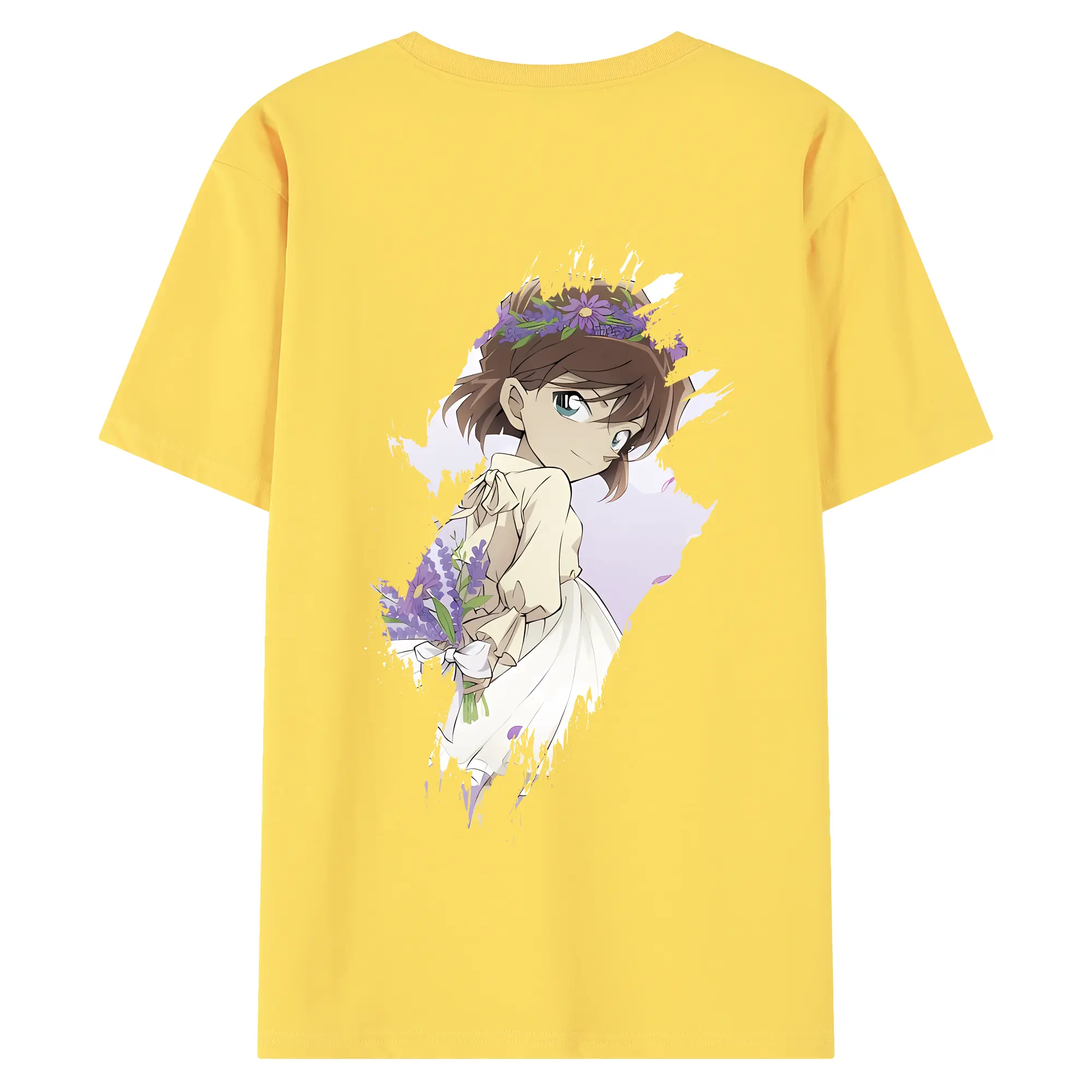 名探偵コナン グッズ 灰原 哀 - 綿100% ヴィンテージ風 半袖Tシャツ ・ 背面プリント ・ 柔らか肌触り ・ 通気性 快適 ・ スポーツ カジュアル 外出用