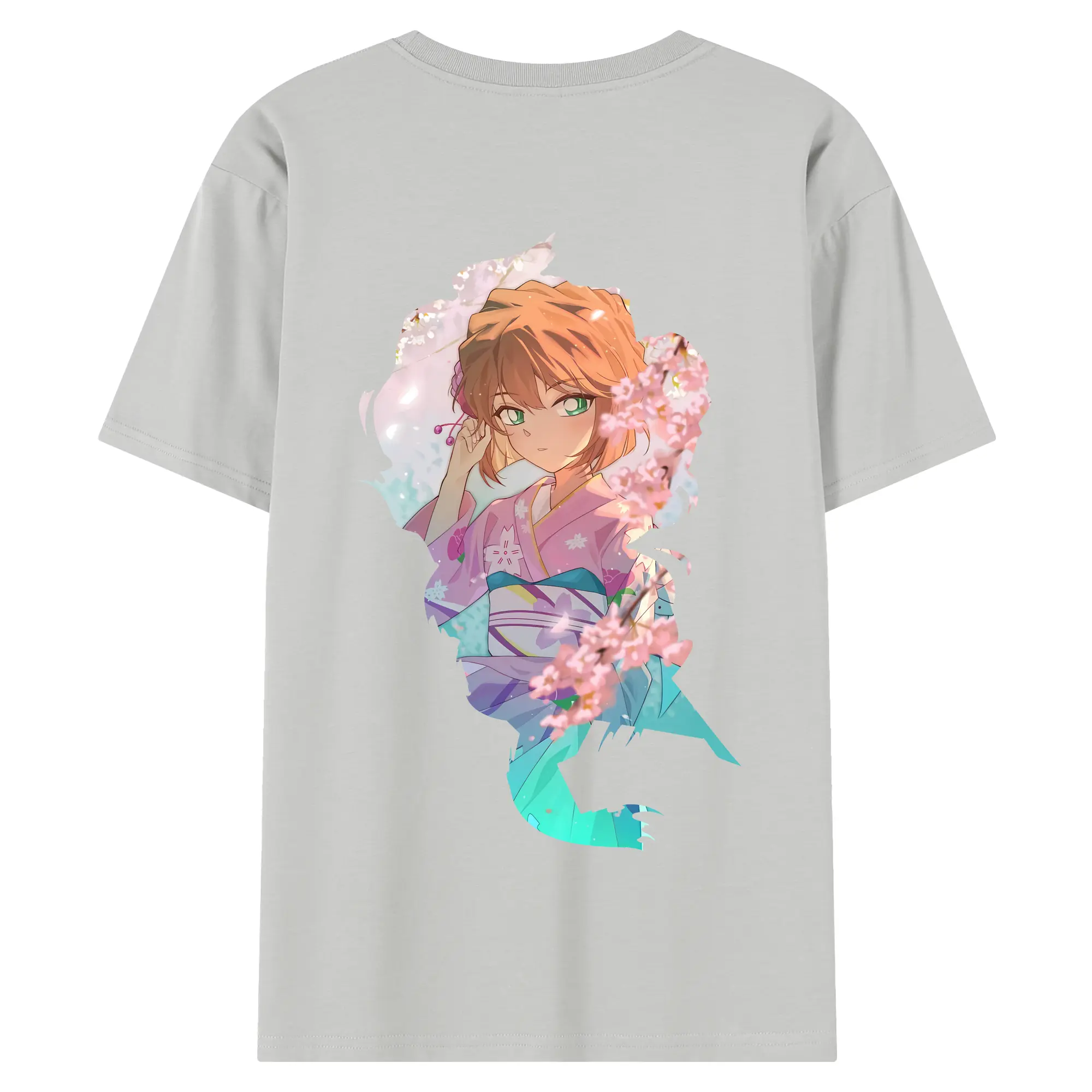名探偵コナン グッズ 灰原 哀 - 綿100% ヴィンテージ風 半袖Tシャツ ・ 背面プリント ・ 柔らか肌触り ・ 通気性 快適 ・ スポーツ カジュアル 外出用