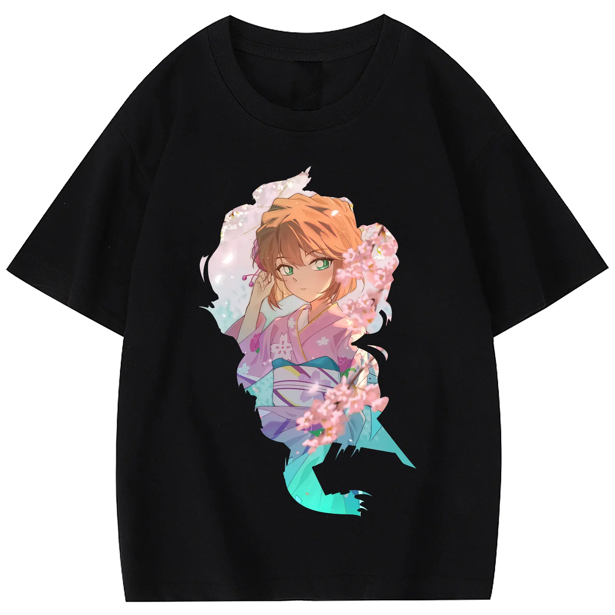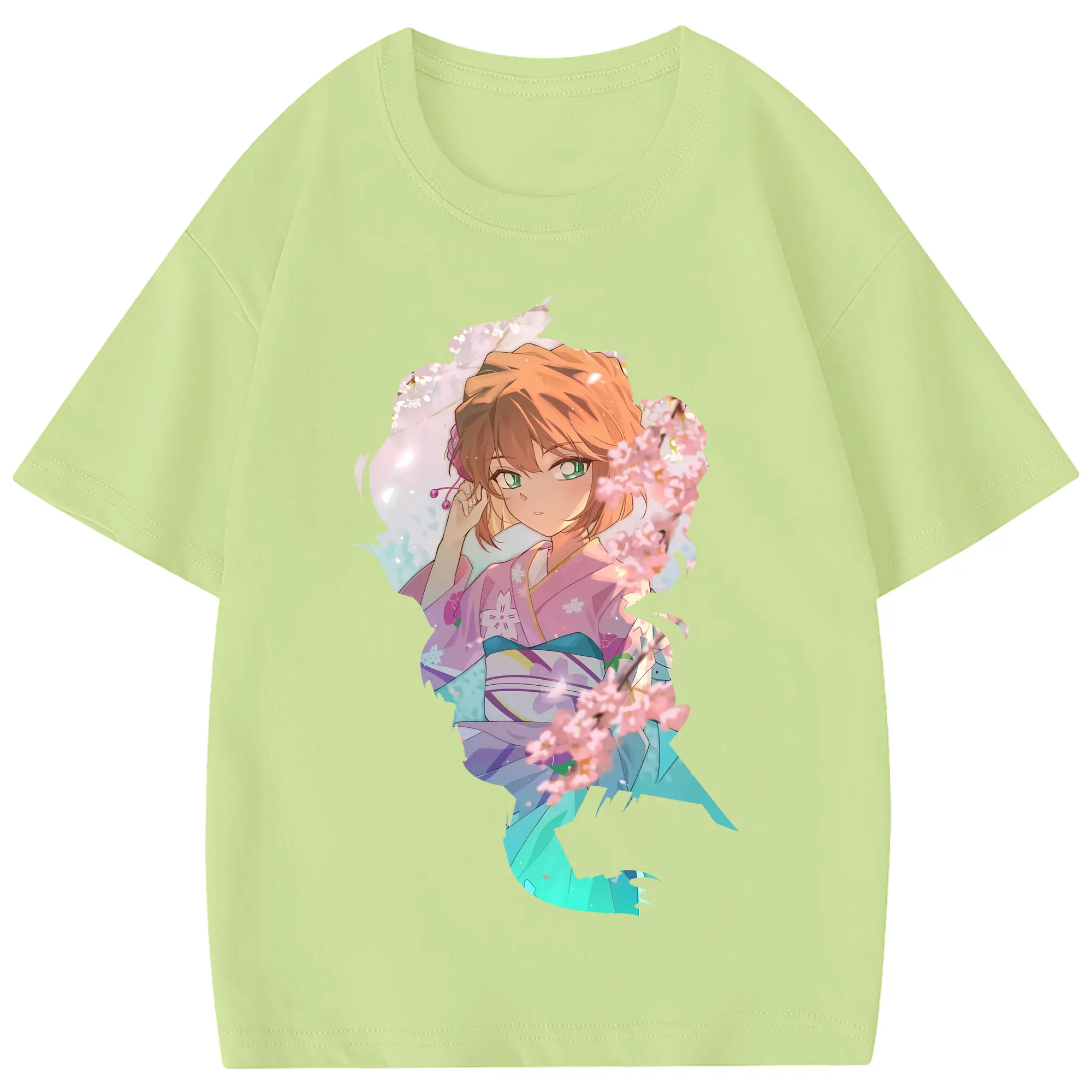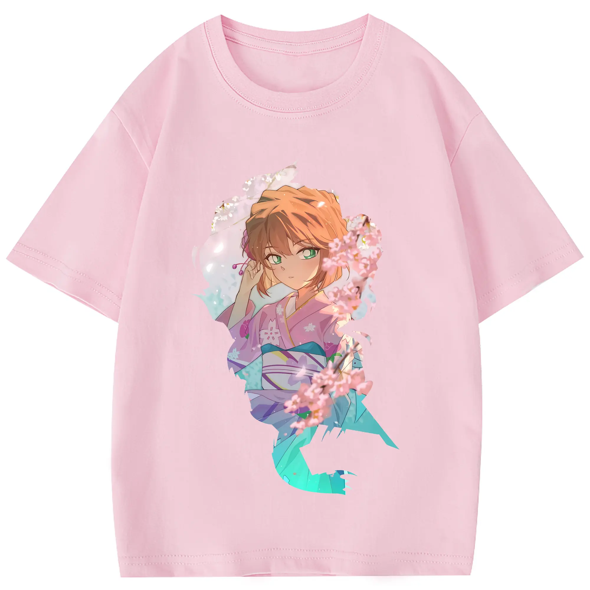 名探偵コナン グッズ 灰原 哀 - 綿100% 半袖Tシャツ ・ フロントプリント ・ 快適 通気性 ・ 日常使い 散歩 スポーツ用