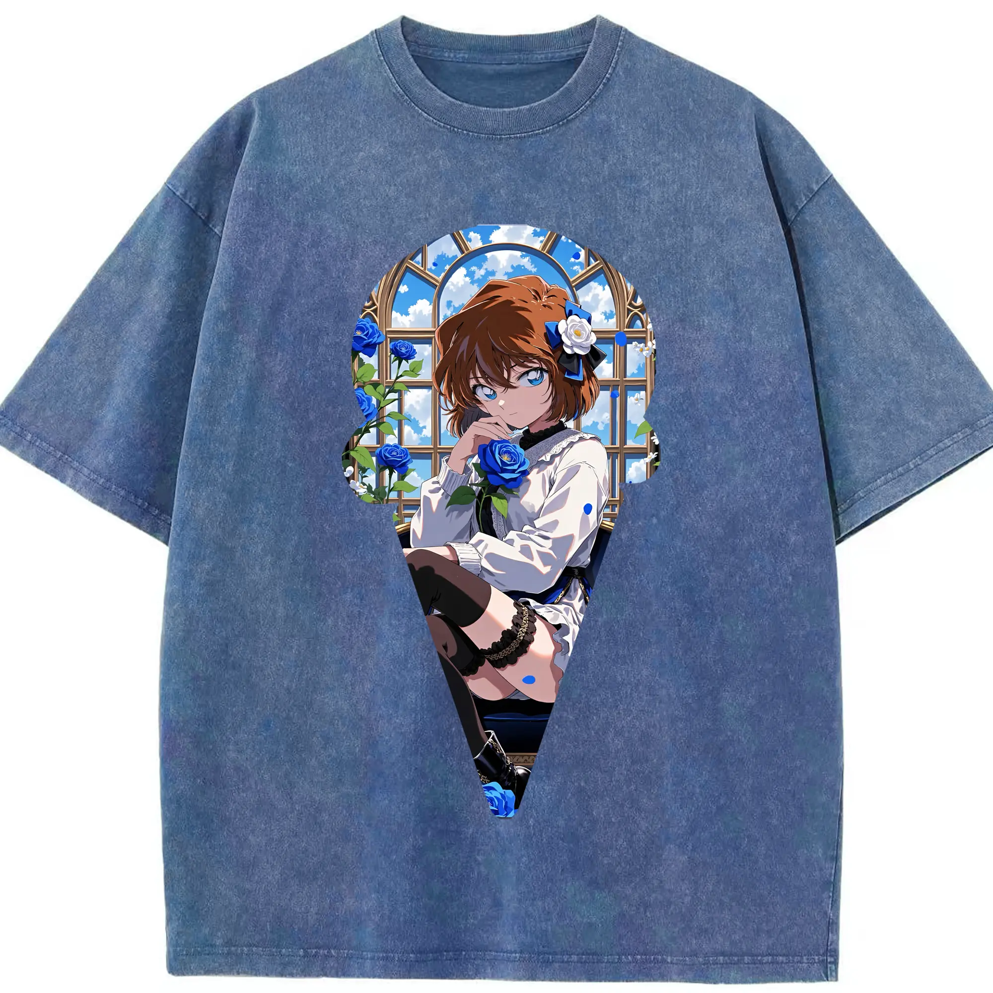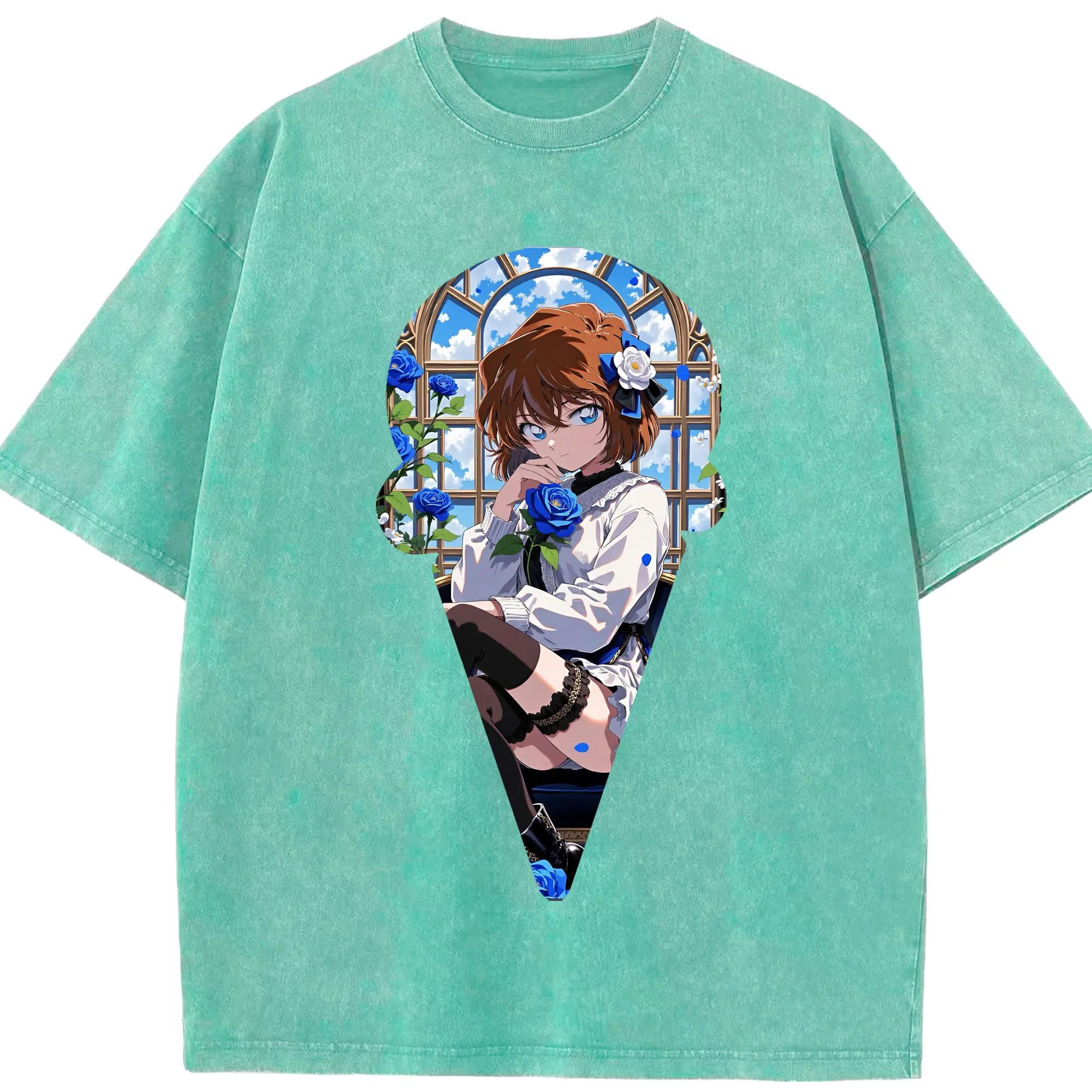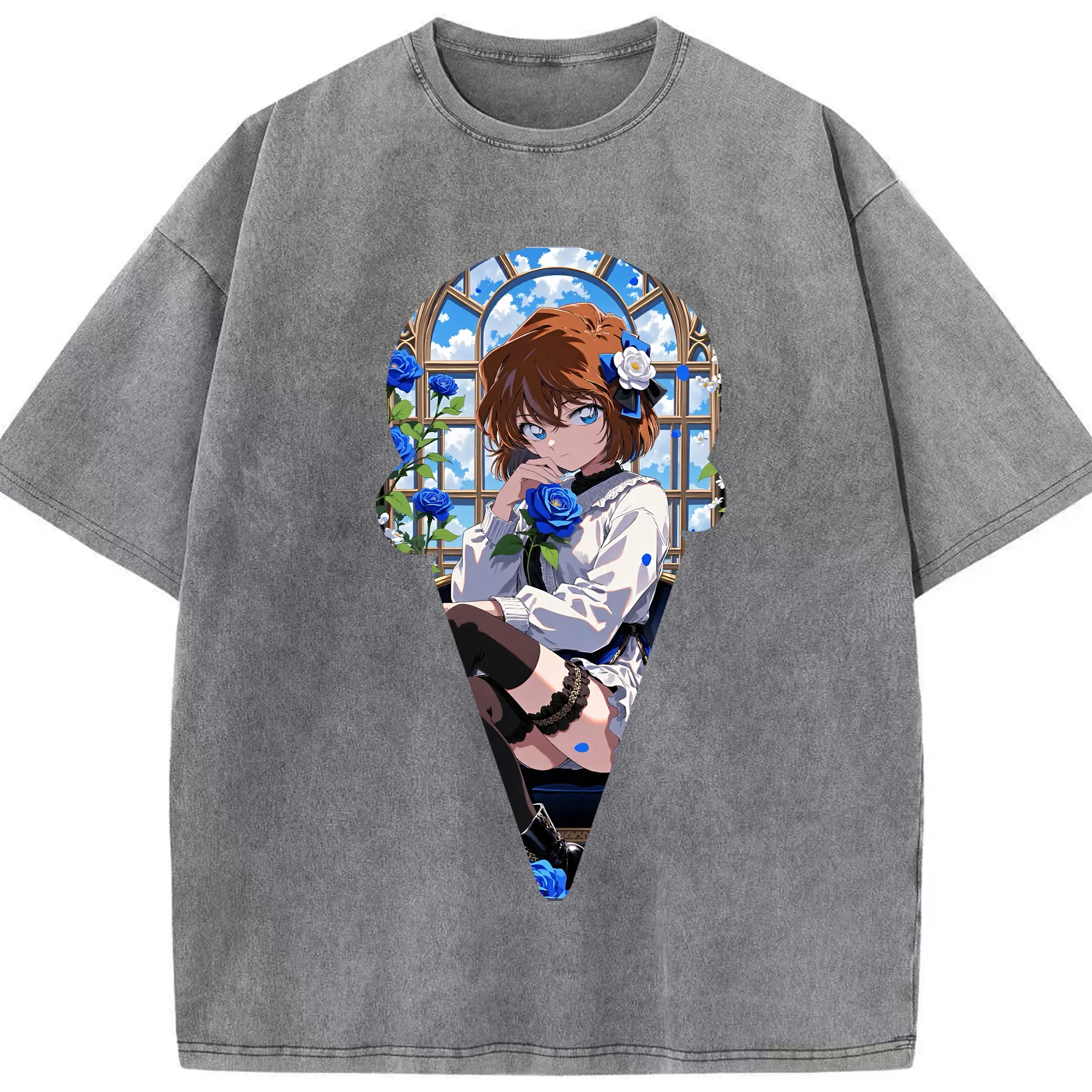 名探偵コナン グッズ 灰原 哀 - 綿100% ヴィンテージ風 半袖Tシャツ ・ 背面プリント ・ 柔らか肌触り ・ 通気性 快適 ・ スポーツ カジュアル 外出用