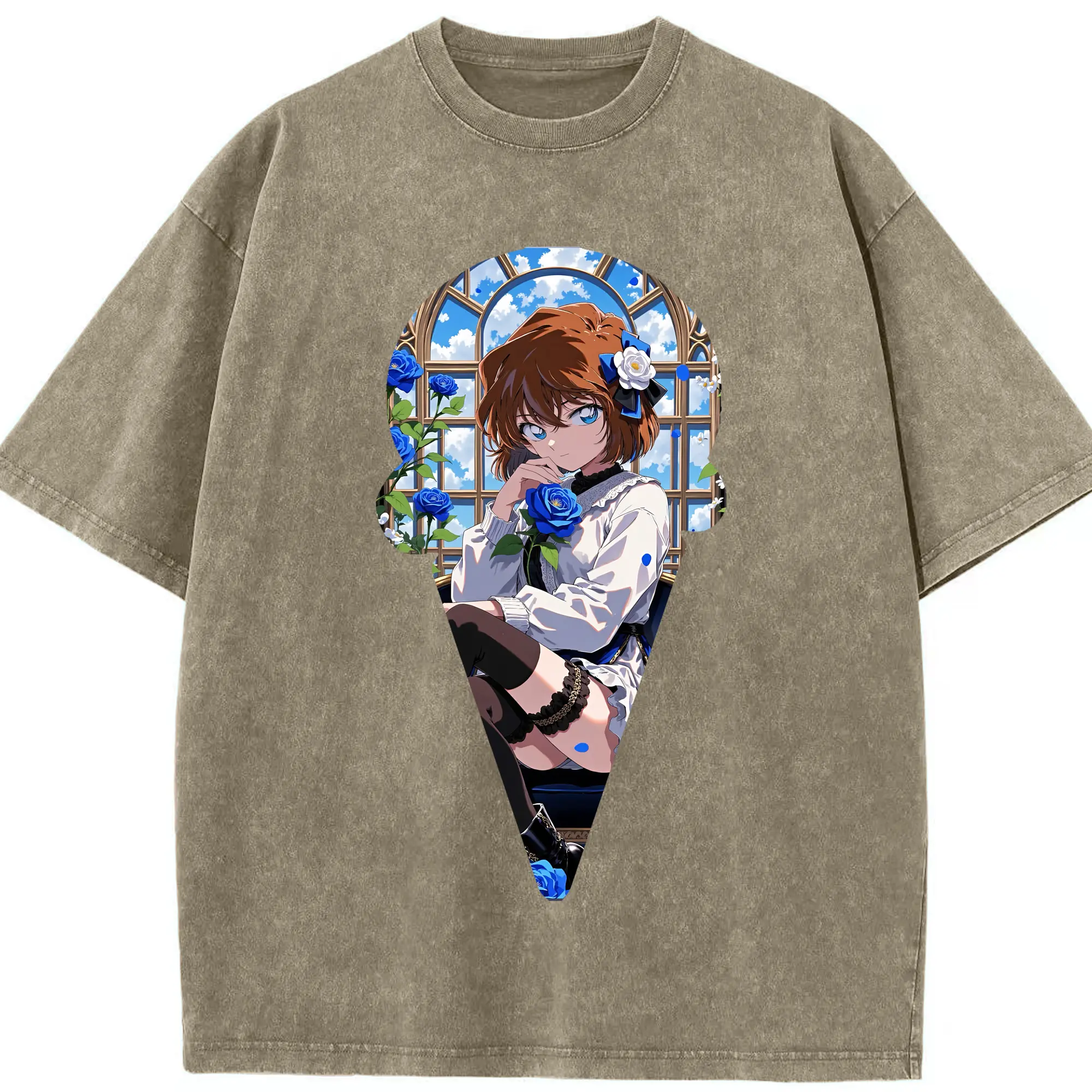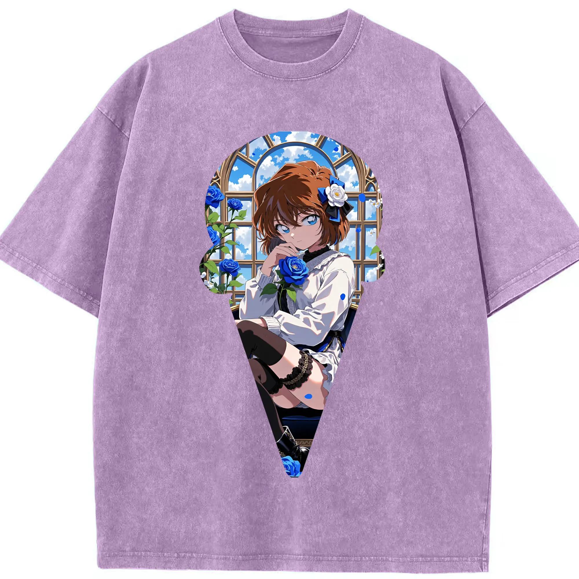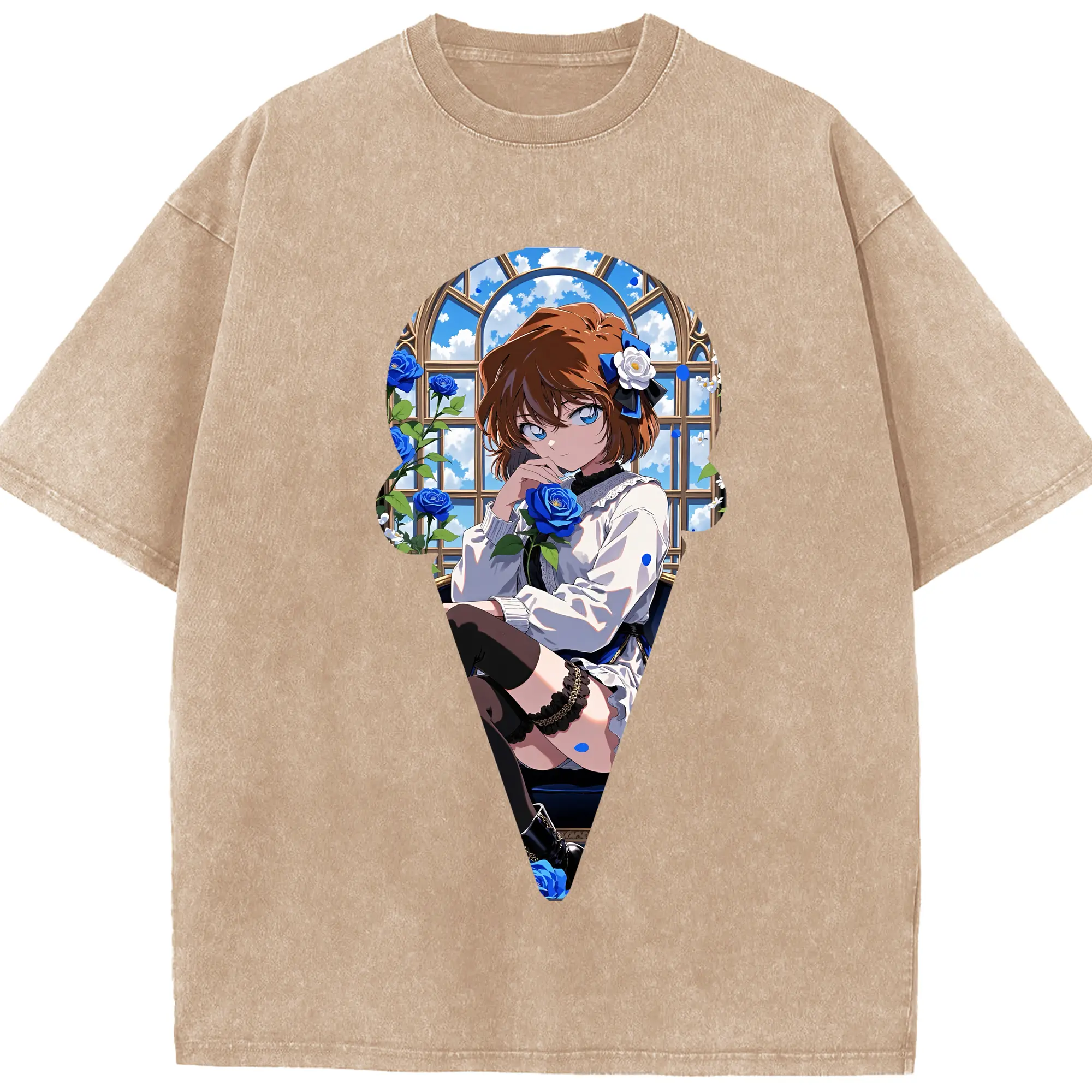 名探偵コナン グッズ 灰原 哀 - 綿100% ヴィンテージ風 半袖Tシャツ ・ 背面プリント ・ 柔らか肌触り ・ 通気性 快適 ・ スポーツ カジュアル 外出用