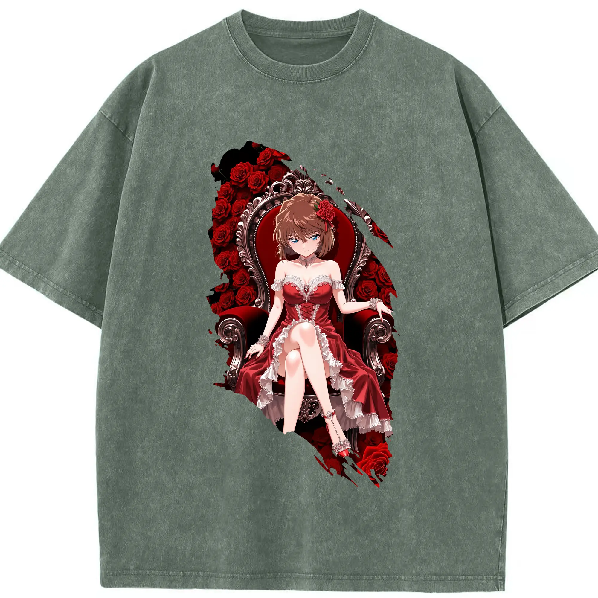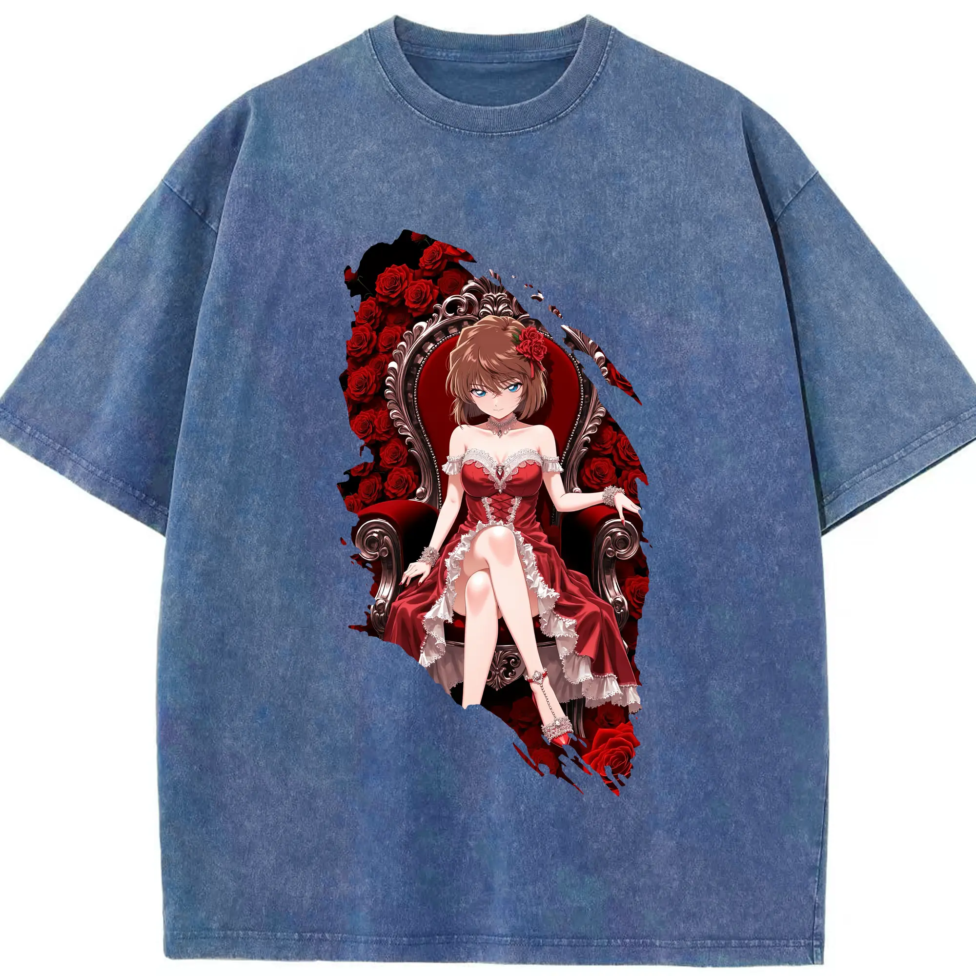名探偵コナン グッズ 灰原 哀 - 綿100% ヴィンテージ風 半袖Tシャツ ・ 背面プリント ・ 柔らか肌触り ・ 通気性 快適 ・ スポーツ カジュアル 外出用