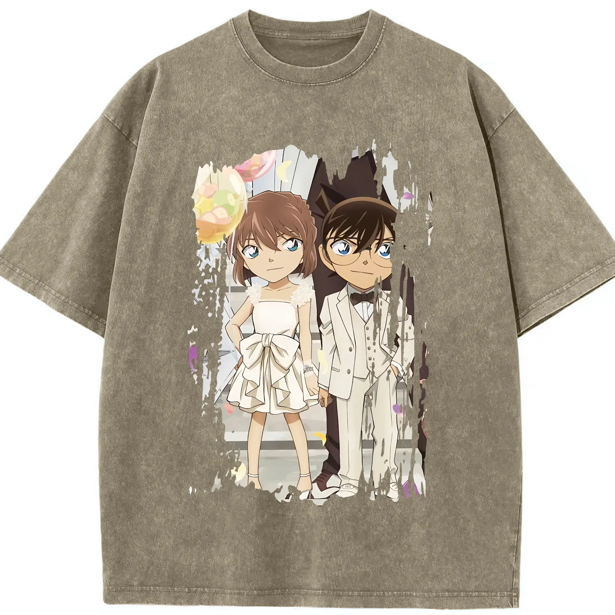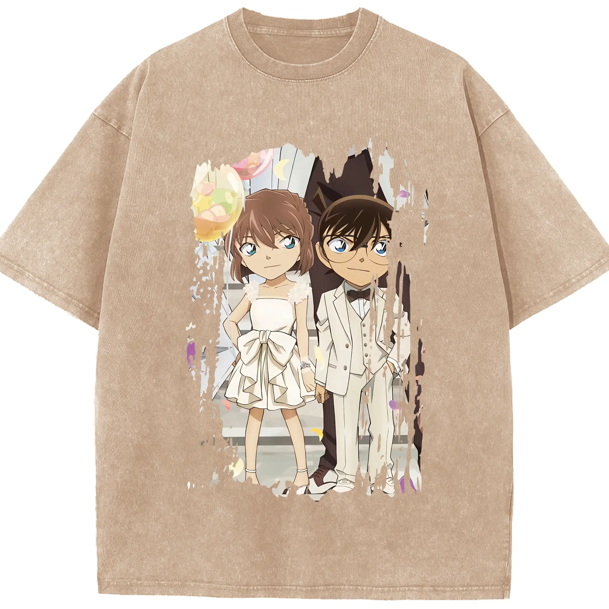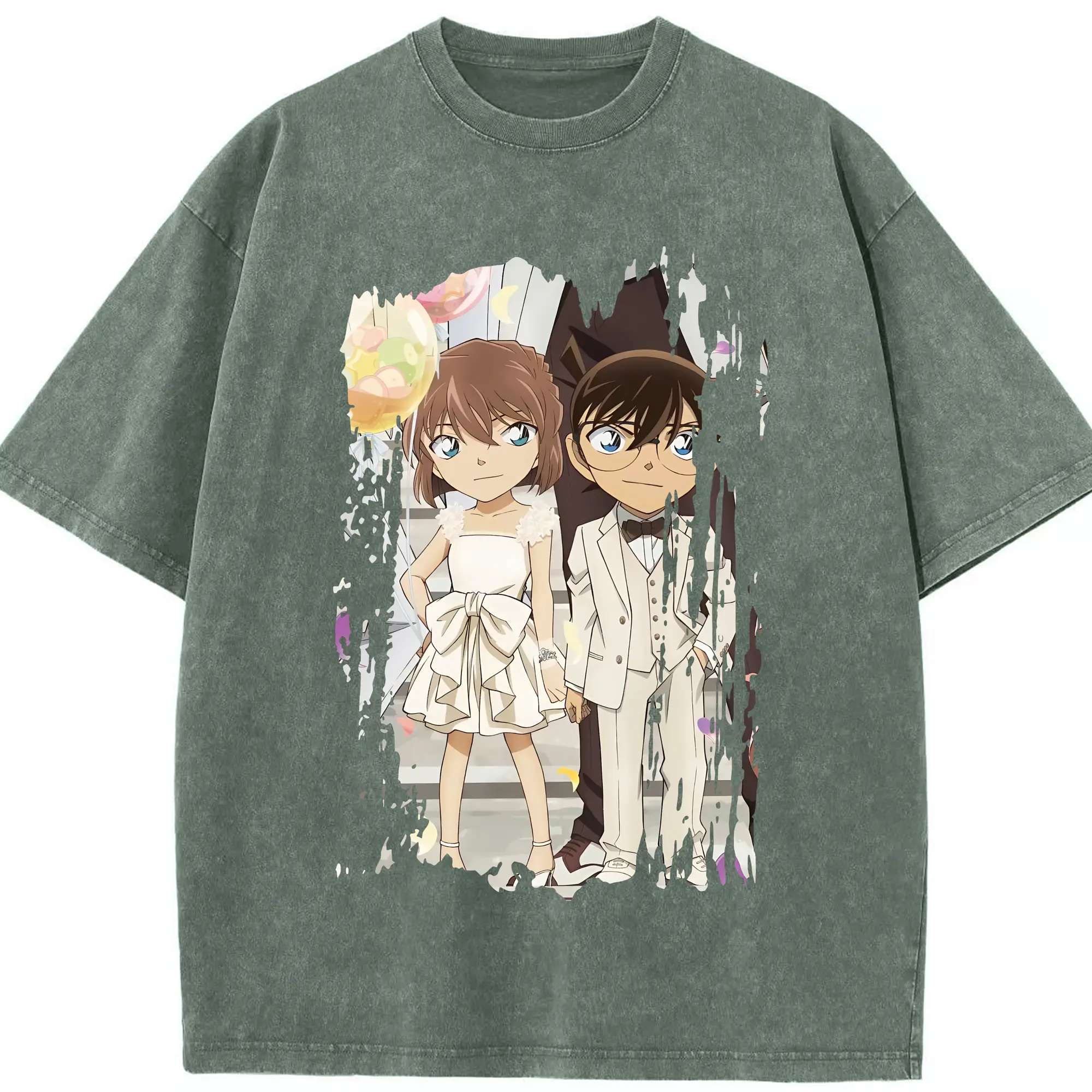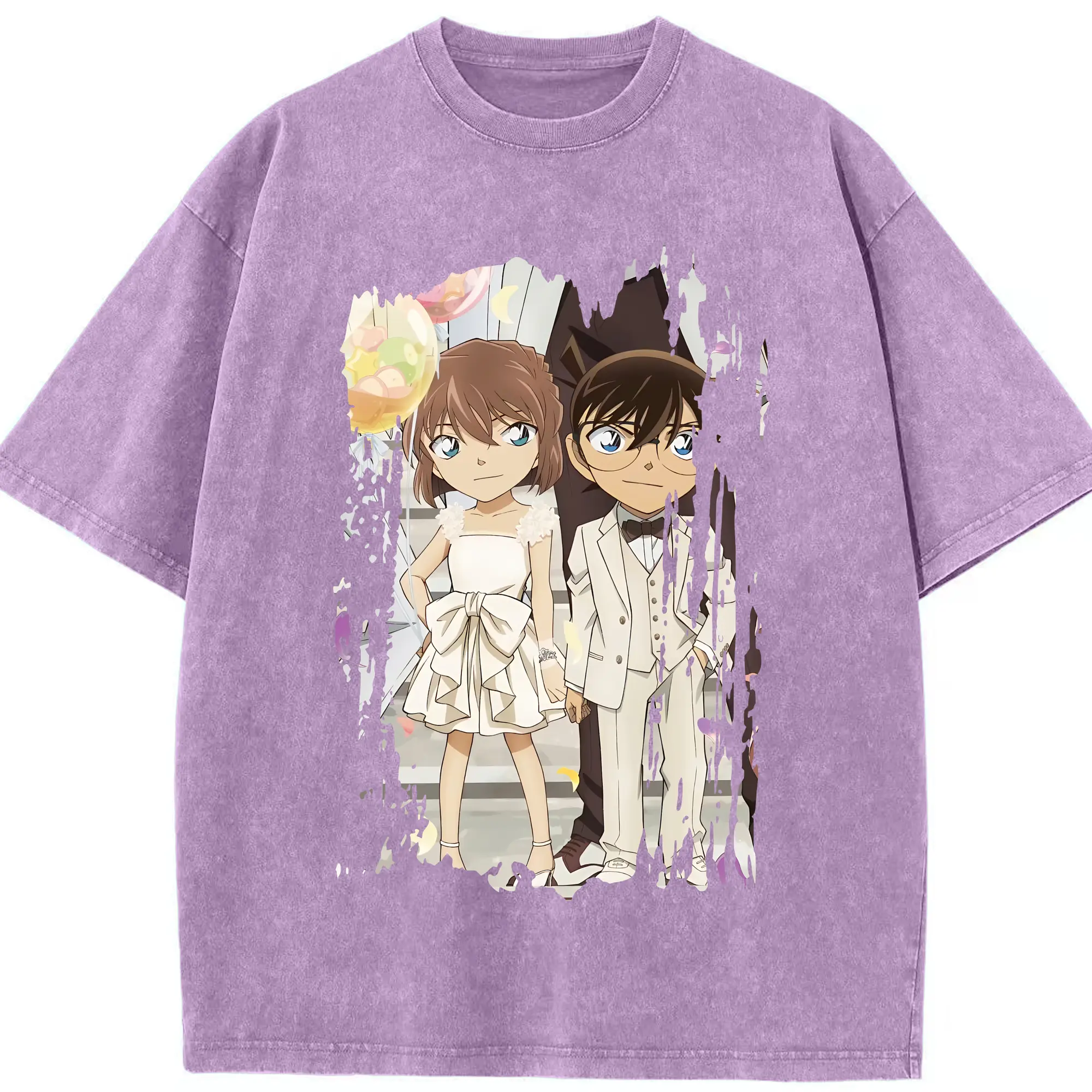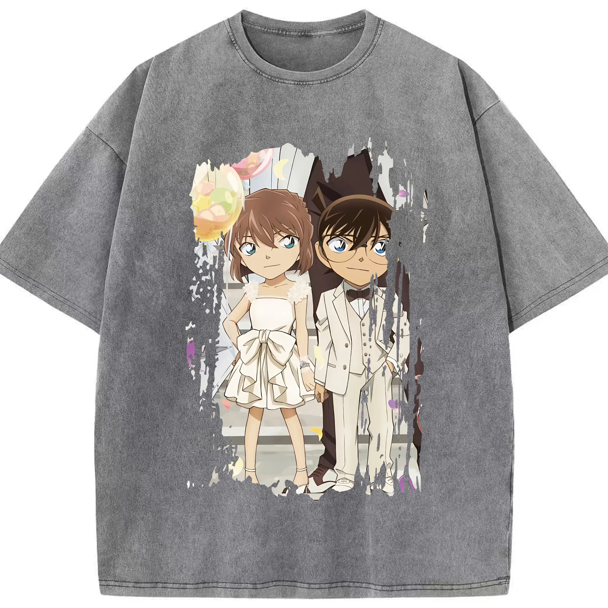 名探偵コナン グッズ 灰原 哀 - 綿100% ヴィンテージ風 半袖Tシャツ ・ 背面プリント ・ 柔らか肌触り ・ 通気性 快適 ・ スポーツ カジュアル 外出用