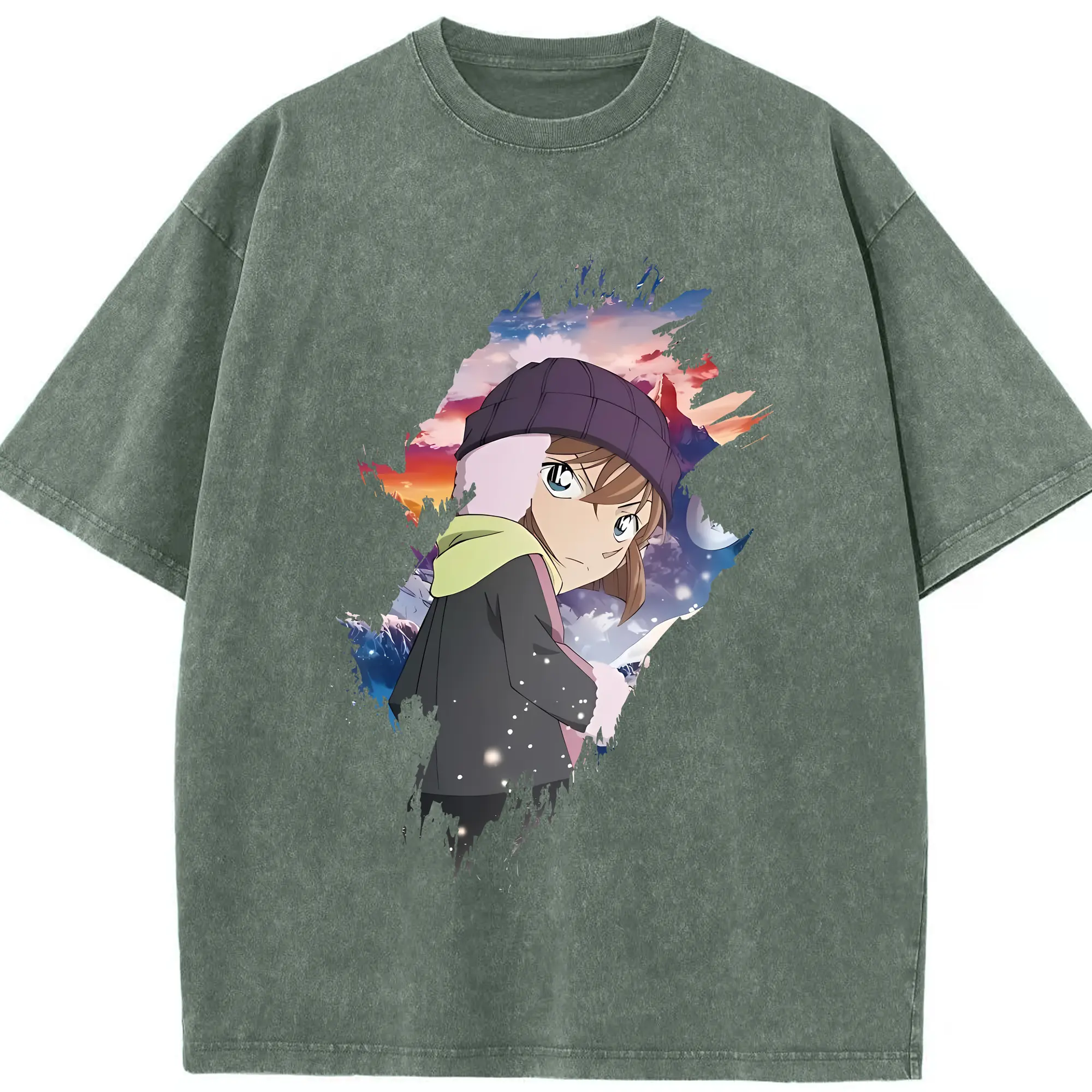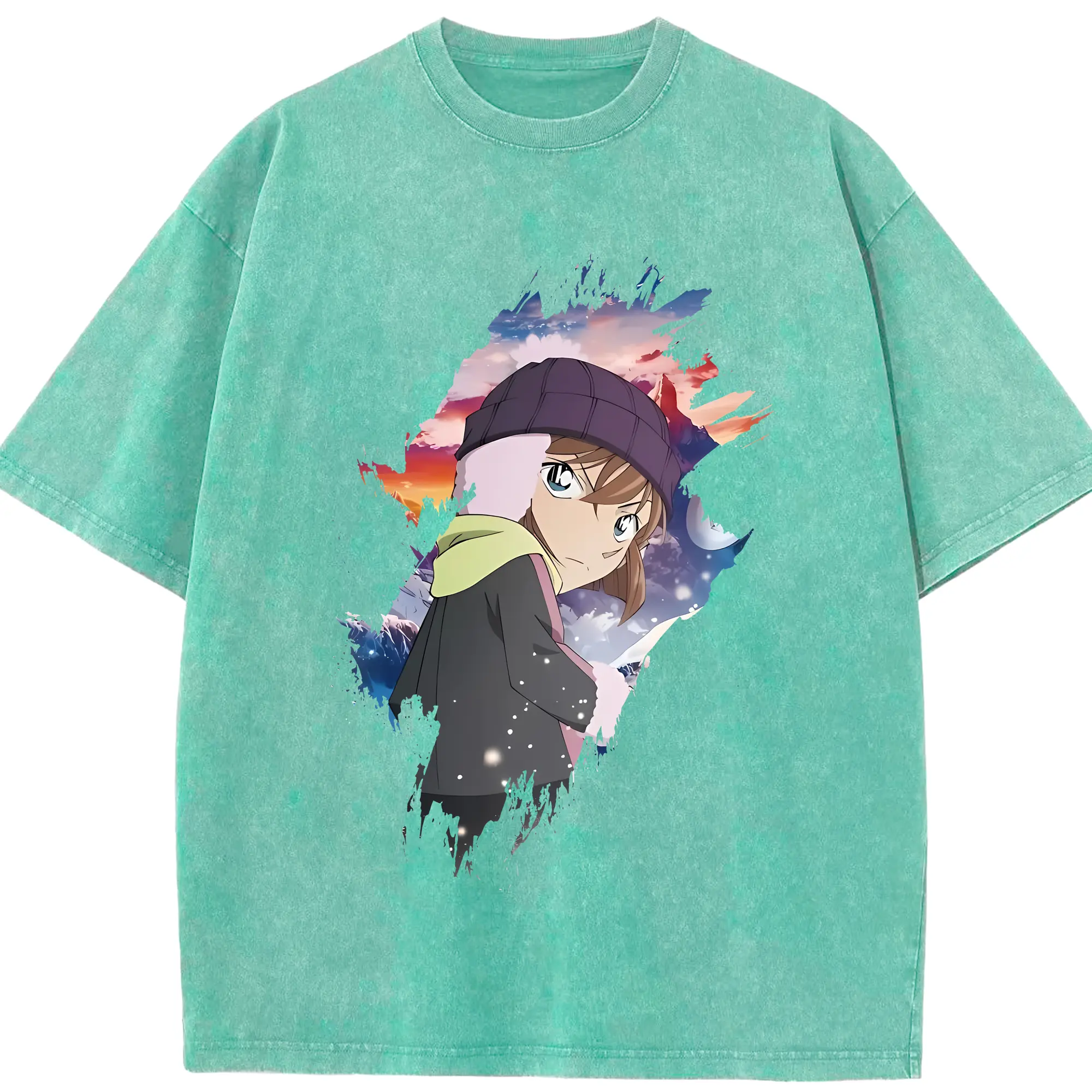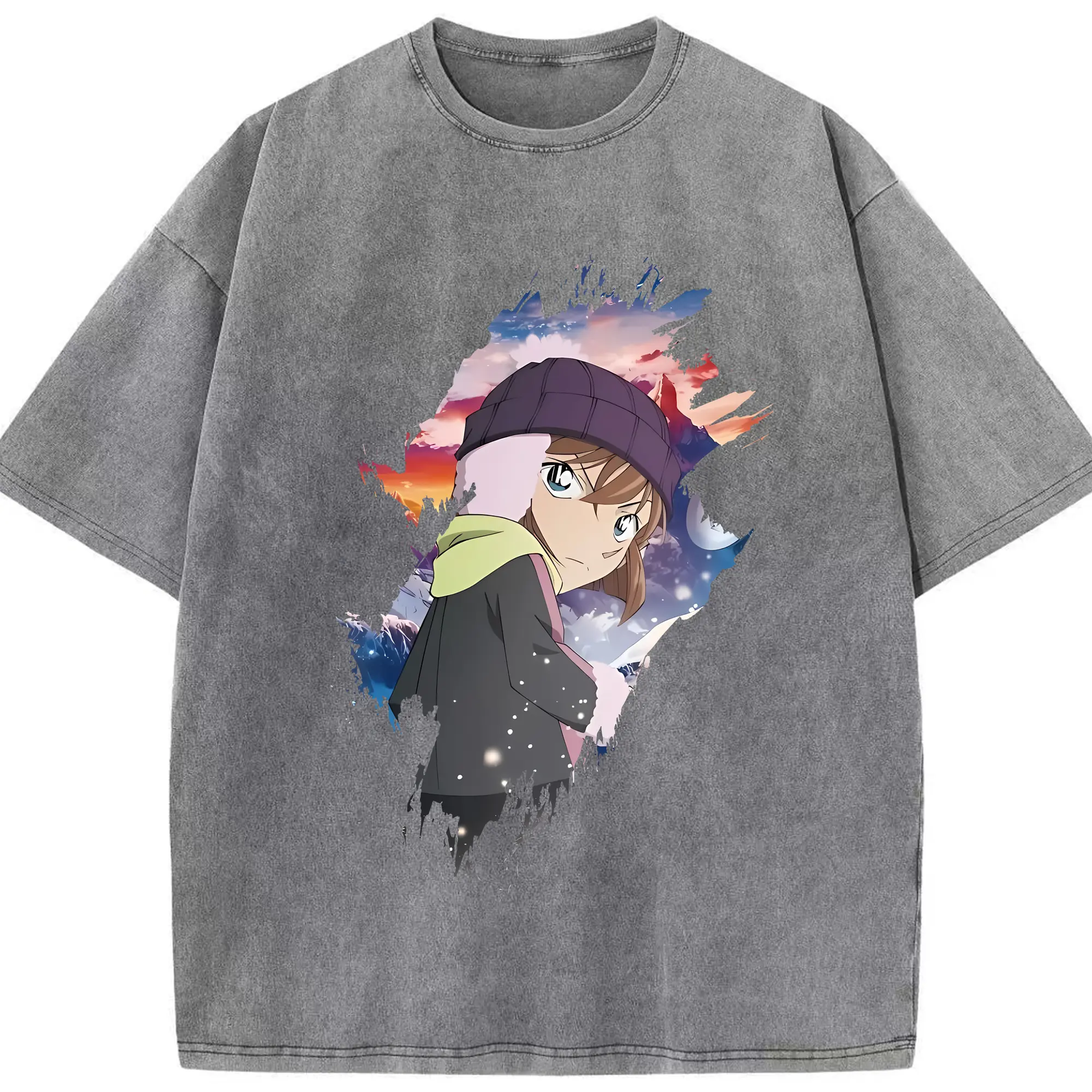 名探偵コナン グッズ 灰原 哀 - 綿100% ヴィンテージ風 半袖Tシャツ ・ 背面プリント ・ 柔らか肌触り ・ 通気性 快適 ・ スポーツ カジュアル 外出用