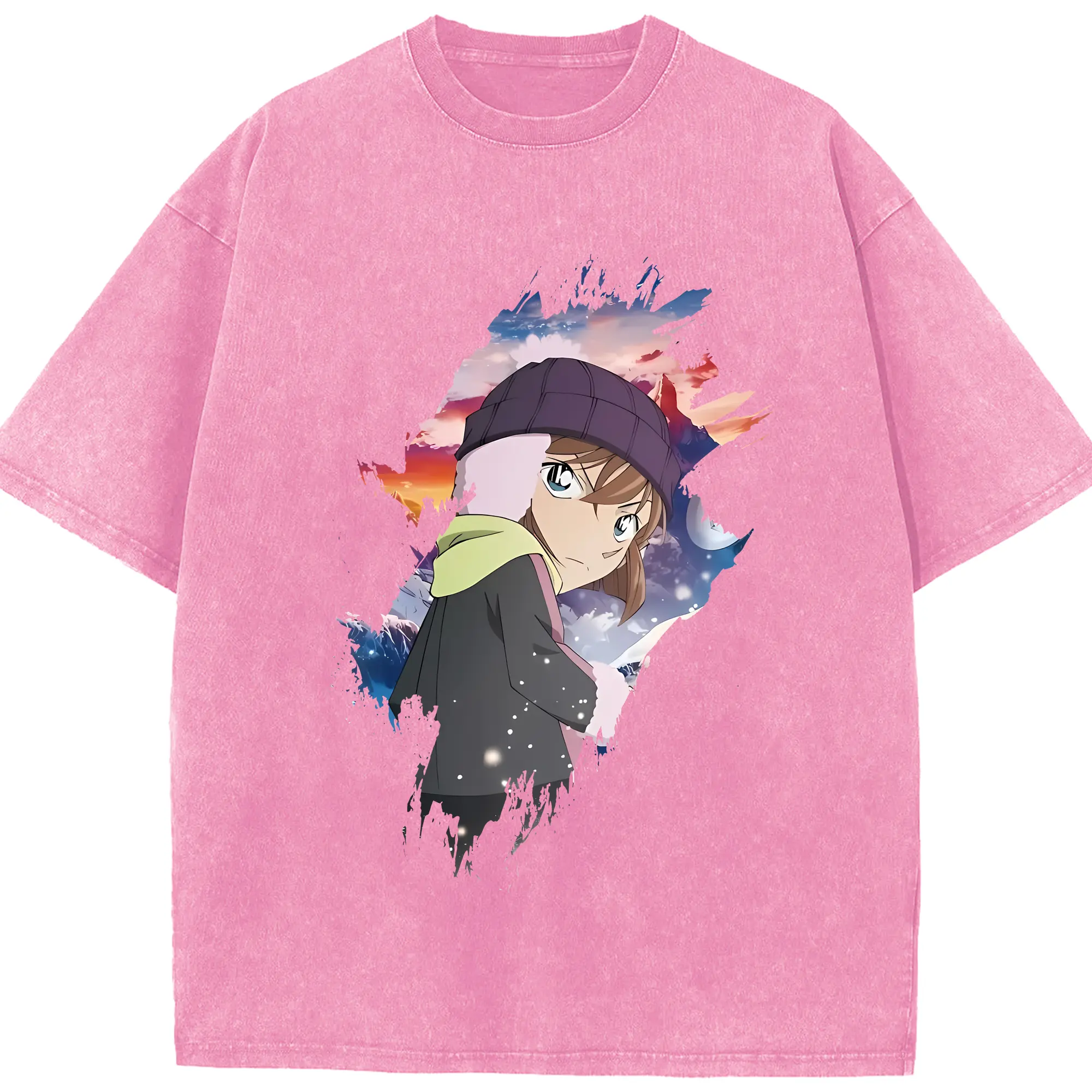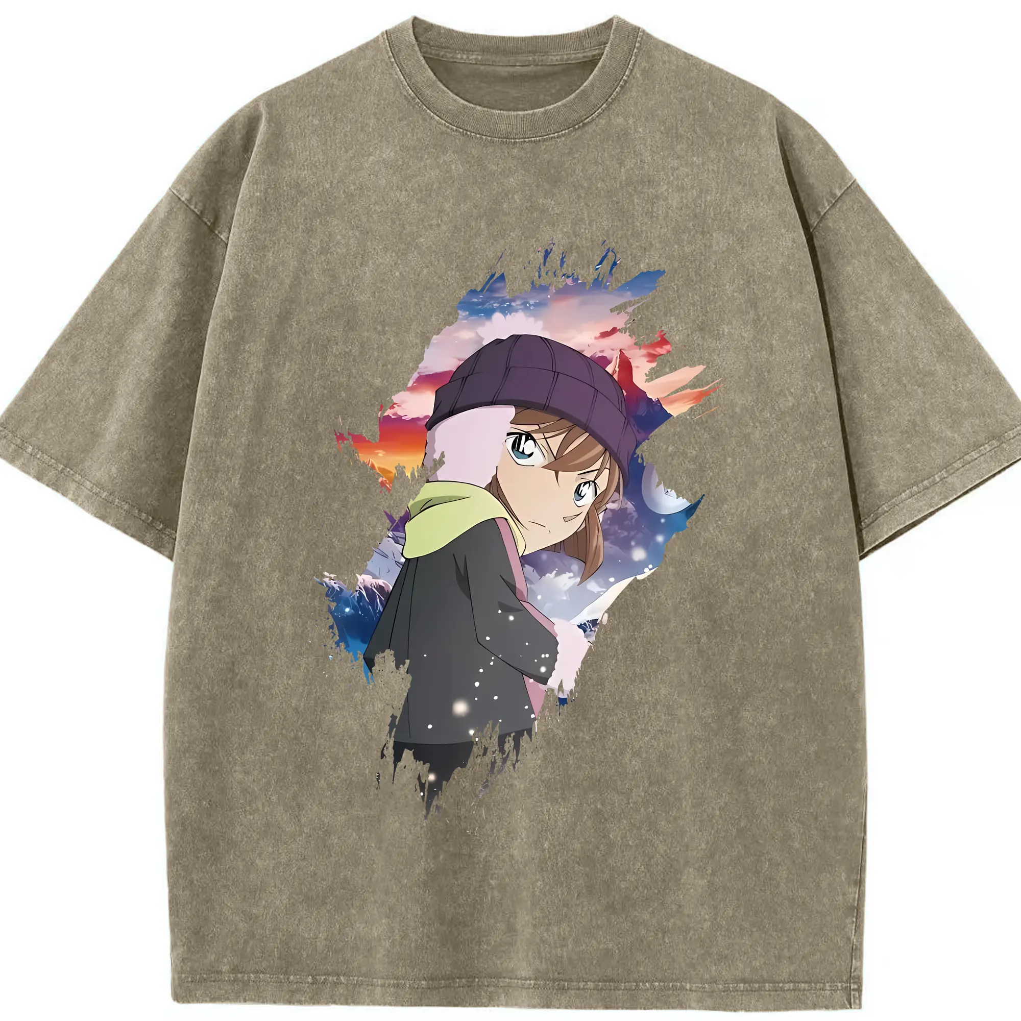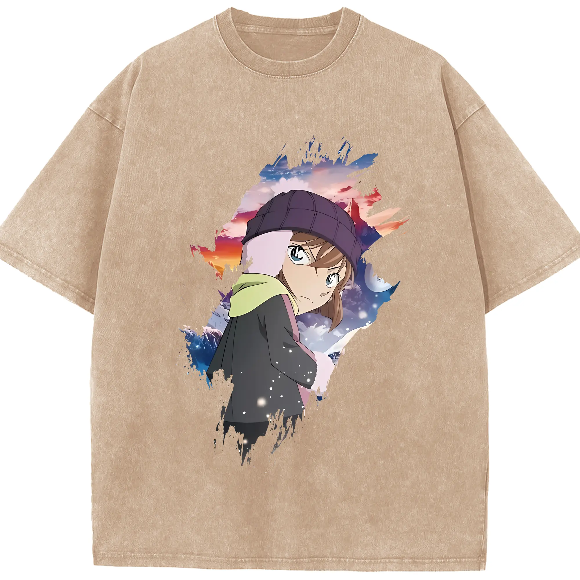 名探偵コナン グッズ 灰原 哀 - 綿100% ヴィンテージ風 半袖Tシャツ ・ 背面プリント ・ 柔らか肌触り ・ 通気性 快適 ・ スポーツ カジュアル 外出用