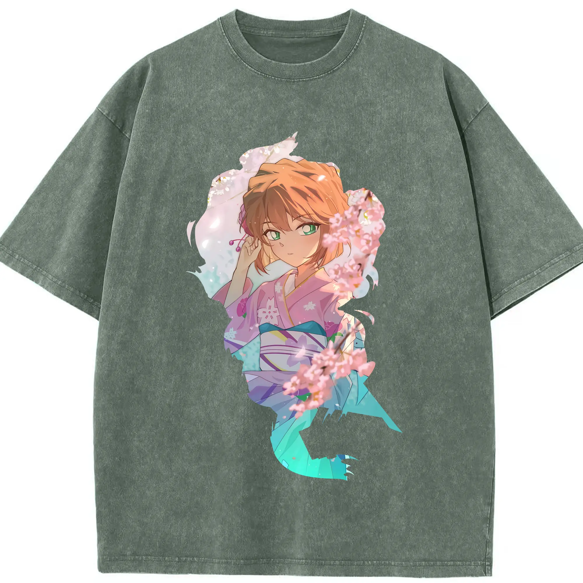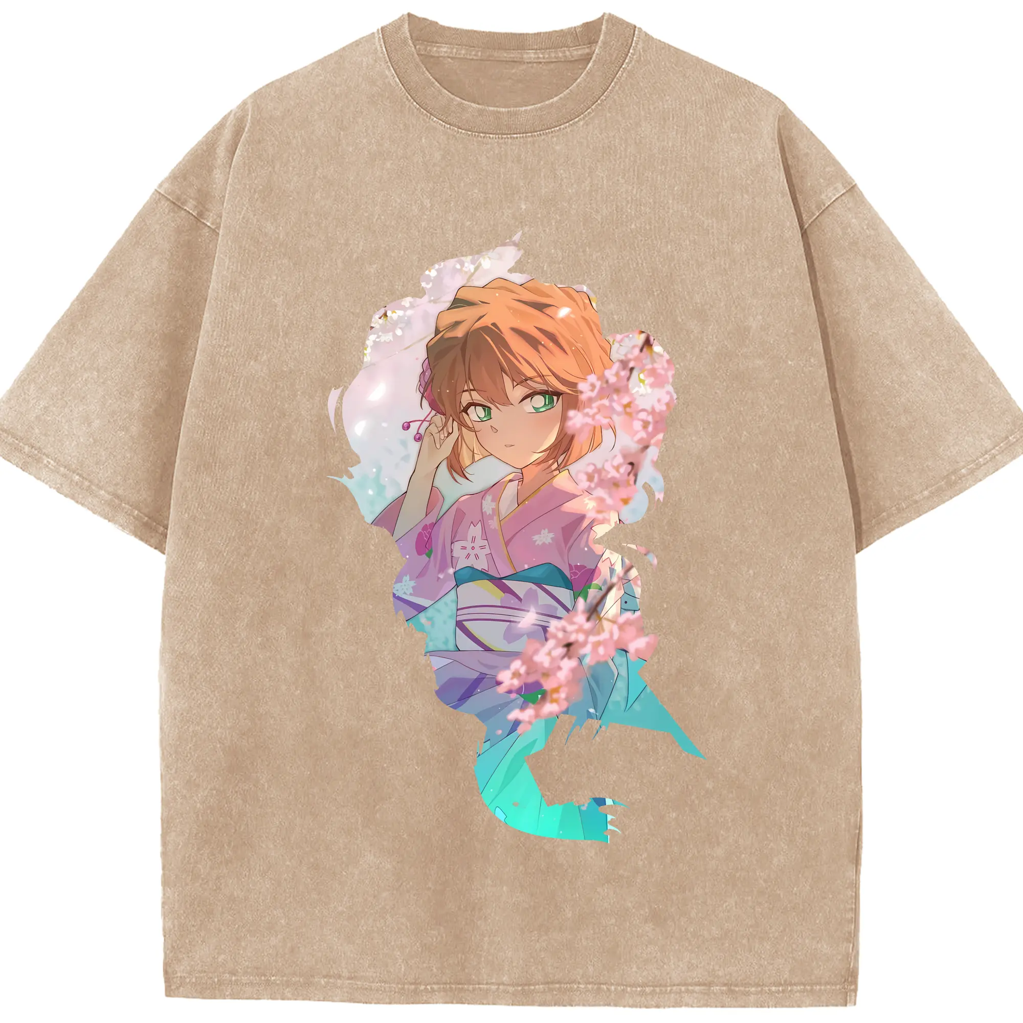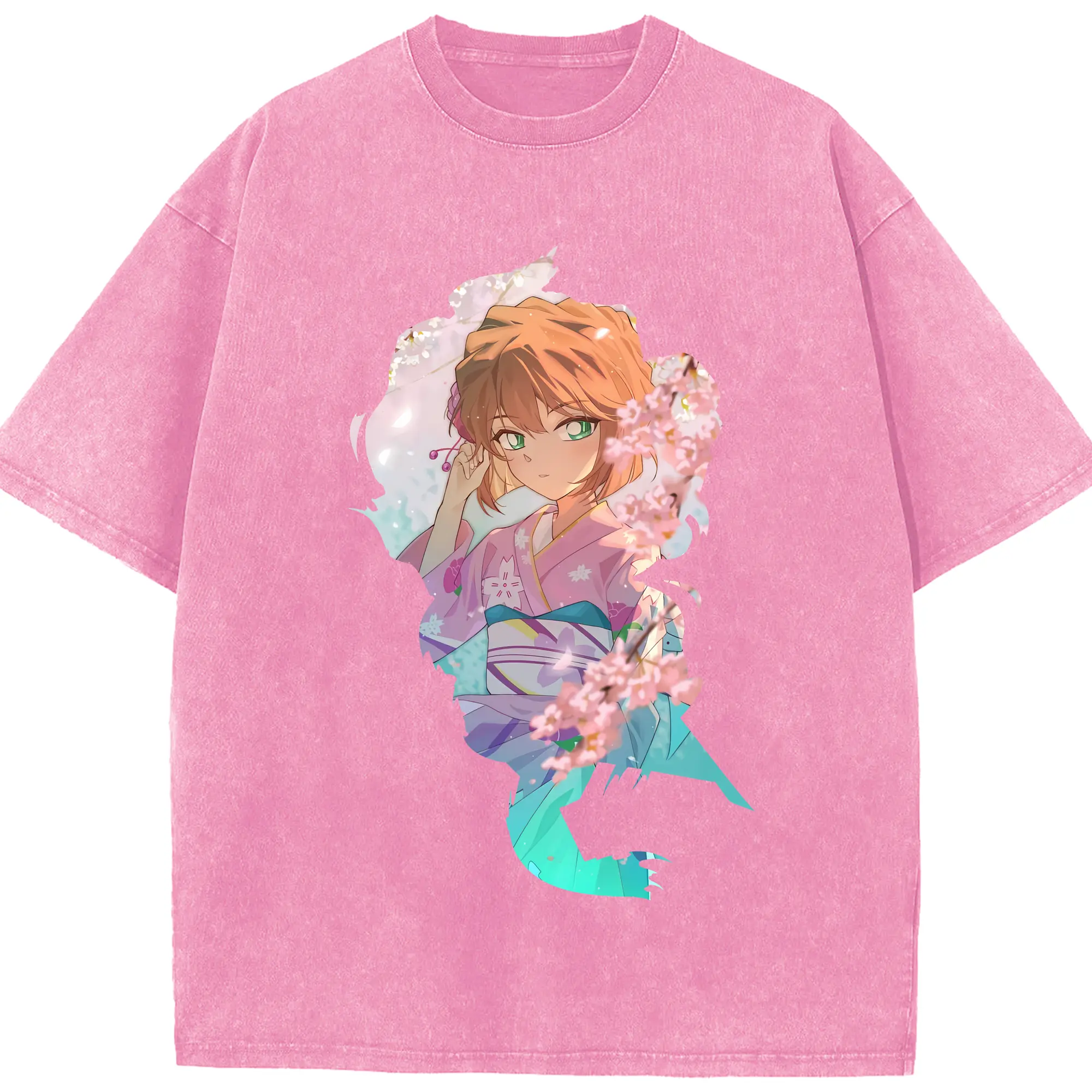 アイカツ グッズ 北大路 さくら - 綿100% ヴィンテージ風 半袖Tシャツ ・ フロントプリント ・ 柔らか肌触り ・ 通気性 快適 ・ スポーツ カジュアル 外出用