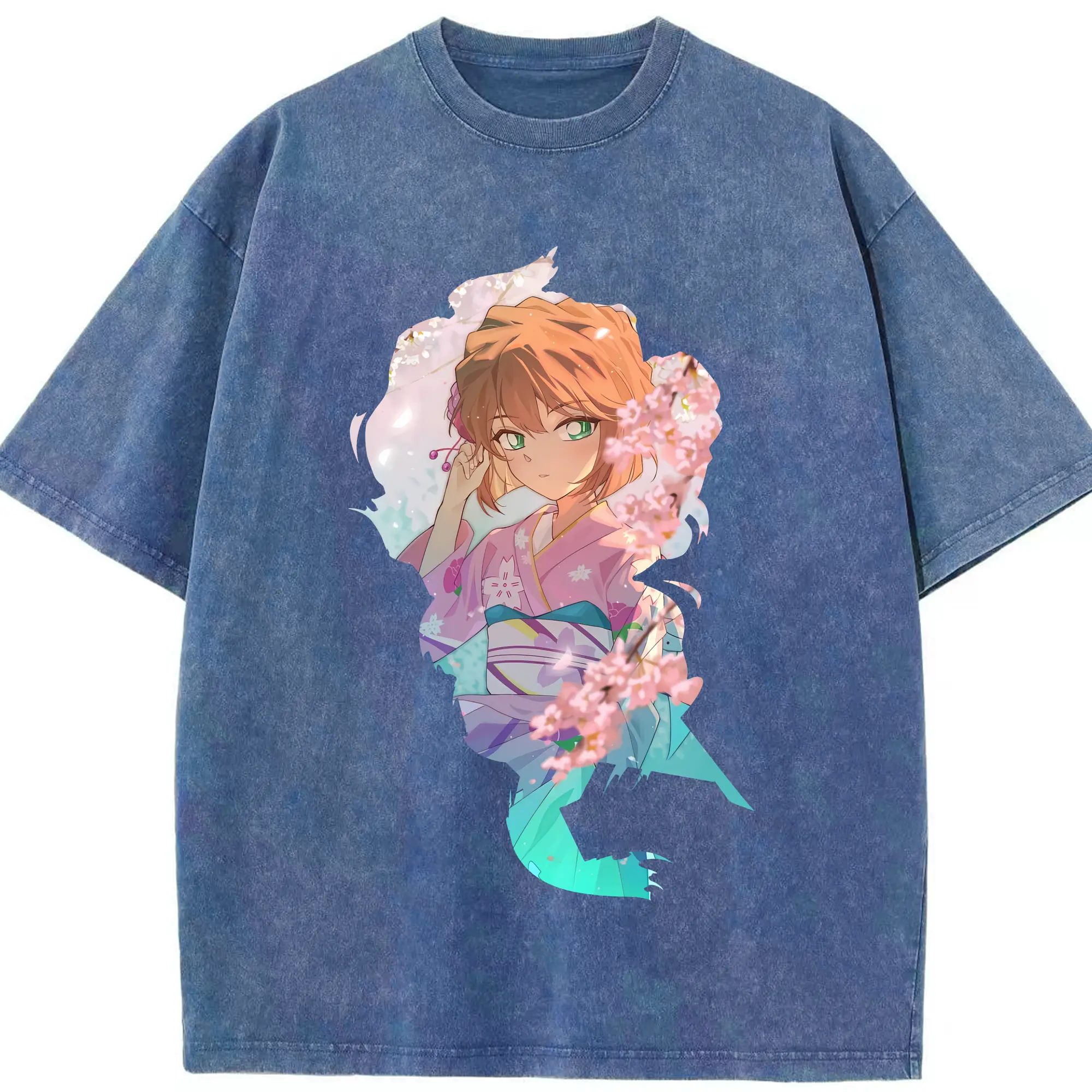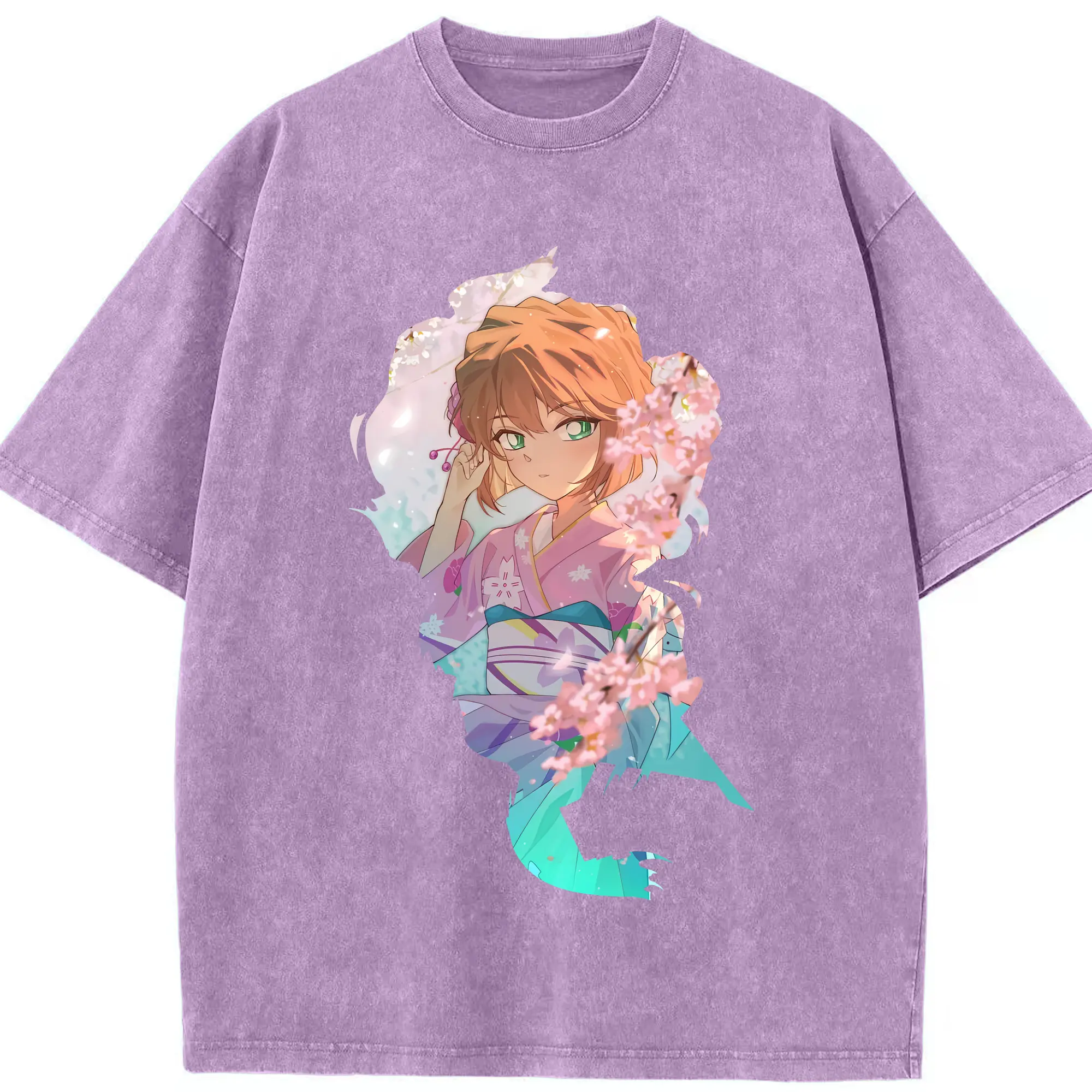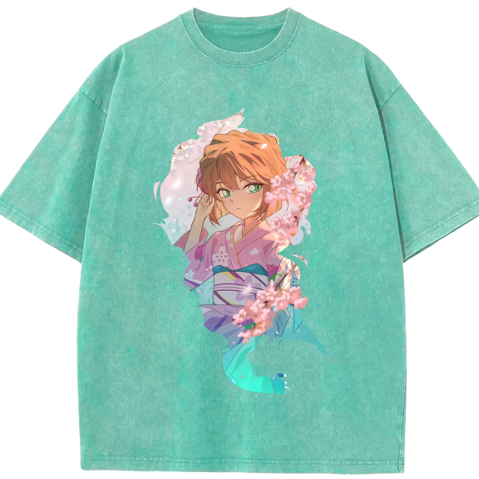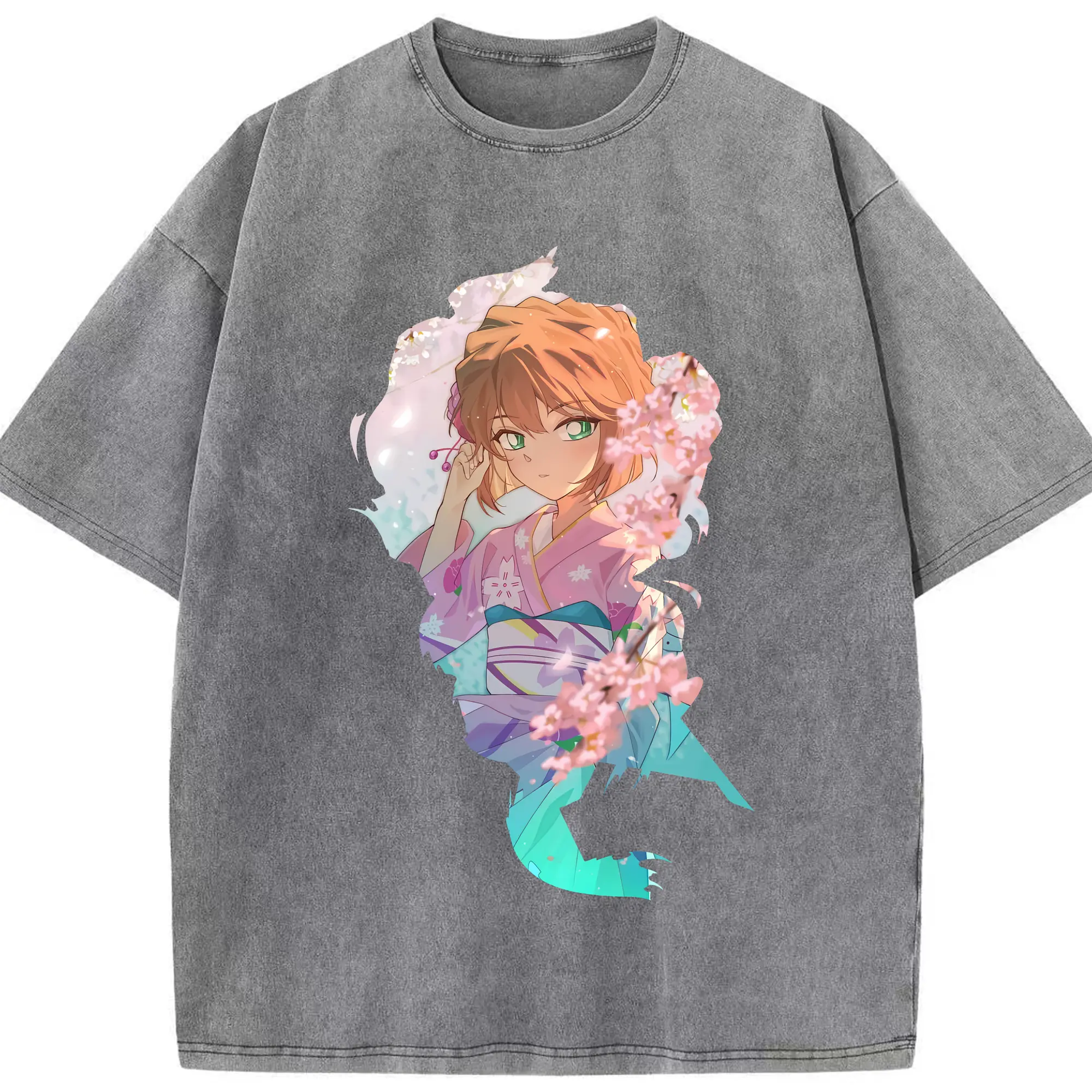 名探偵コナン グッズ 灰原 哀 - 綿100% ヴィンテージ風 半袖Tシャツ ・ 背面プリント ・ 柔らか肌触り ・ 通気性 快適 ・ スポーツ カジュアル 外出用