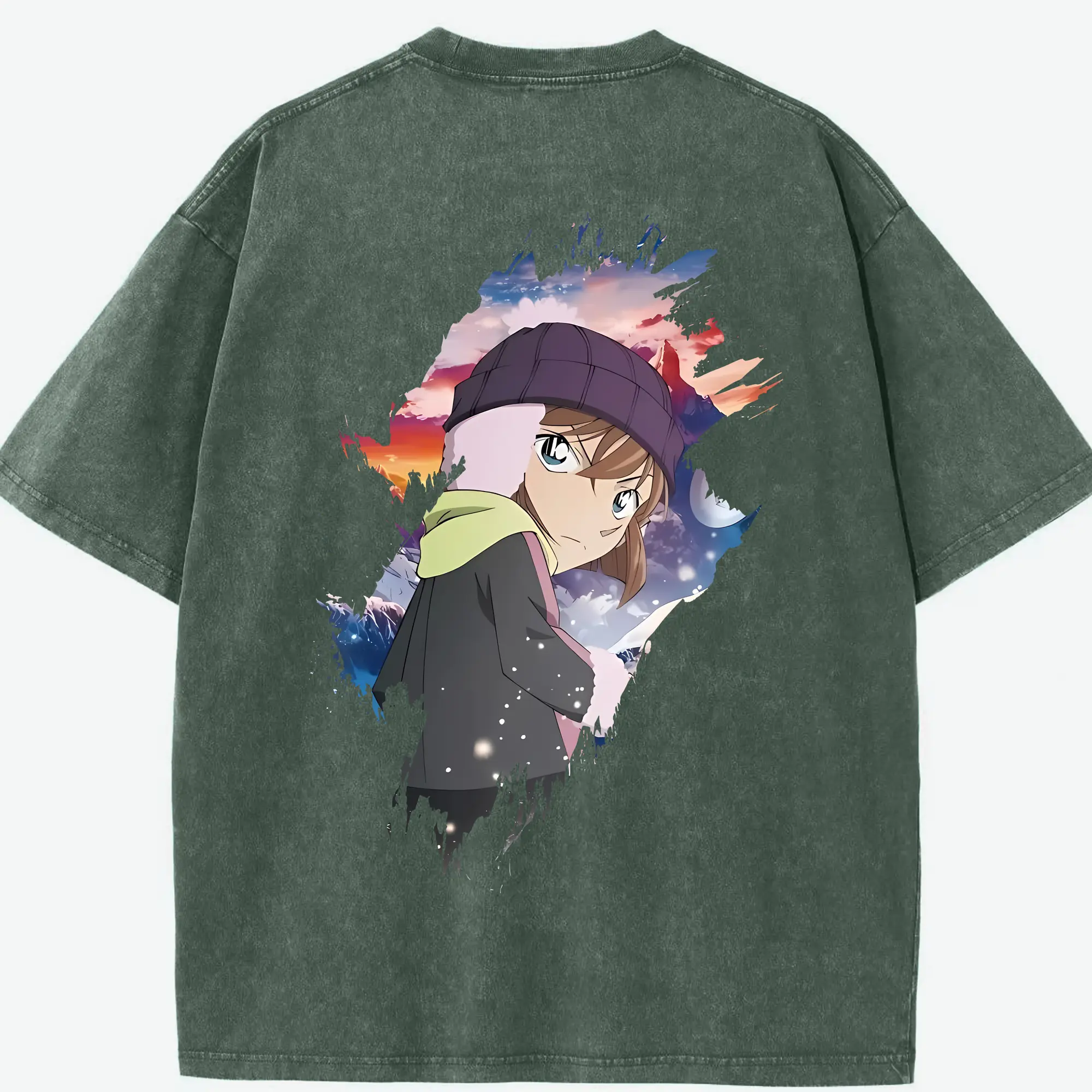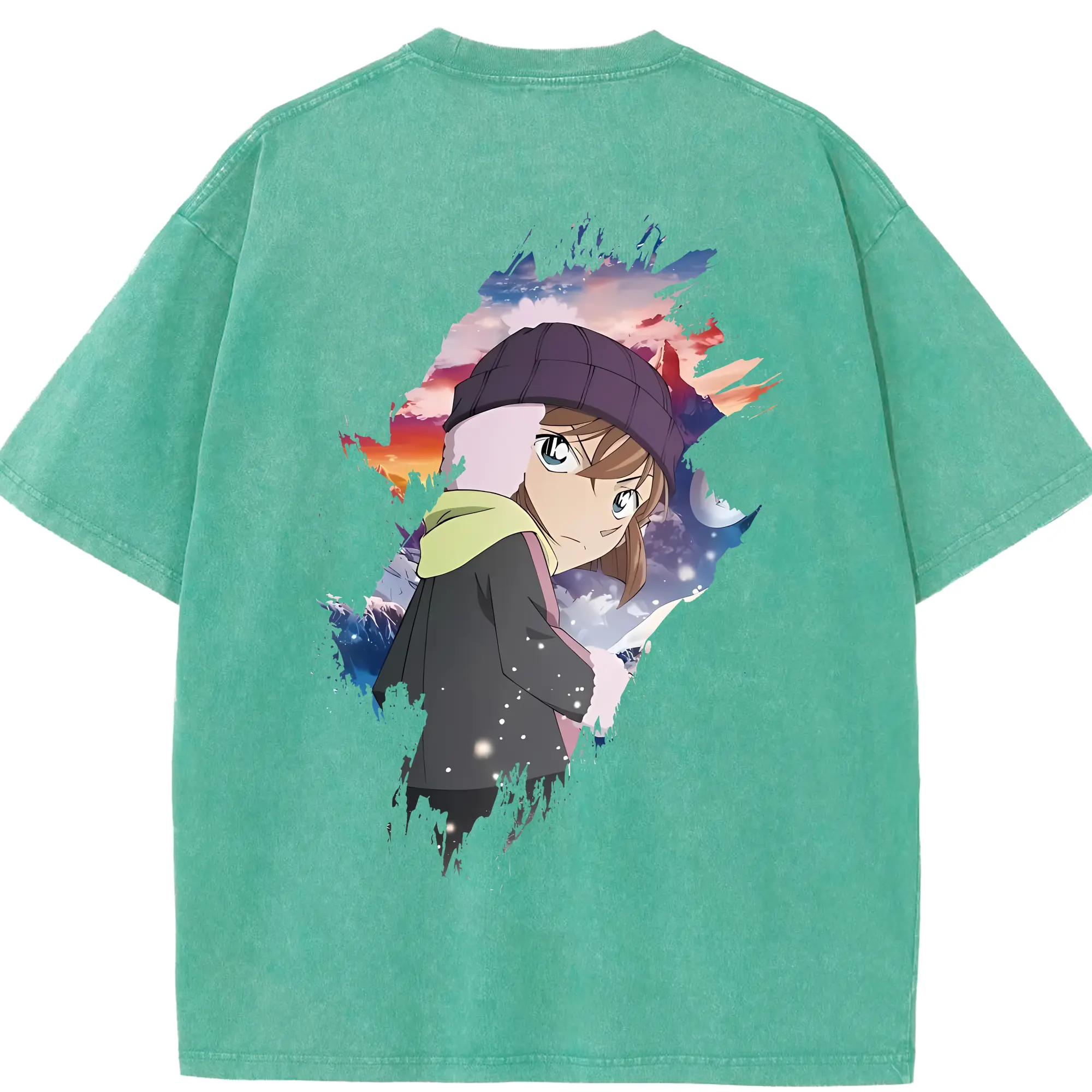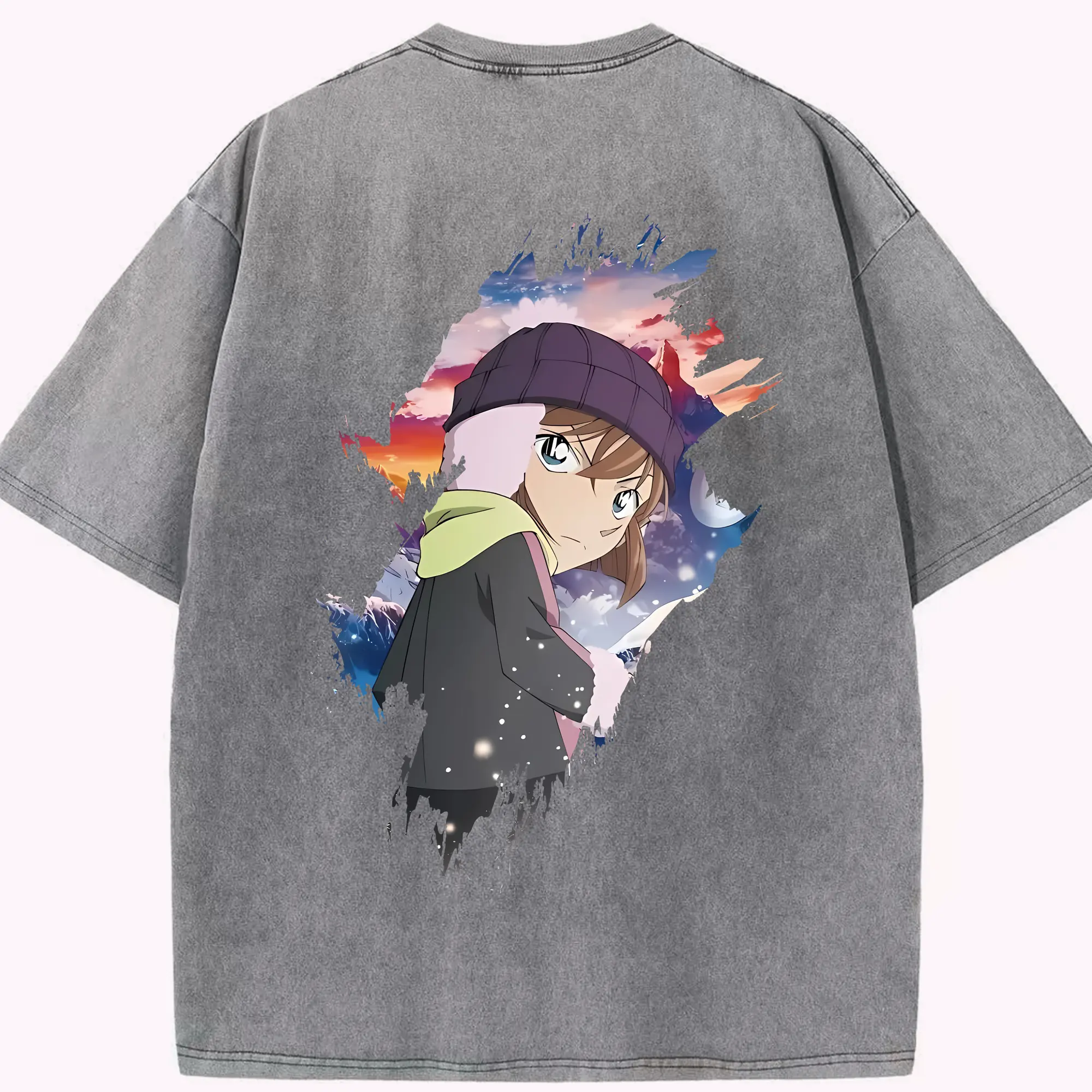 名探偵コナン グッズ 灰原 哀 - 綿100% ヴィンテージ風 半袖Tシャツ ・ フロントプリント ・ 柔らか肌触り ・ 通気性 快適 ・ スポーツ カジュアル 外出用