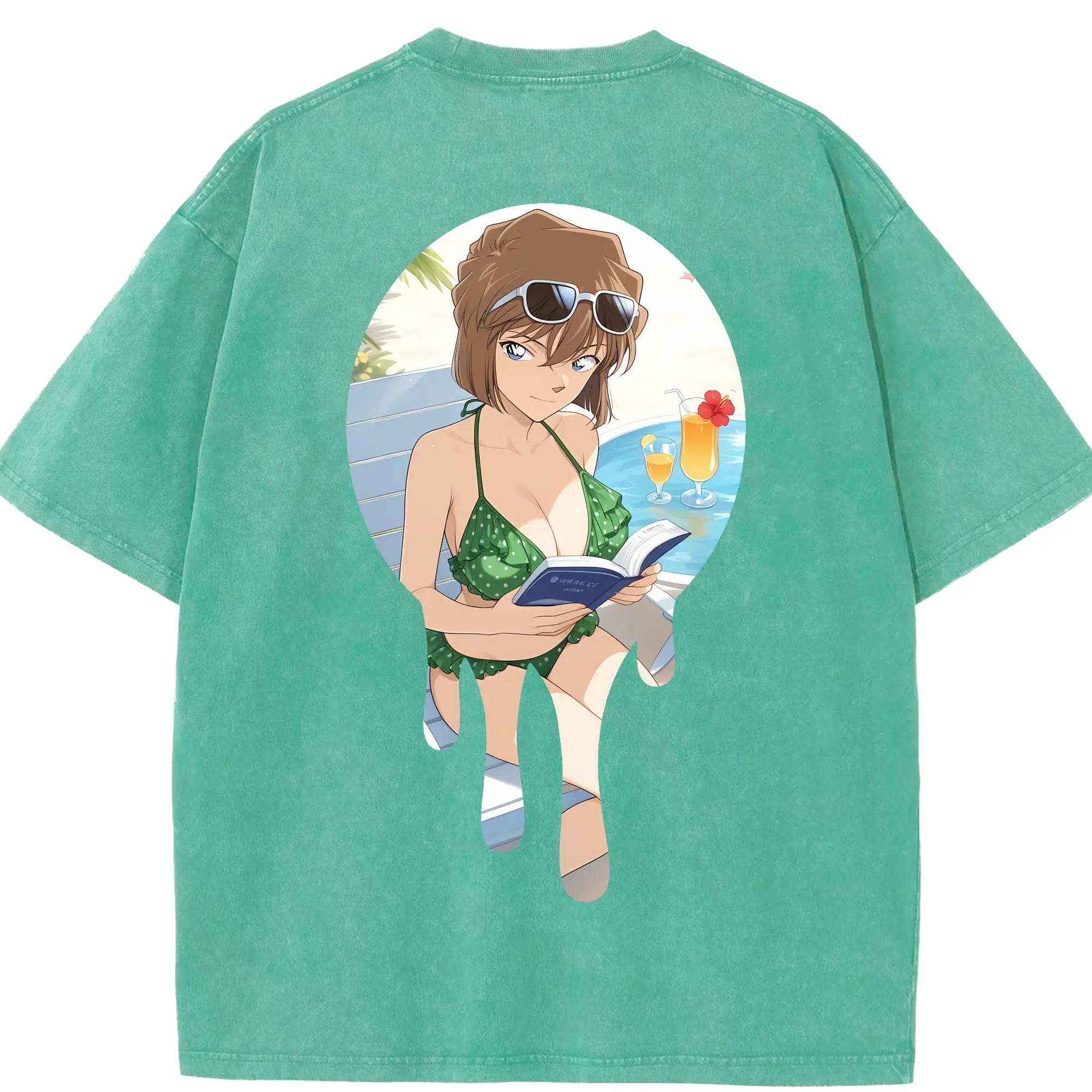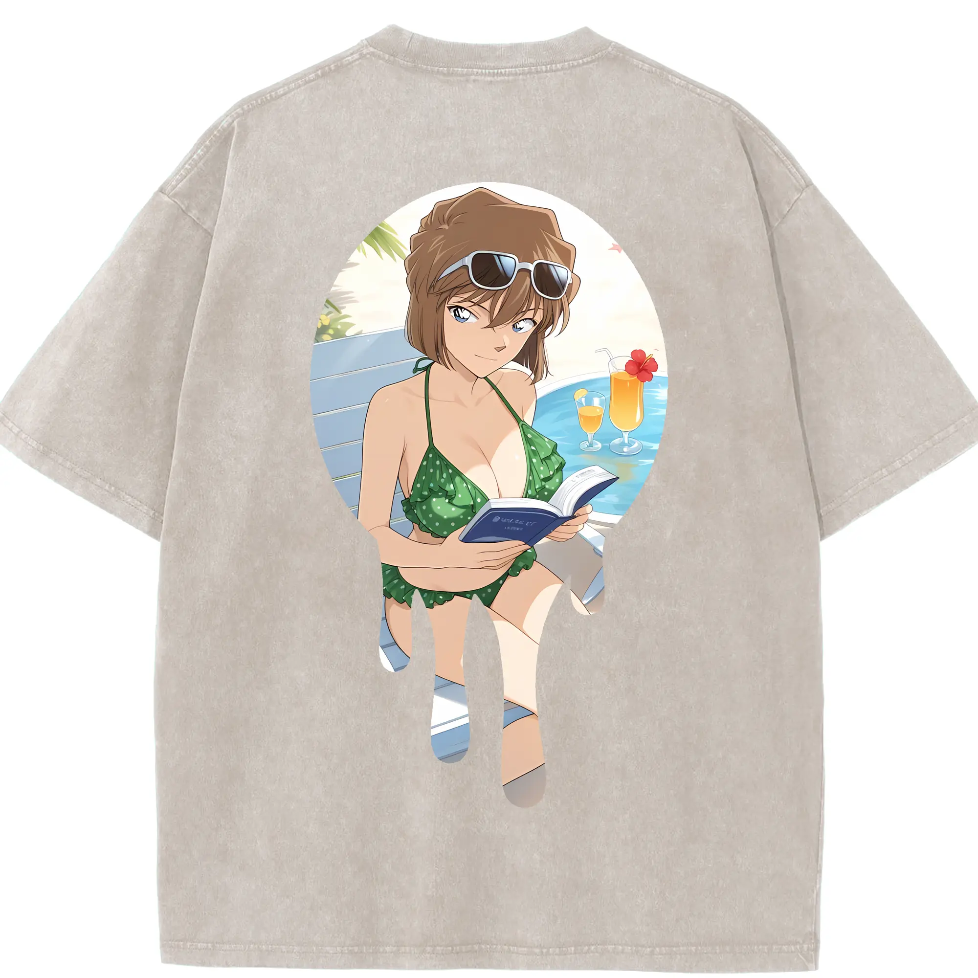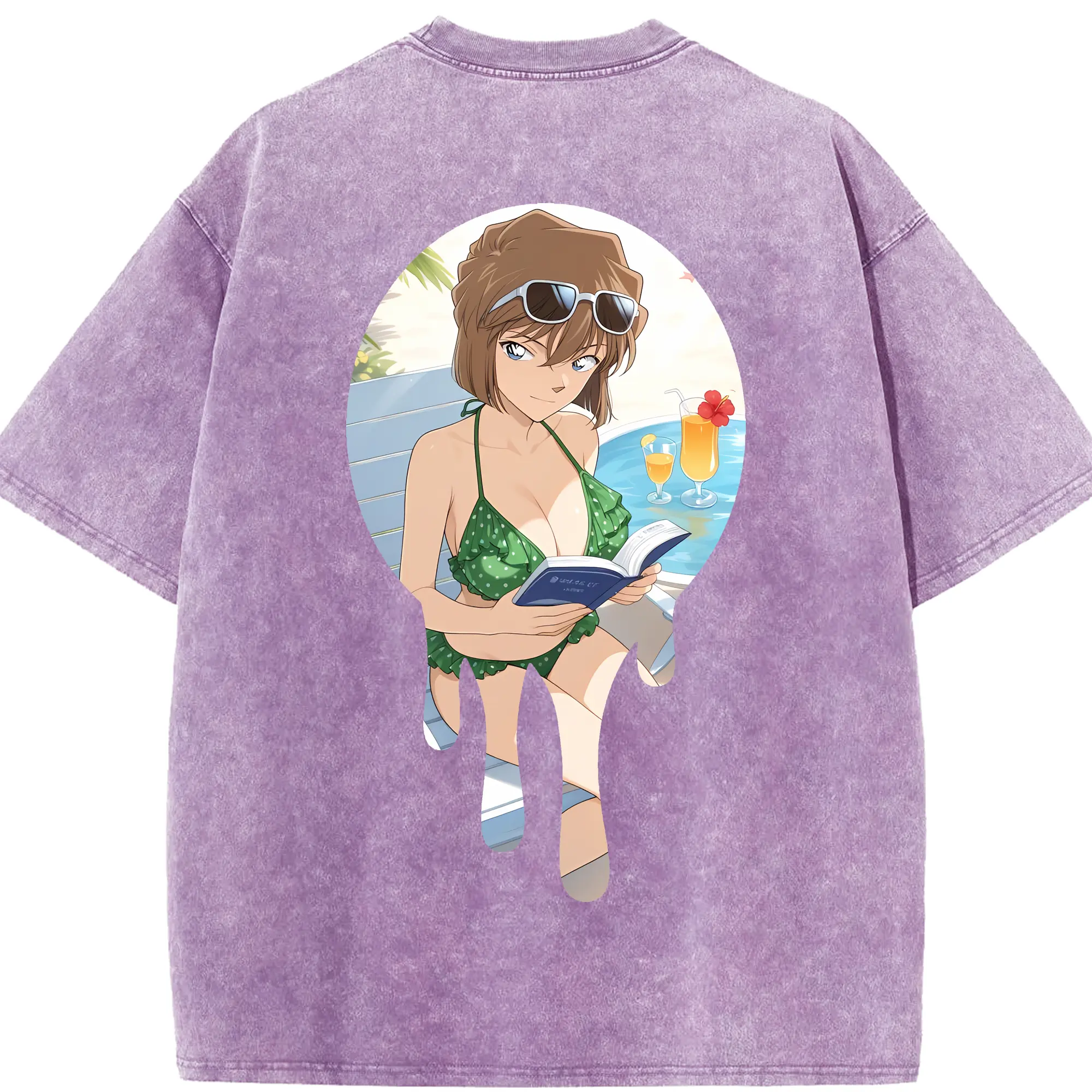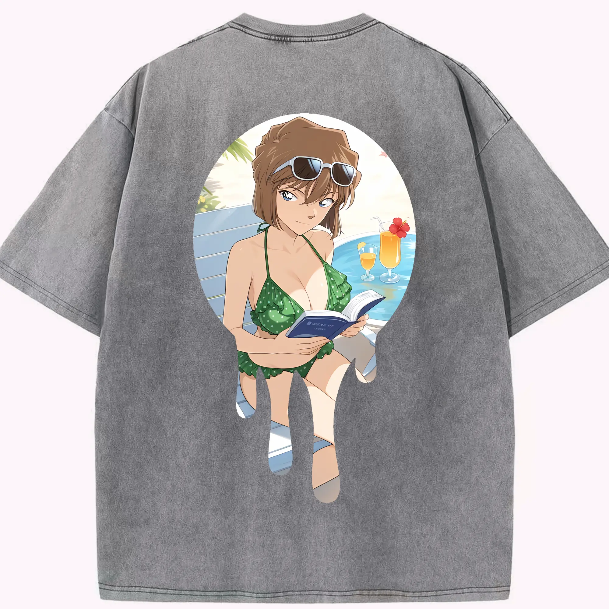 名探偵コナン グッズ 灰原 哀 - 綿100% ヴィンテージ風 半袖Tシャツ ・ フロントプリント ・ 柔らか肌触り ・ 通気性 快適 ・ スポーツ カジュアル 外出用