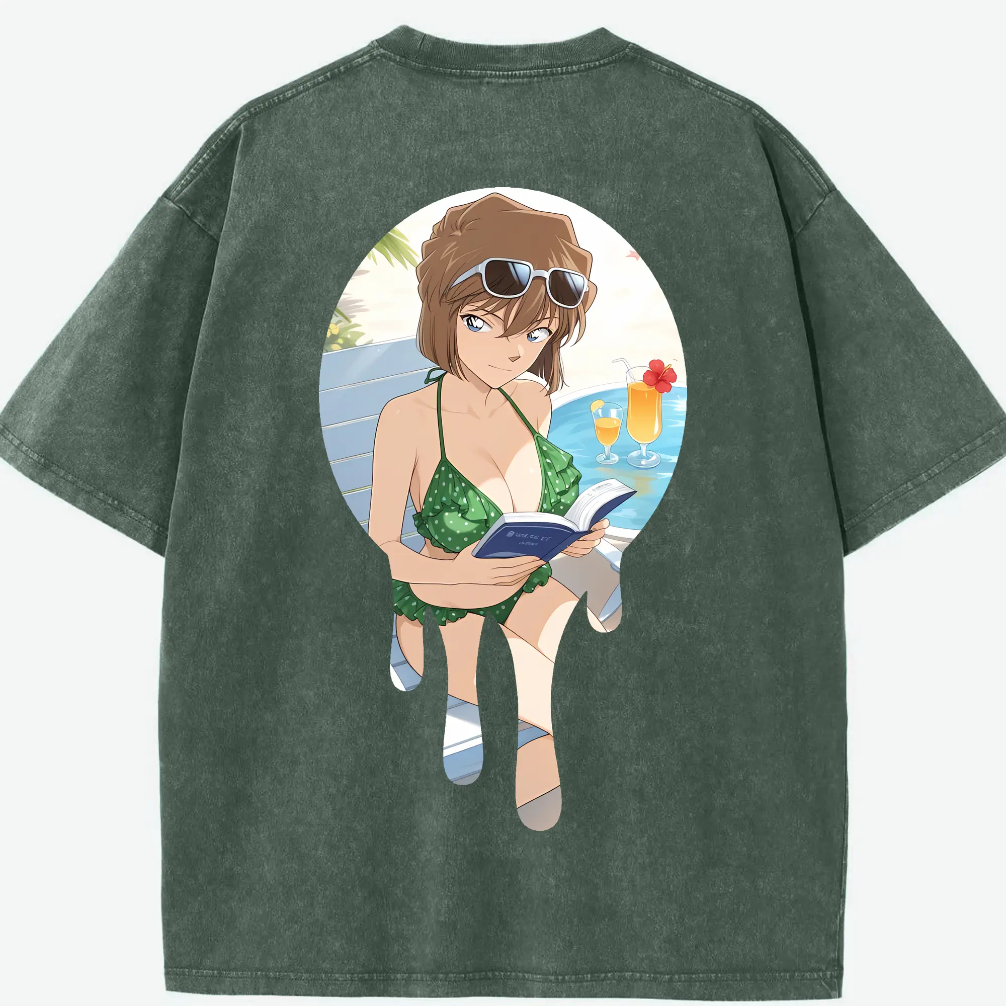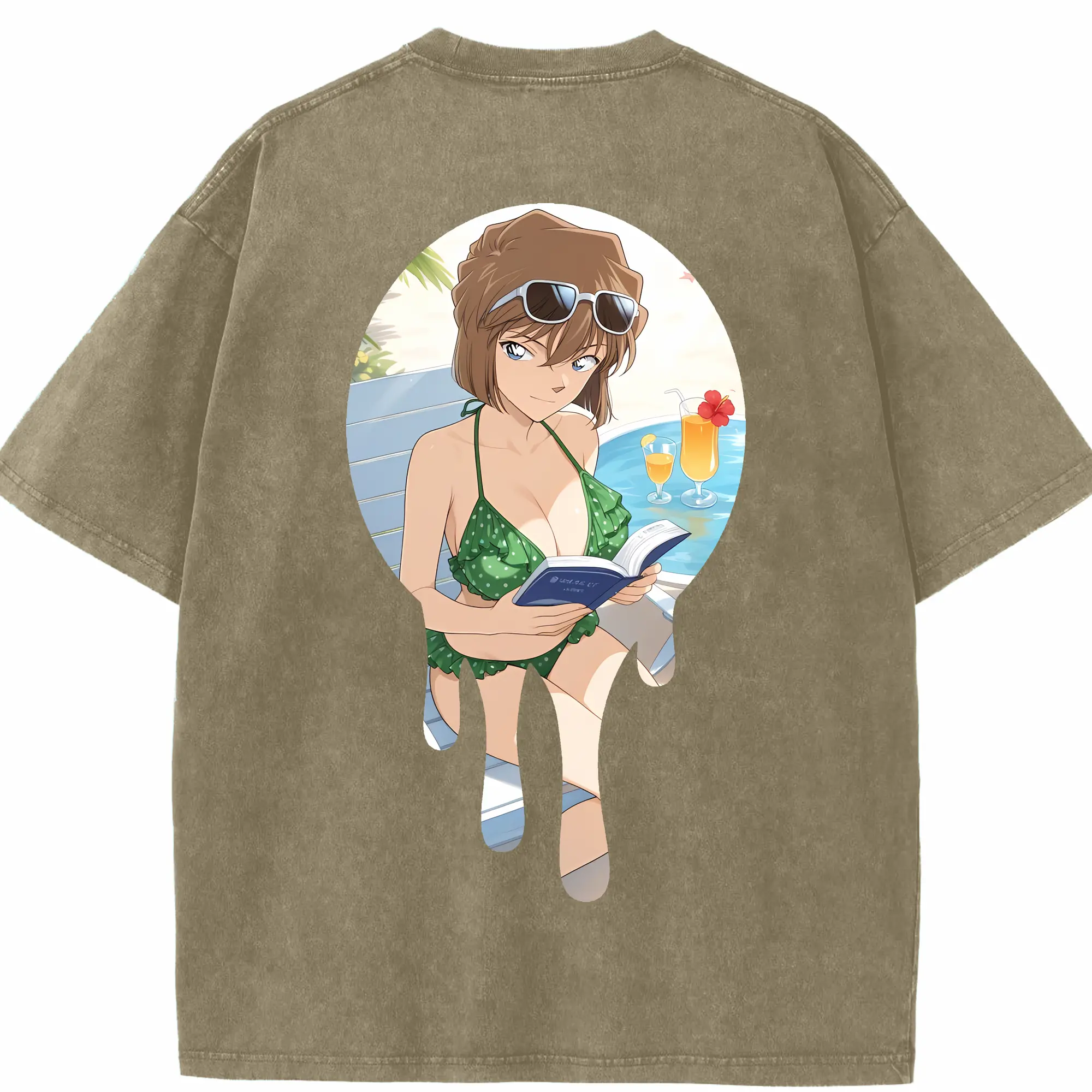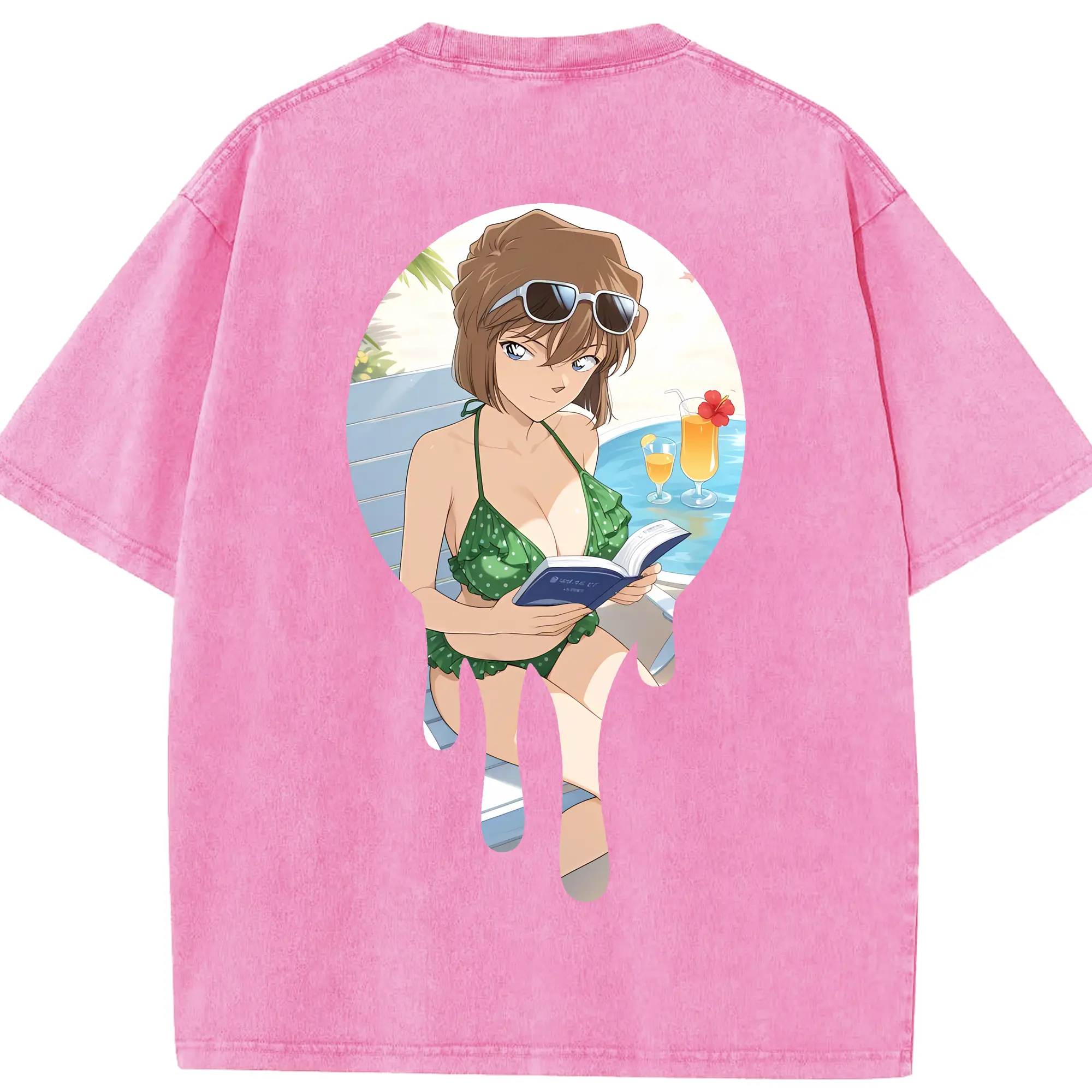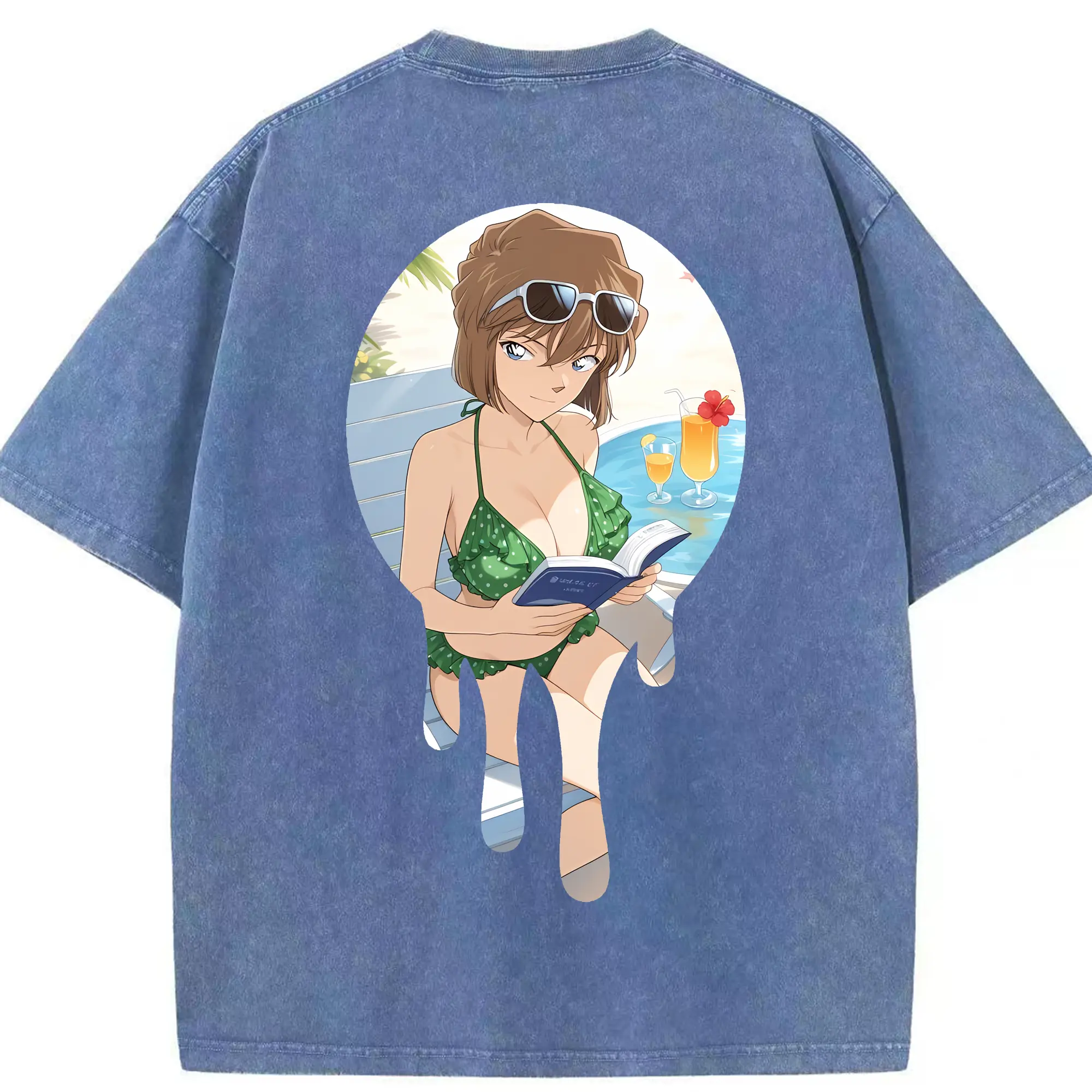 名探偵コナン グッズ 灰原 哀 - 綿100% ヴィンテージ風 半袖Tシャツ ・ フロントプリント ・ 柔らか肌触り ・ 通気性 快適 ・ スポーツ カジュアル 外出用