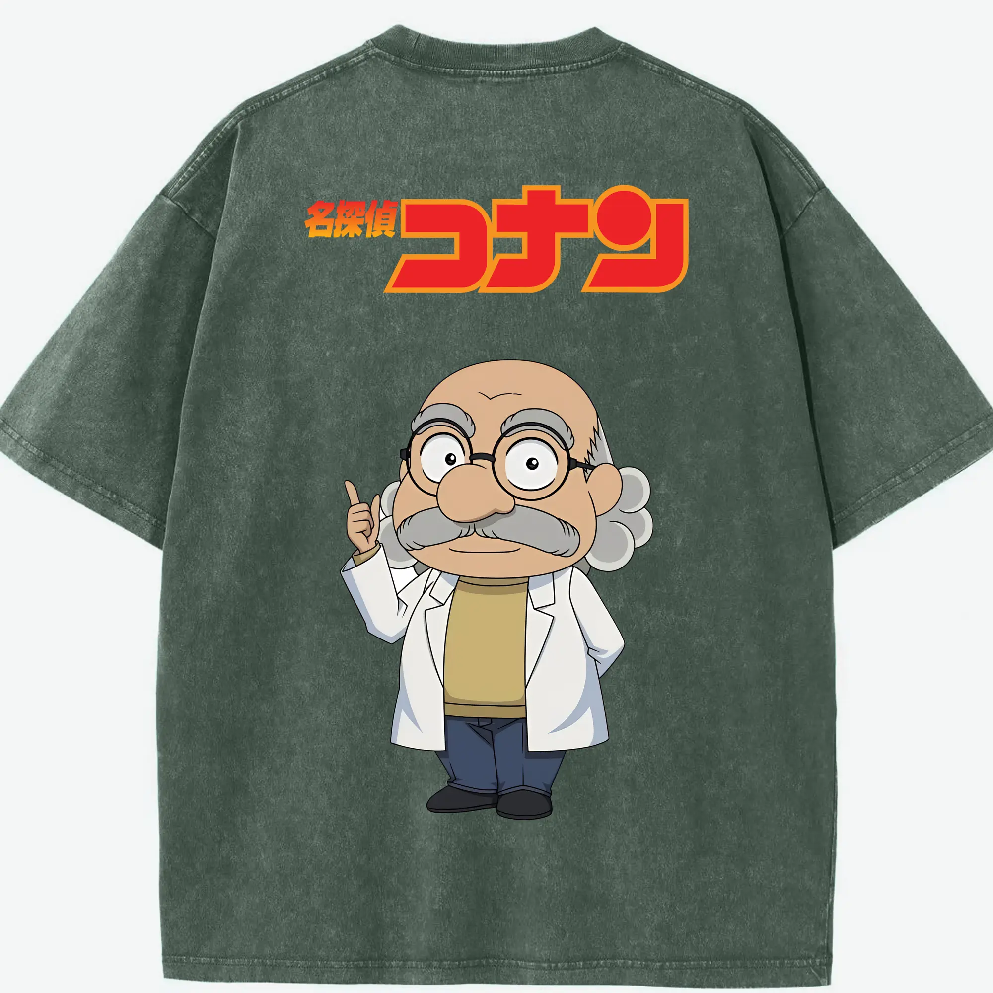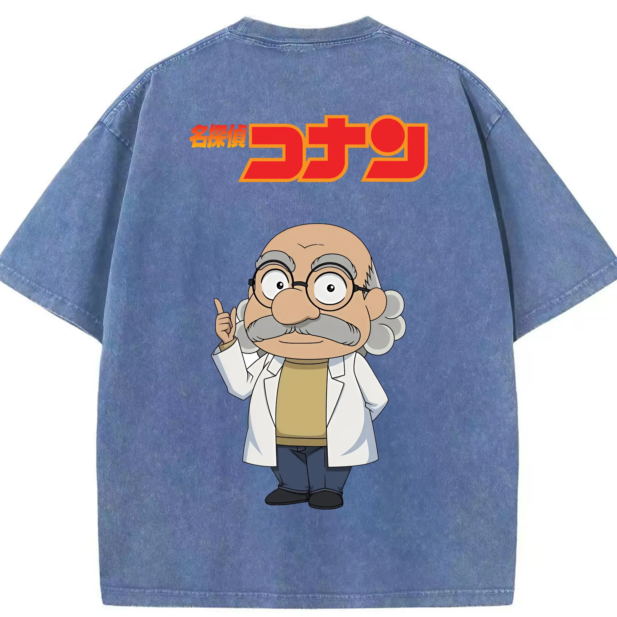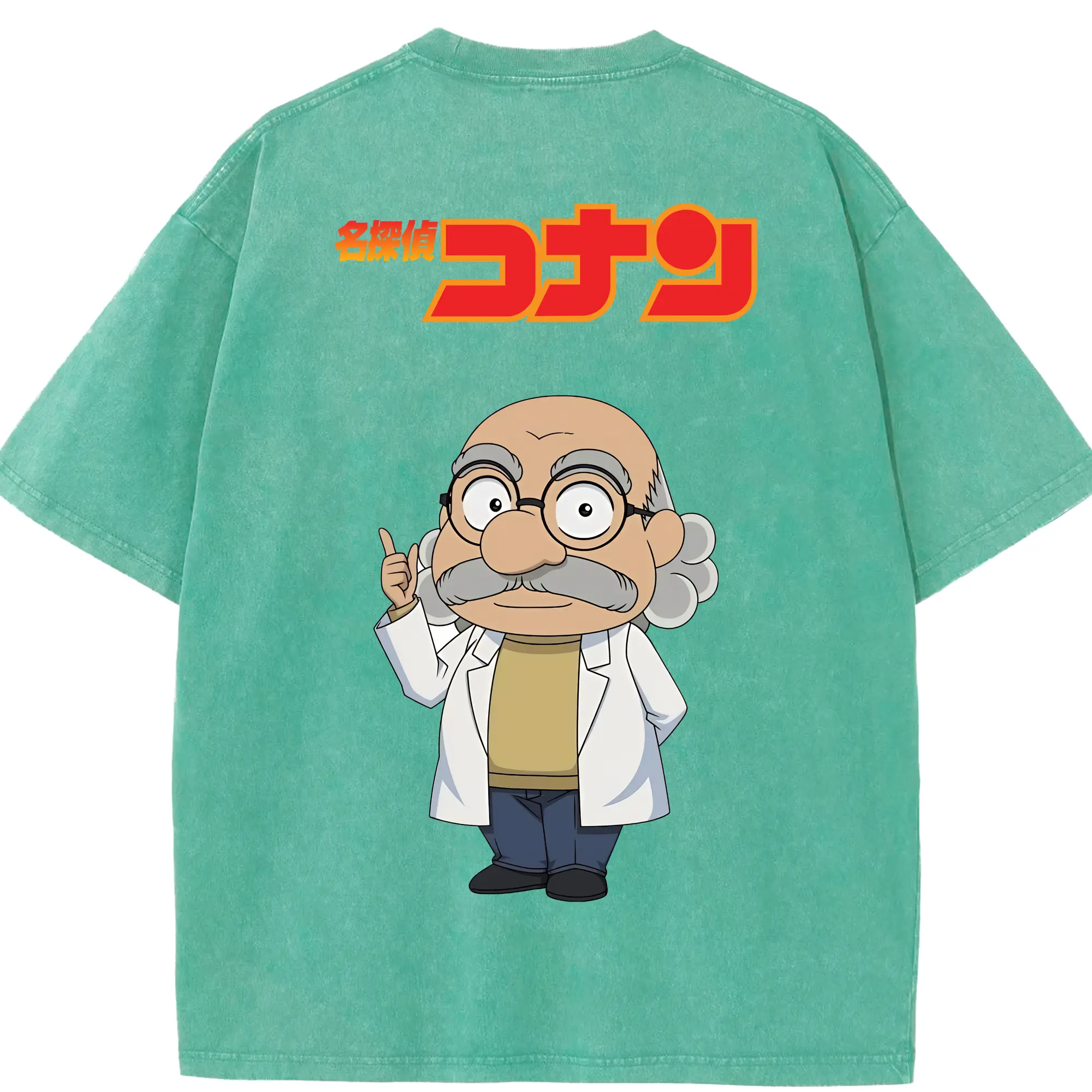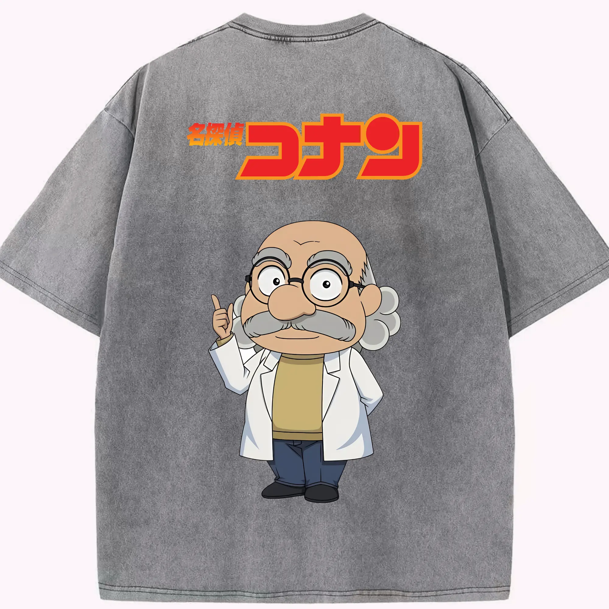 名探偵コナン グッズ 阿笠 博士 - 綿100% ヴィンテージ風 半袖Tシャツ ・ フロントプリント ・ 柔らか肌触り ・ 通気性 快適 ・ スポーツ カジュアル 外出用