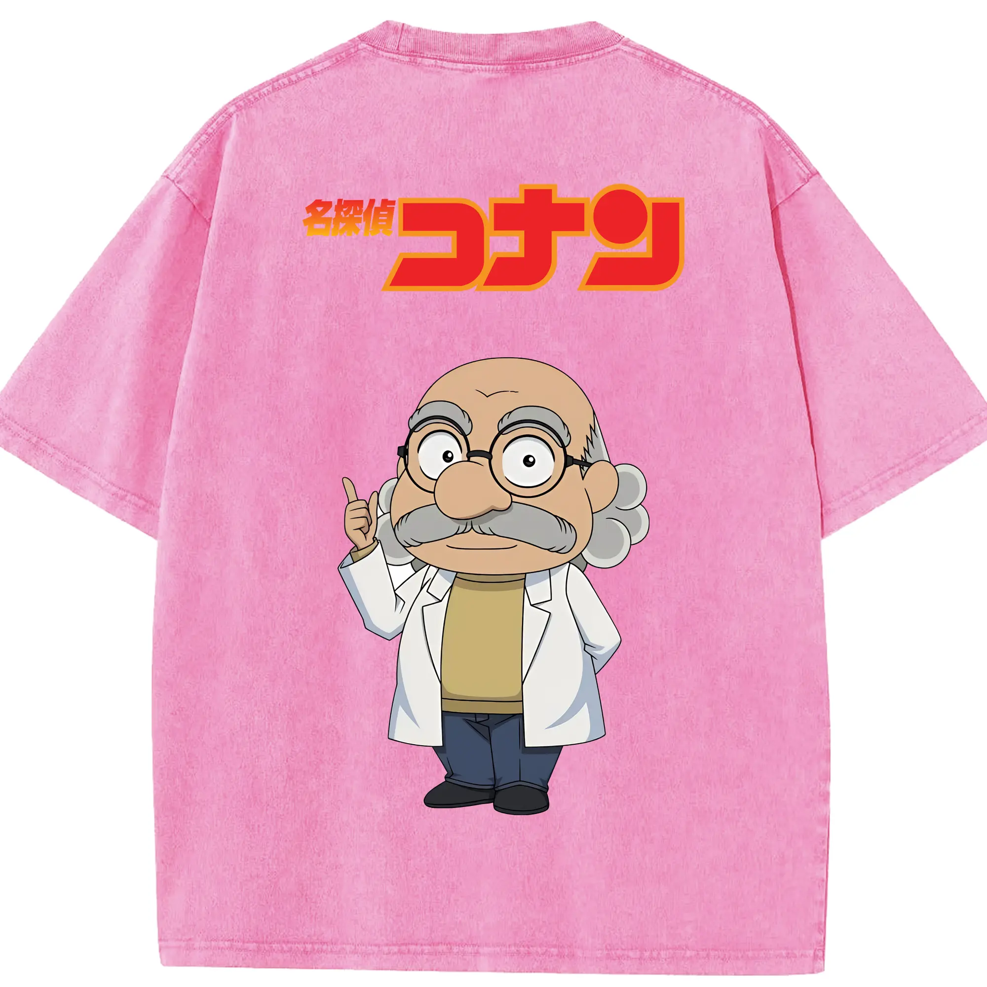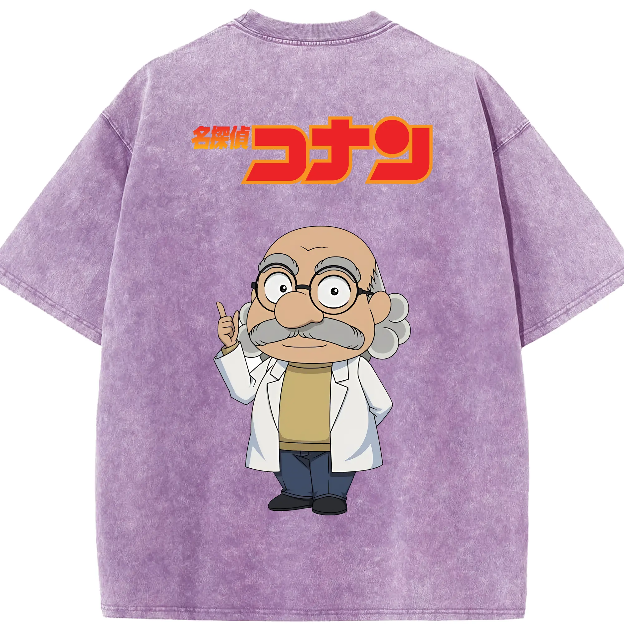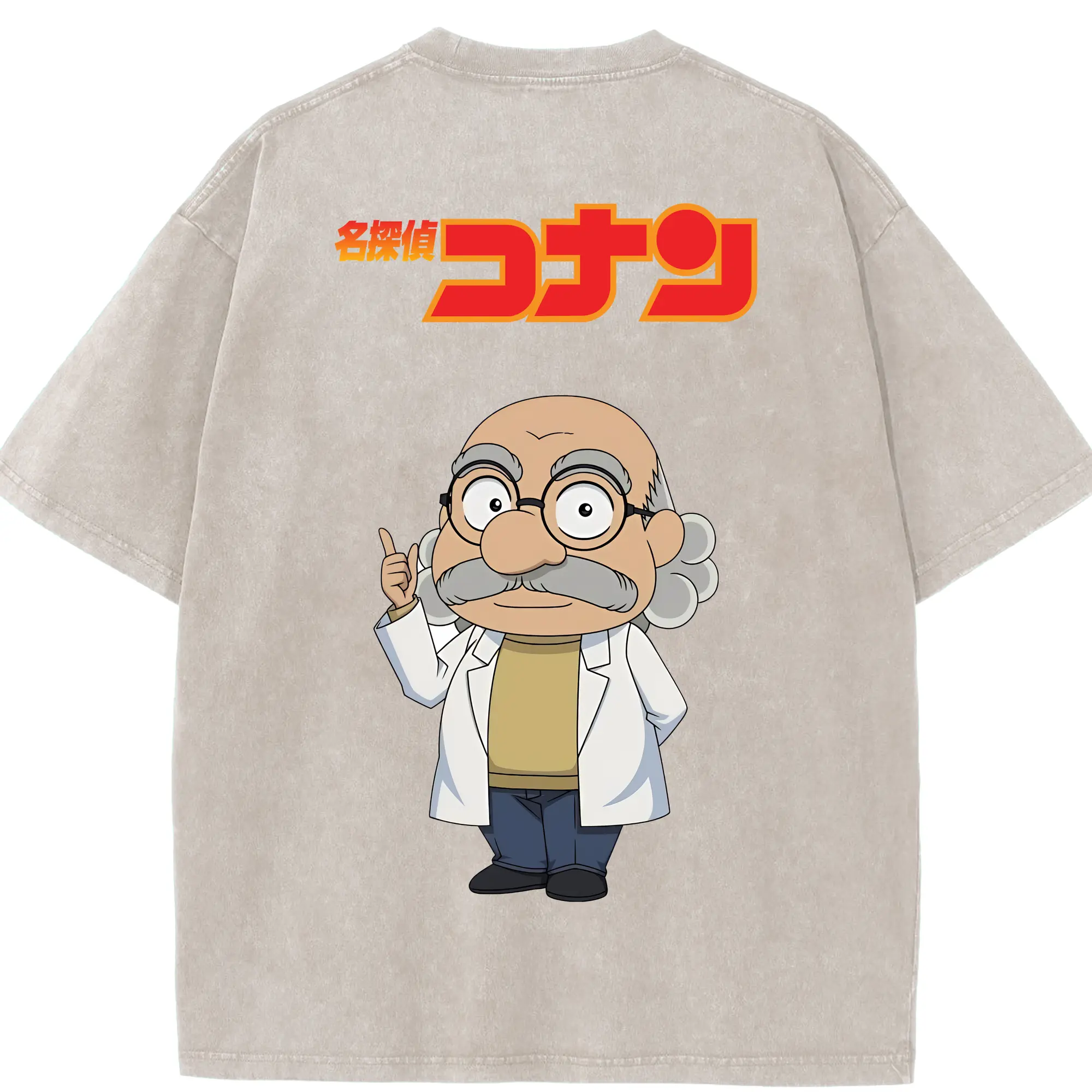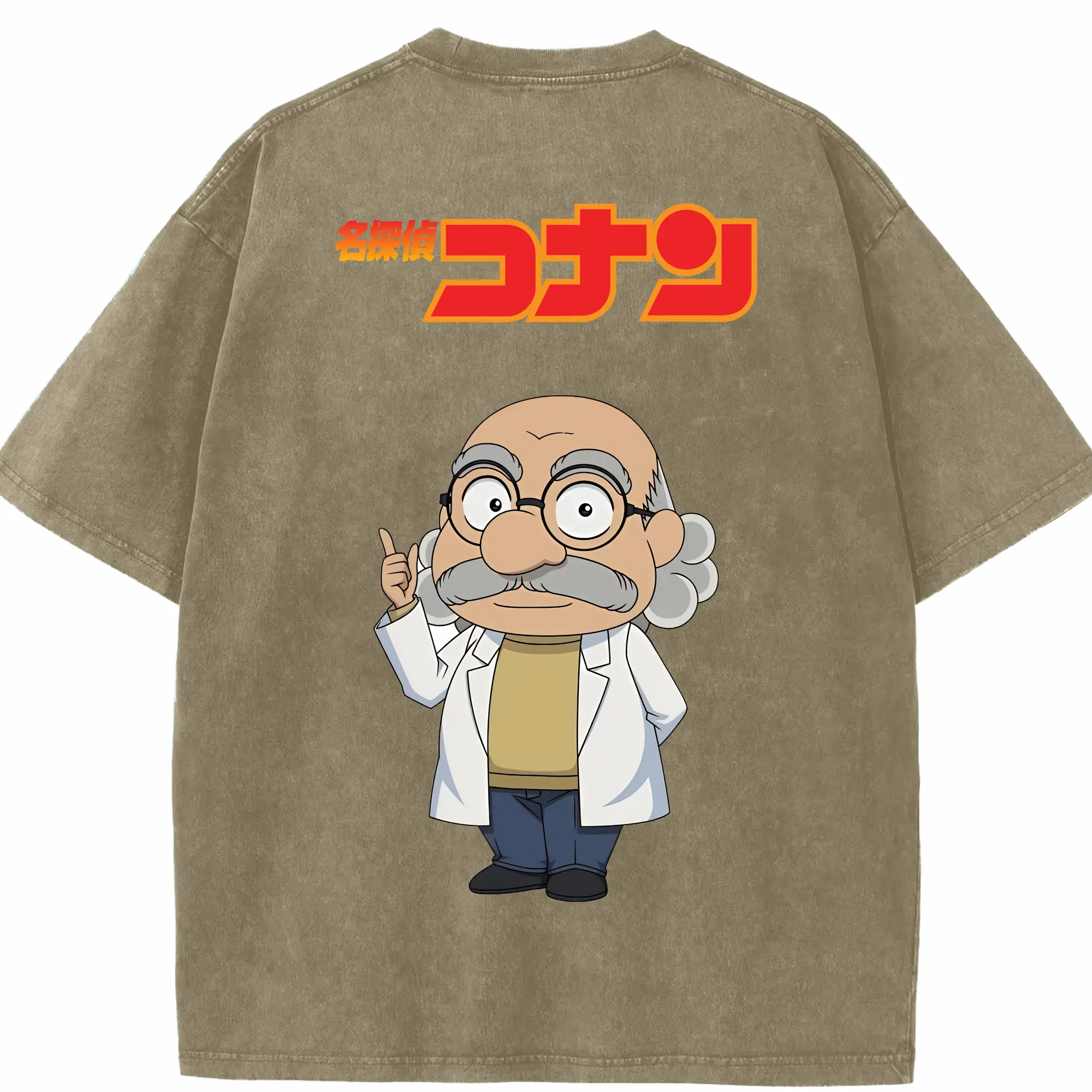 名探偵コナン グッズ 阿笠 博士 - 綿100% ヴィンテージ風 半袖Tシャツ ・ フロントプリント ・ 柔らか肌触り ・ 通気性 快適 ・ スポーツ カジュアル 外出用