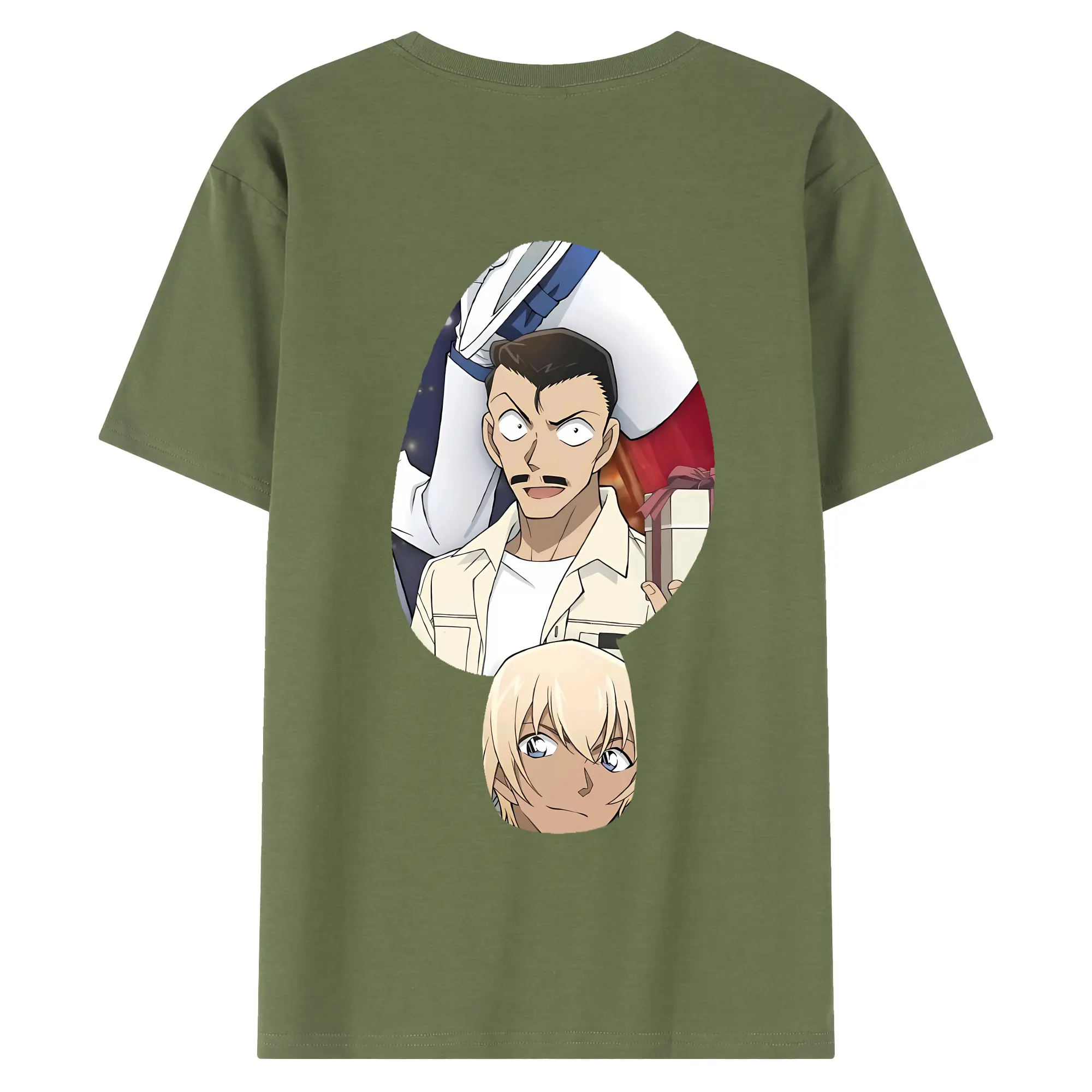 名探偵コナン グッズ 毛利 小五郎 - 綿100% ヴィンテージ風 半袖Tシャツ ・ 背面プリント ・ 柔らか肌触り ・ 通気性 快適 ・ スポーツ カジュアル 外出用