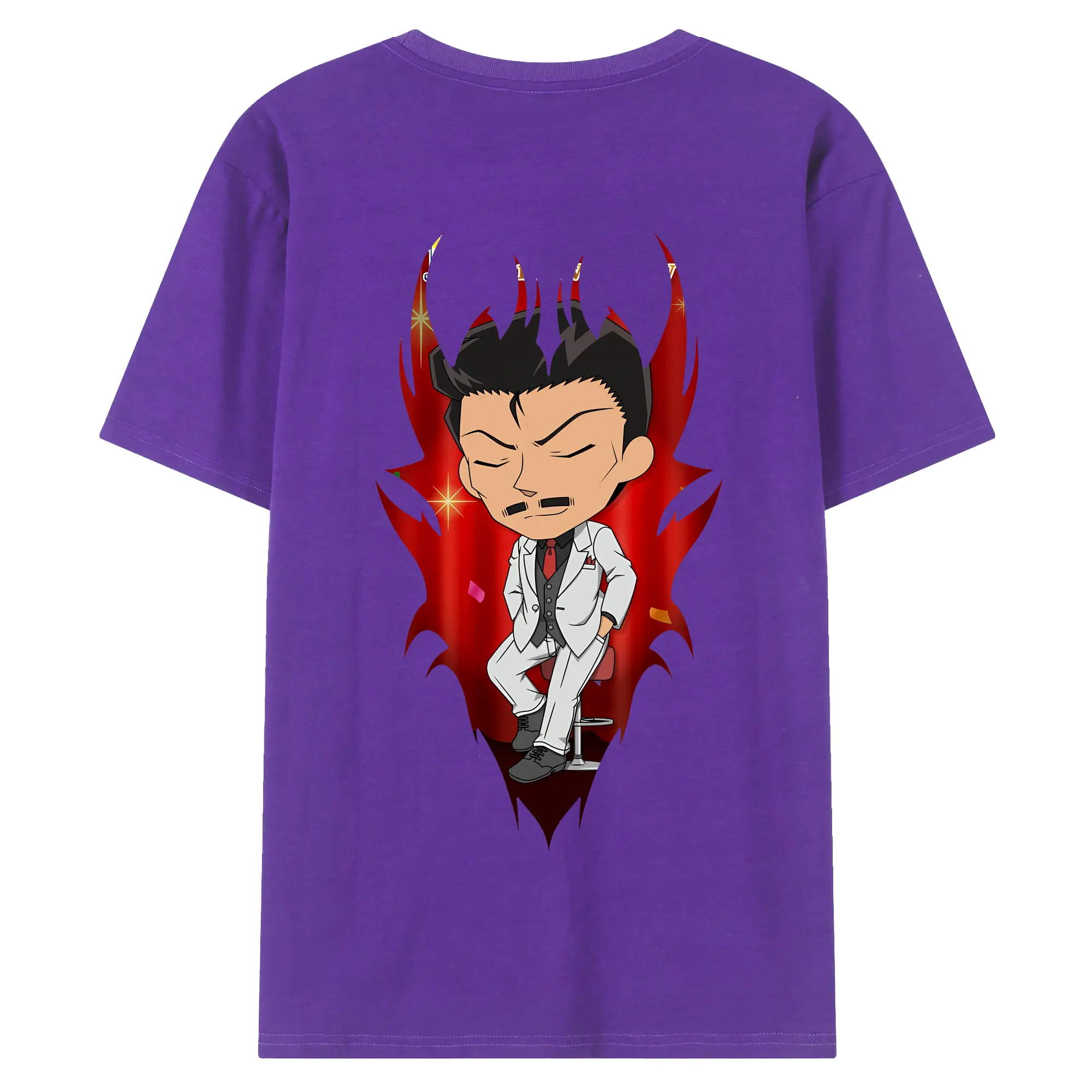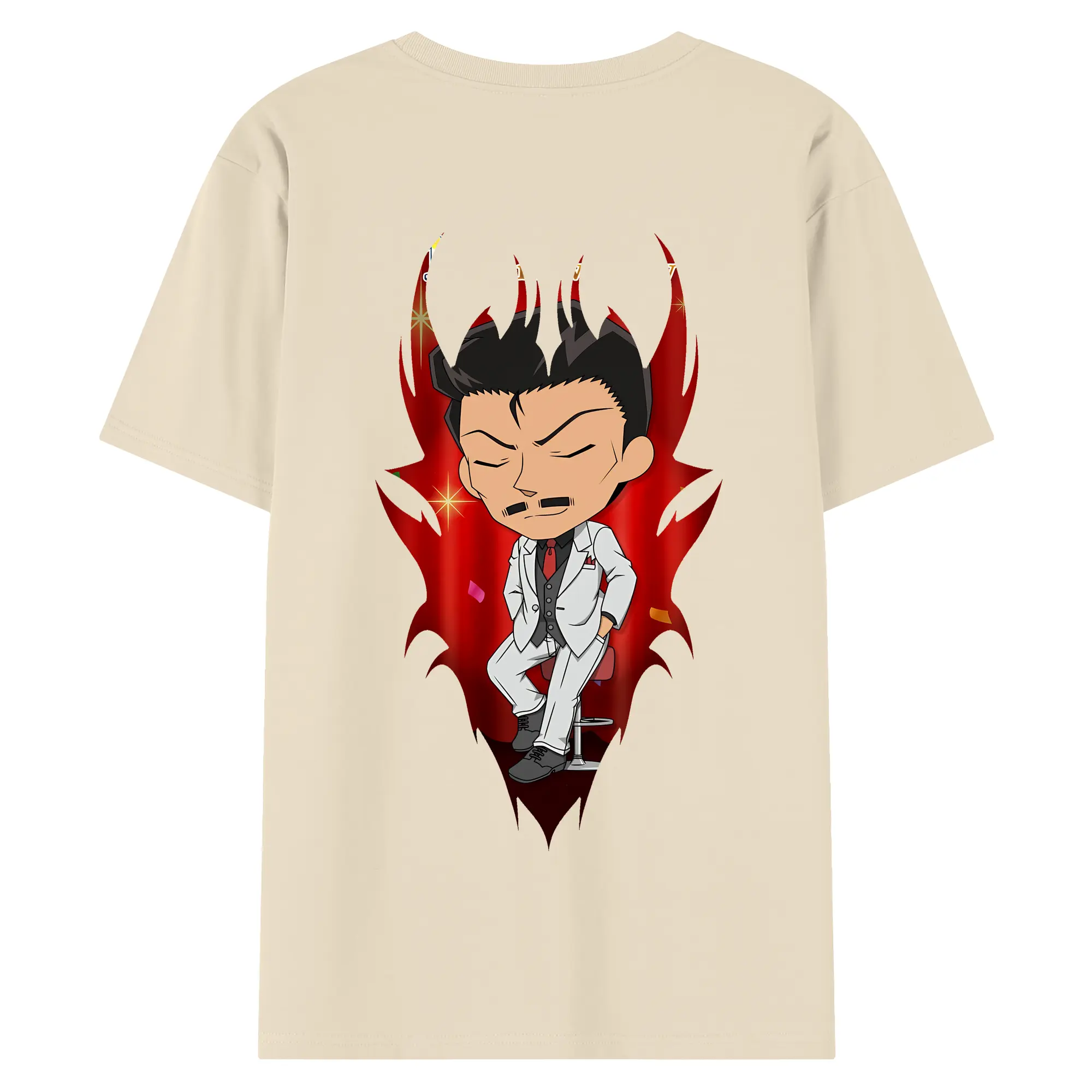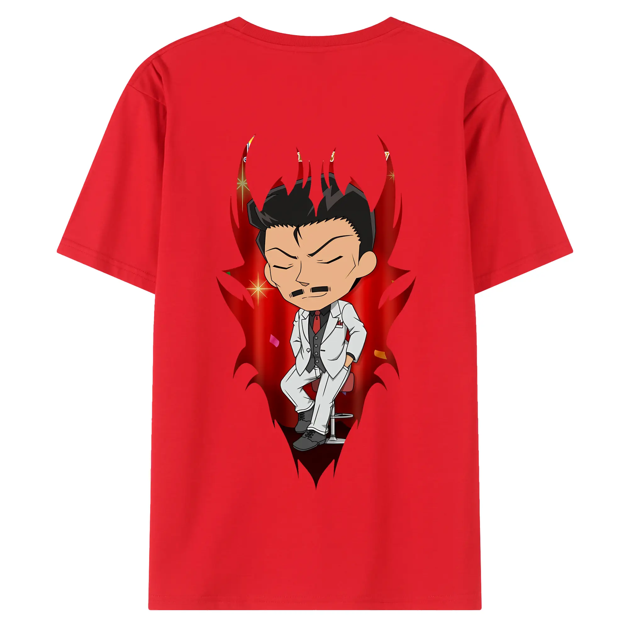 名探偵コナン グッズ 毛利 小五郎 - 綿100% ヴィンテージ風 半袖Tシャツ ・ 背面プリント ・ 柔らか肌触り ・ 通気性 快適 ・ スポーツ カジュアル 外出用