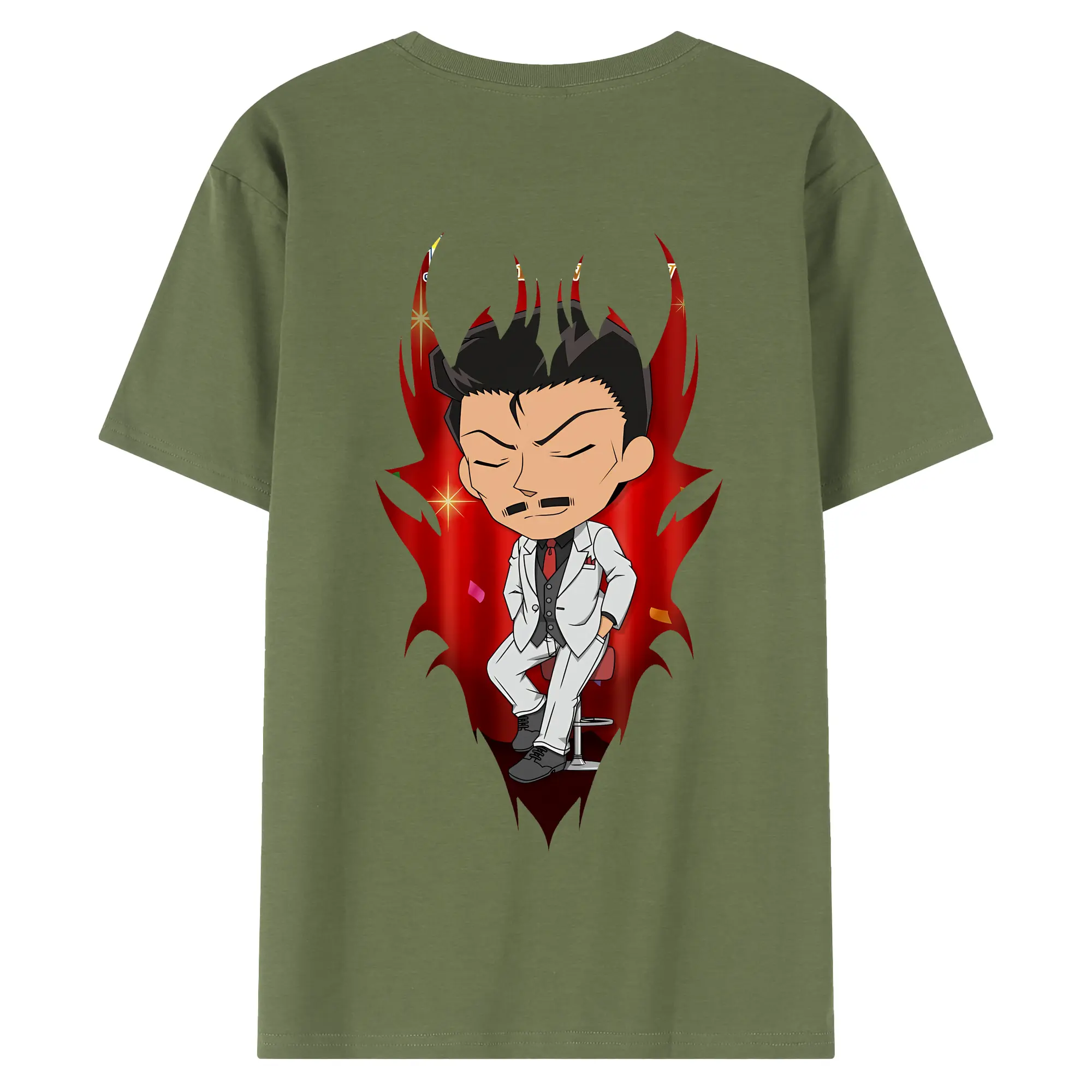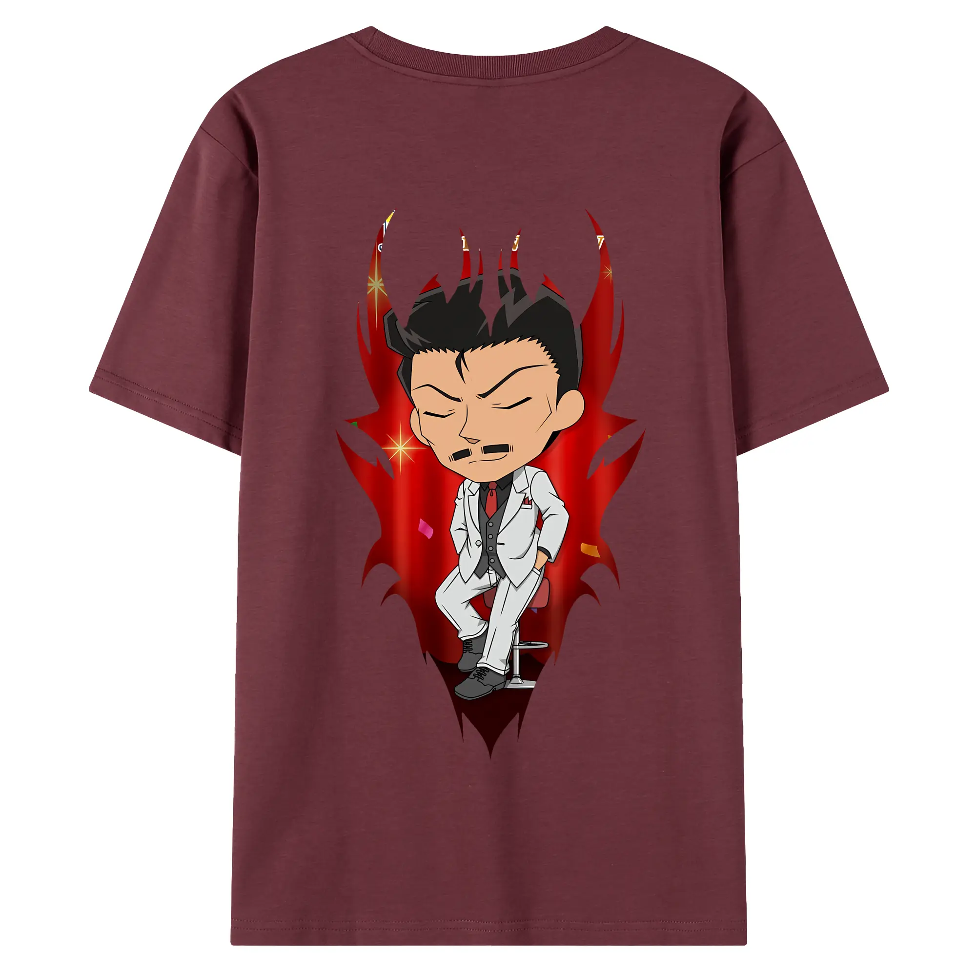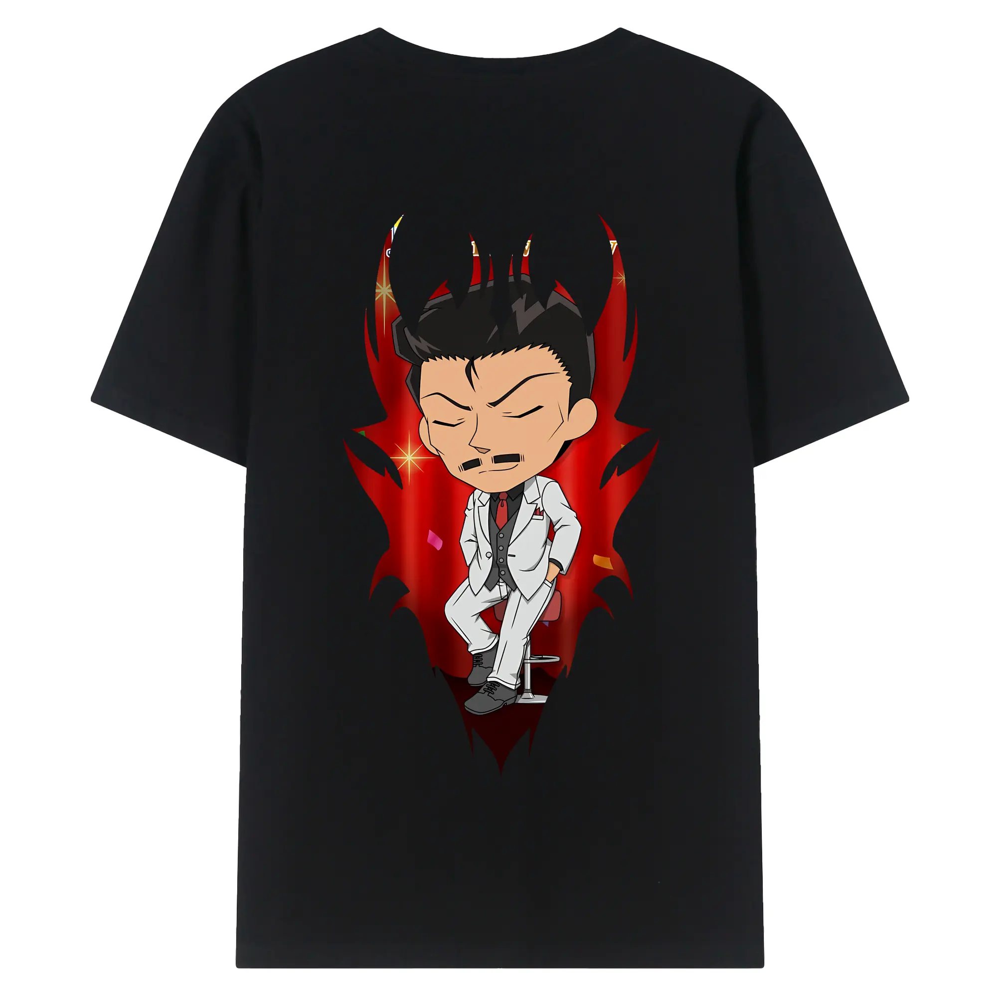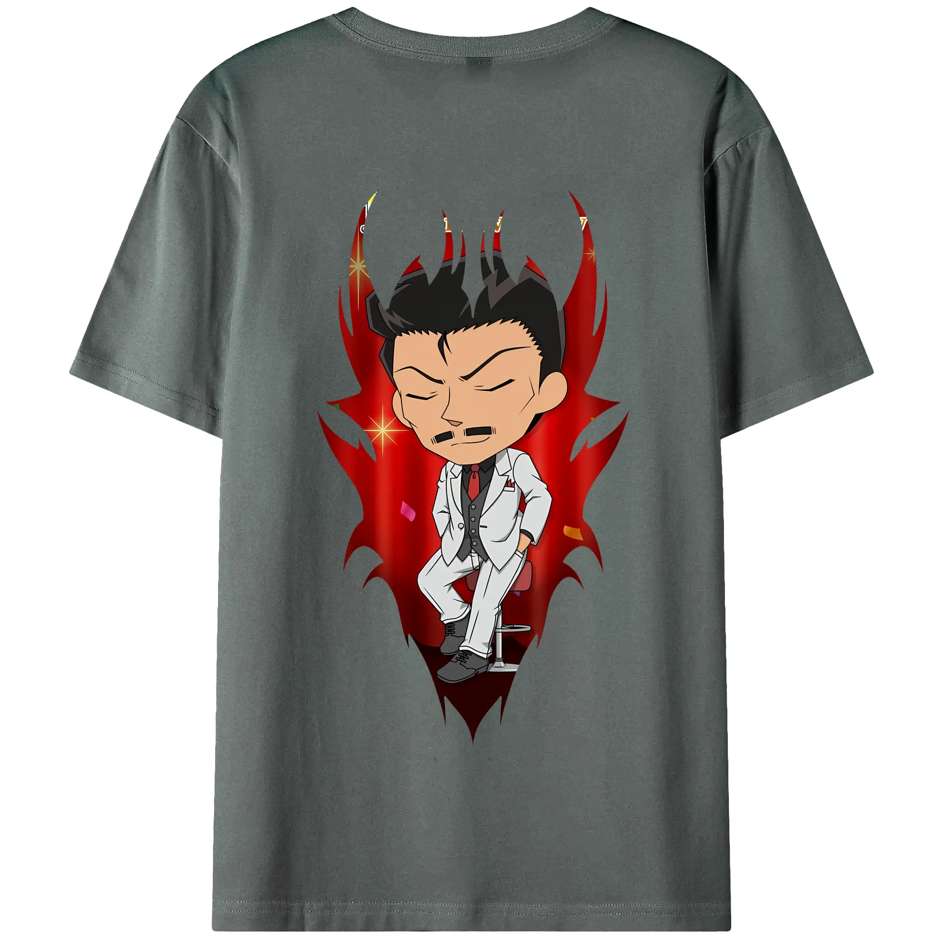名探偵コナン グッズ 毛利 小五郎 - 綿100% ヴィンテージ風 半袖Tシャツ ・ 背面プリント ・ 柔らか肌触り ・ 通気性 快適 ・ スポーツ カジュアル 外出用