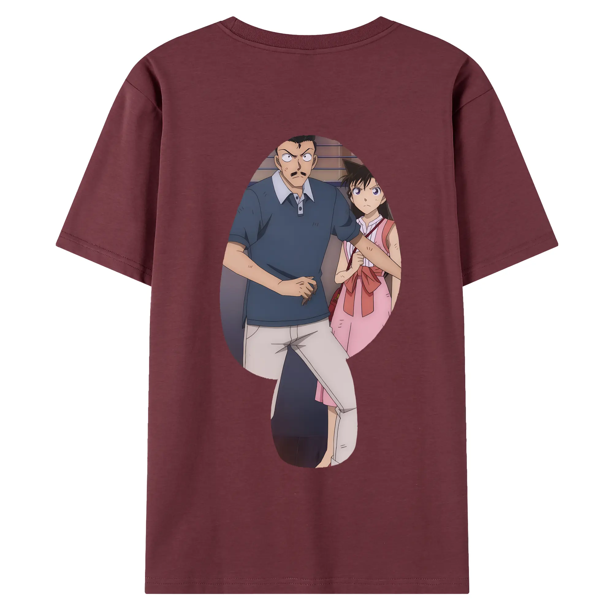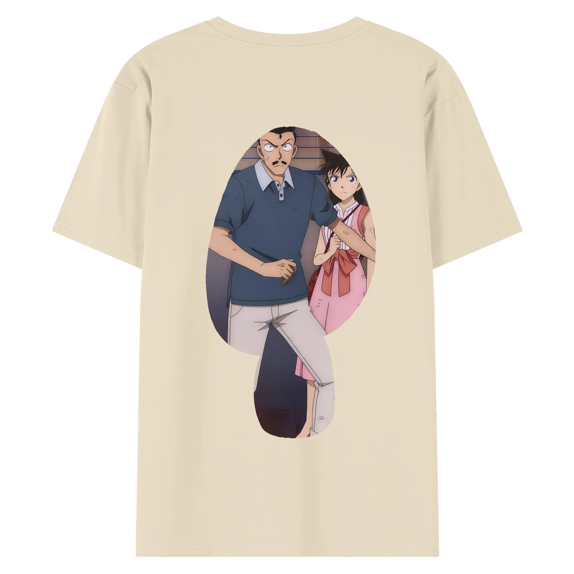 名探偵コナン グッズ 毛利 小五郎 - 綿100% ヴィンテージ風 半袖Tシャツ ・ 背面プリント ・ 柔らか肌触り ・ 通気性 快適 ・ スポーツ カジュアル 外出用
